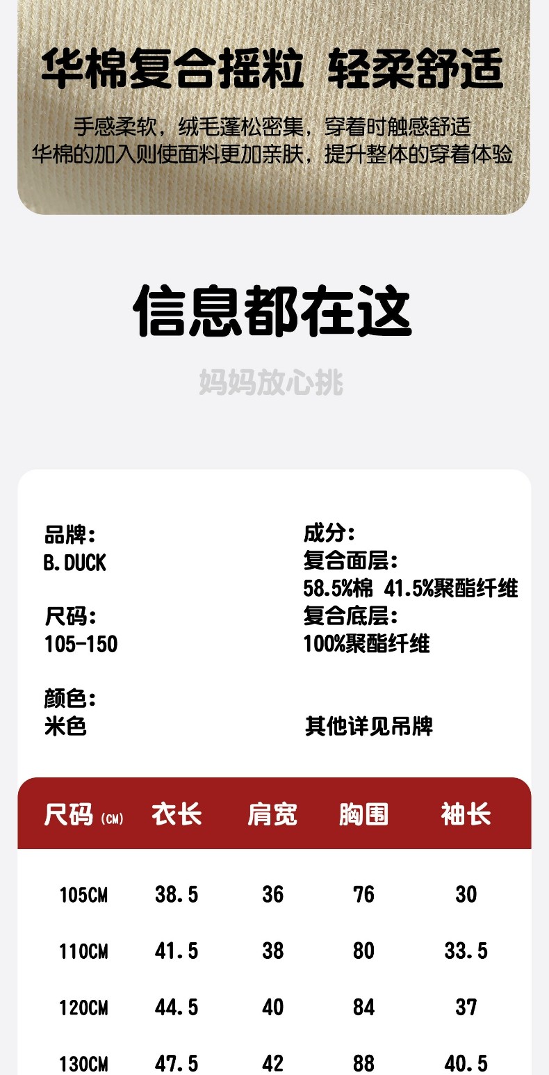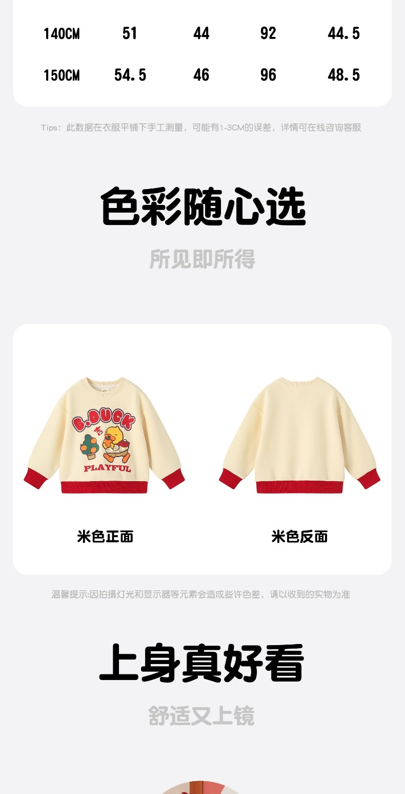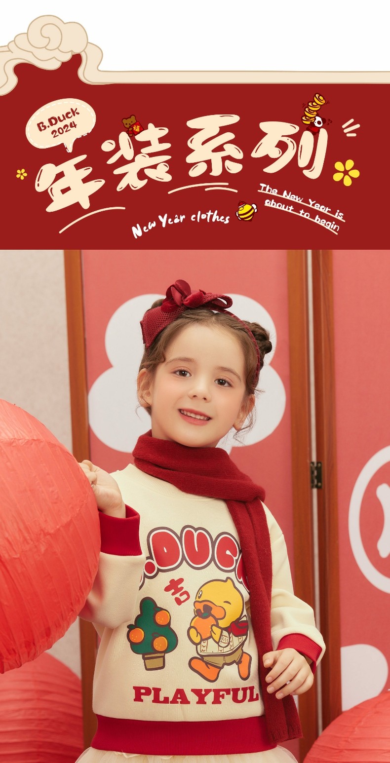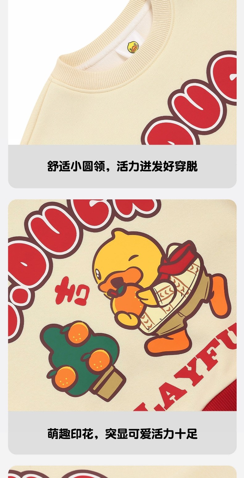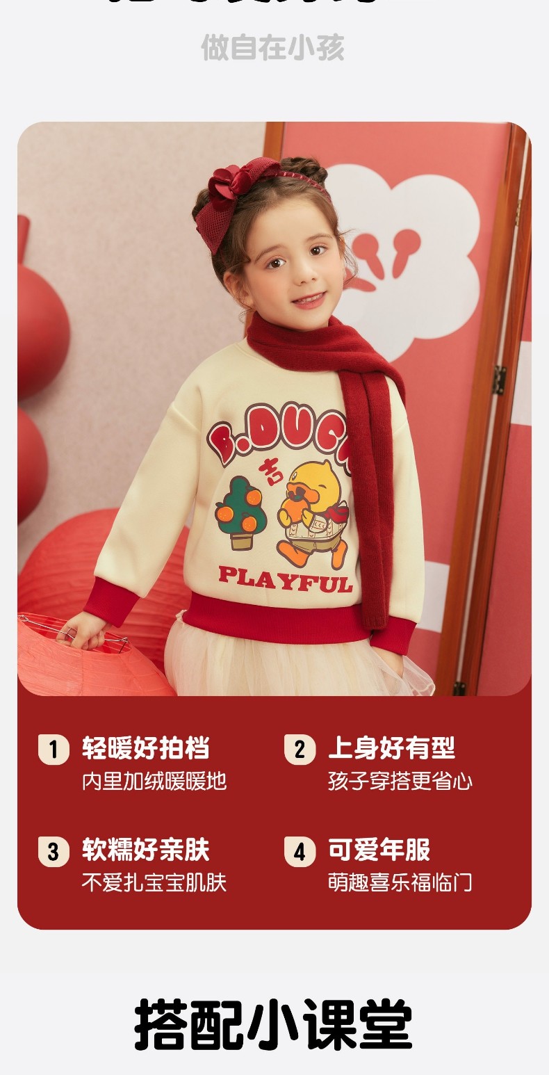 bduck小黄鸭童装冬季女童红色加绒卫衣套头衫新年冬装拜年服保暖上衣105-150 BF5531060