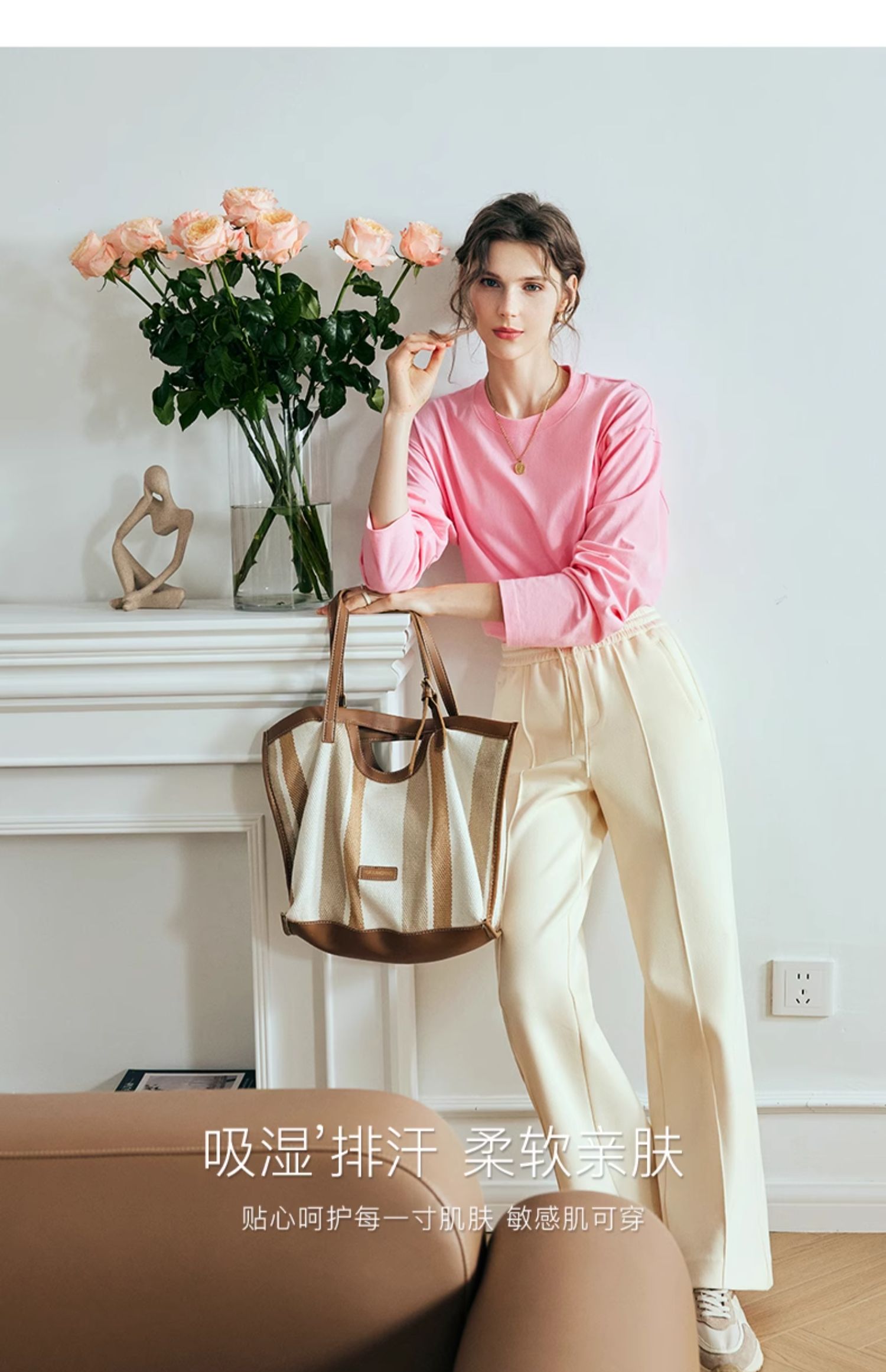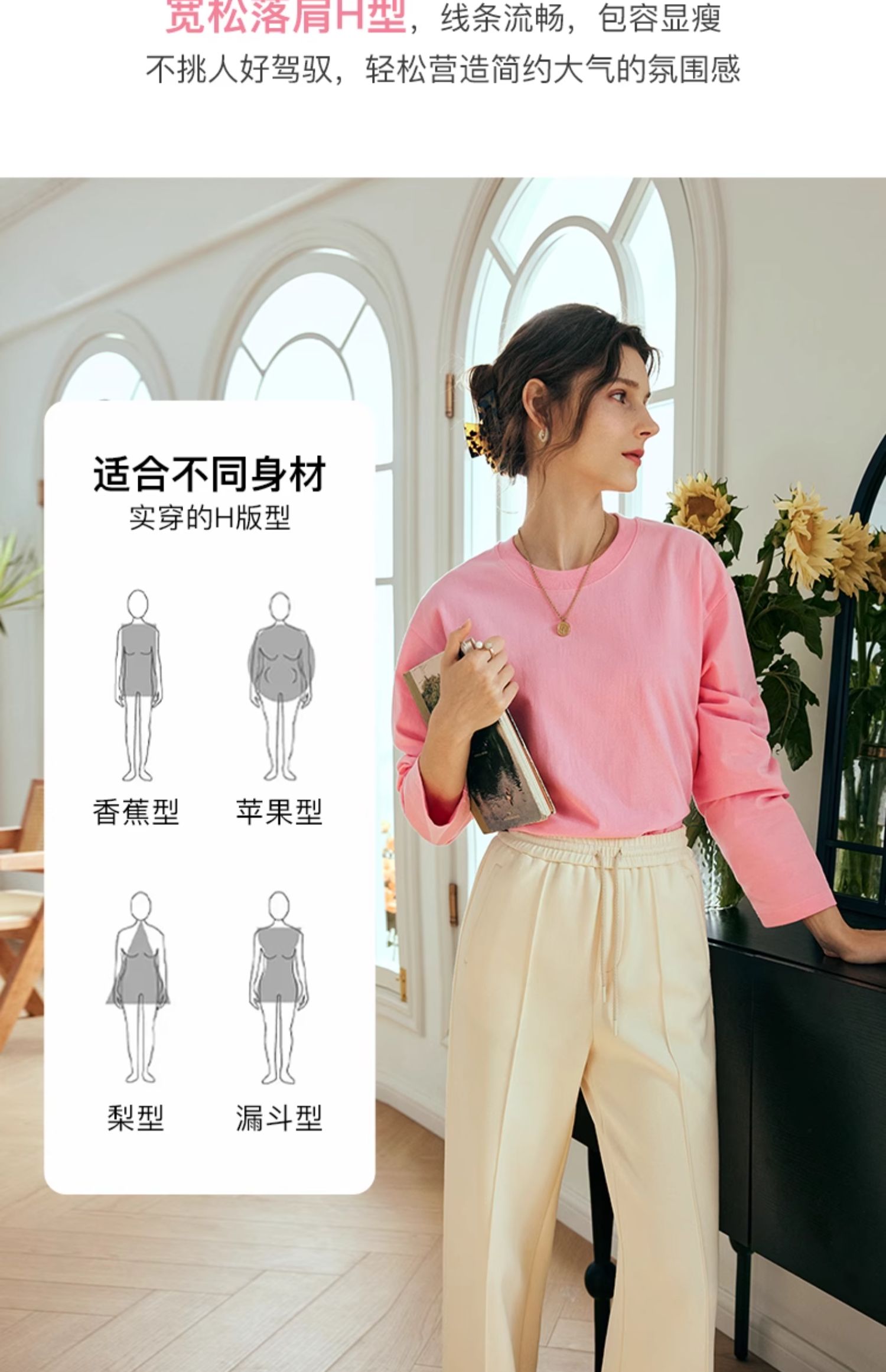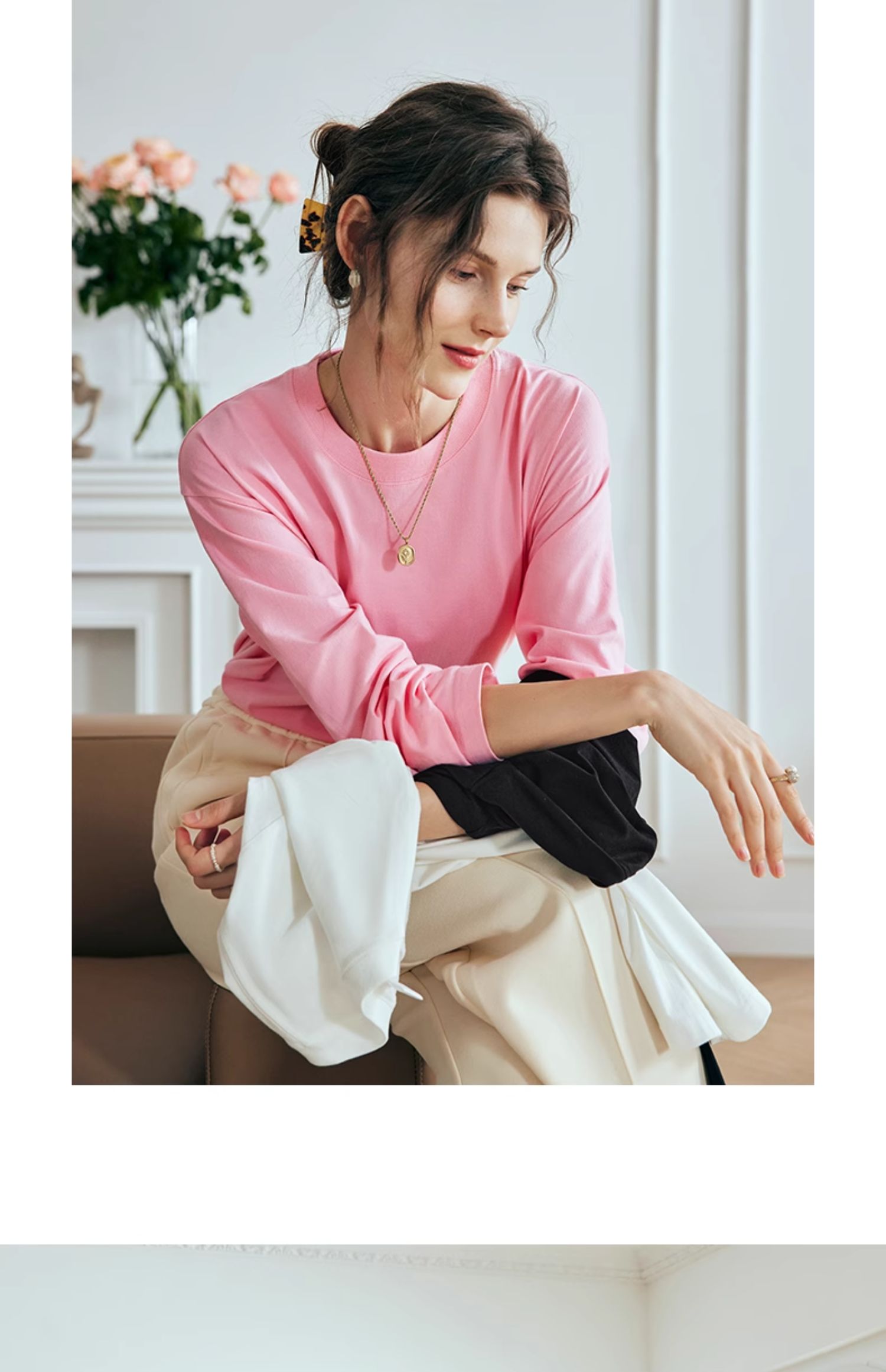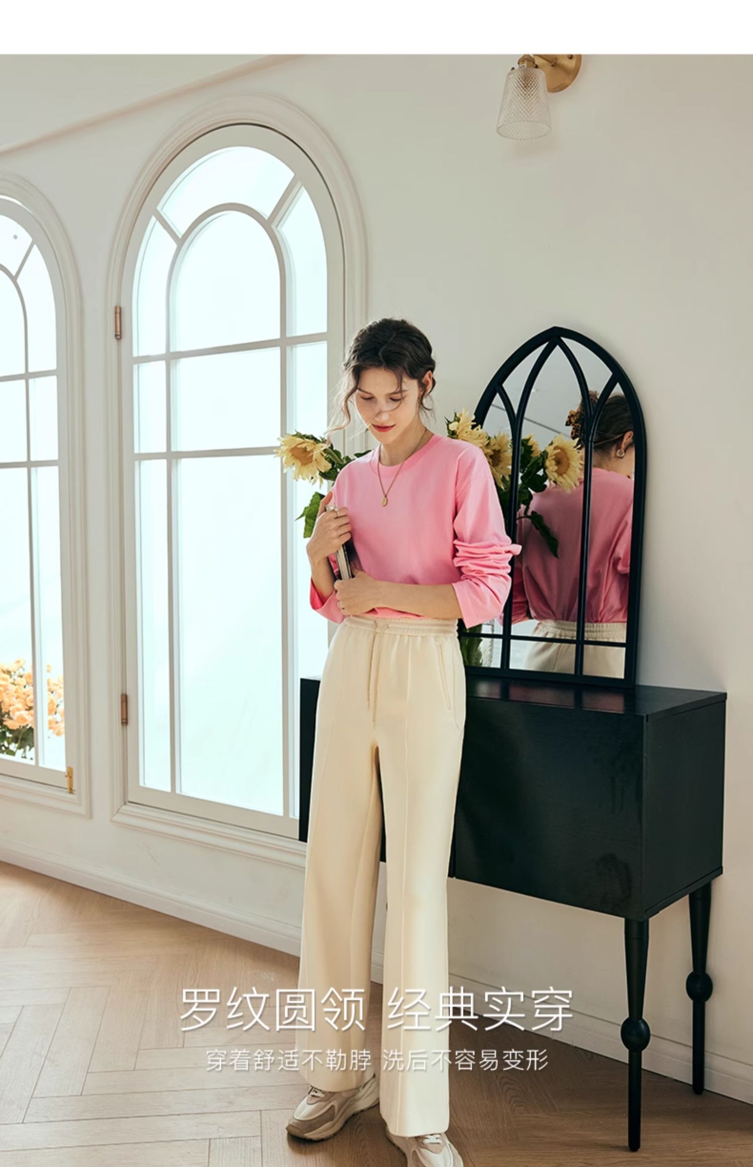 OLrain欧芮儿法式粉色长袖t恤女秋季2024年新款宽松休闲圆领上衣