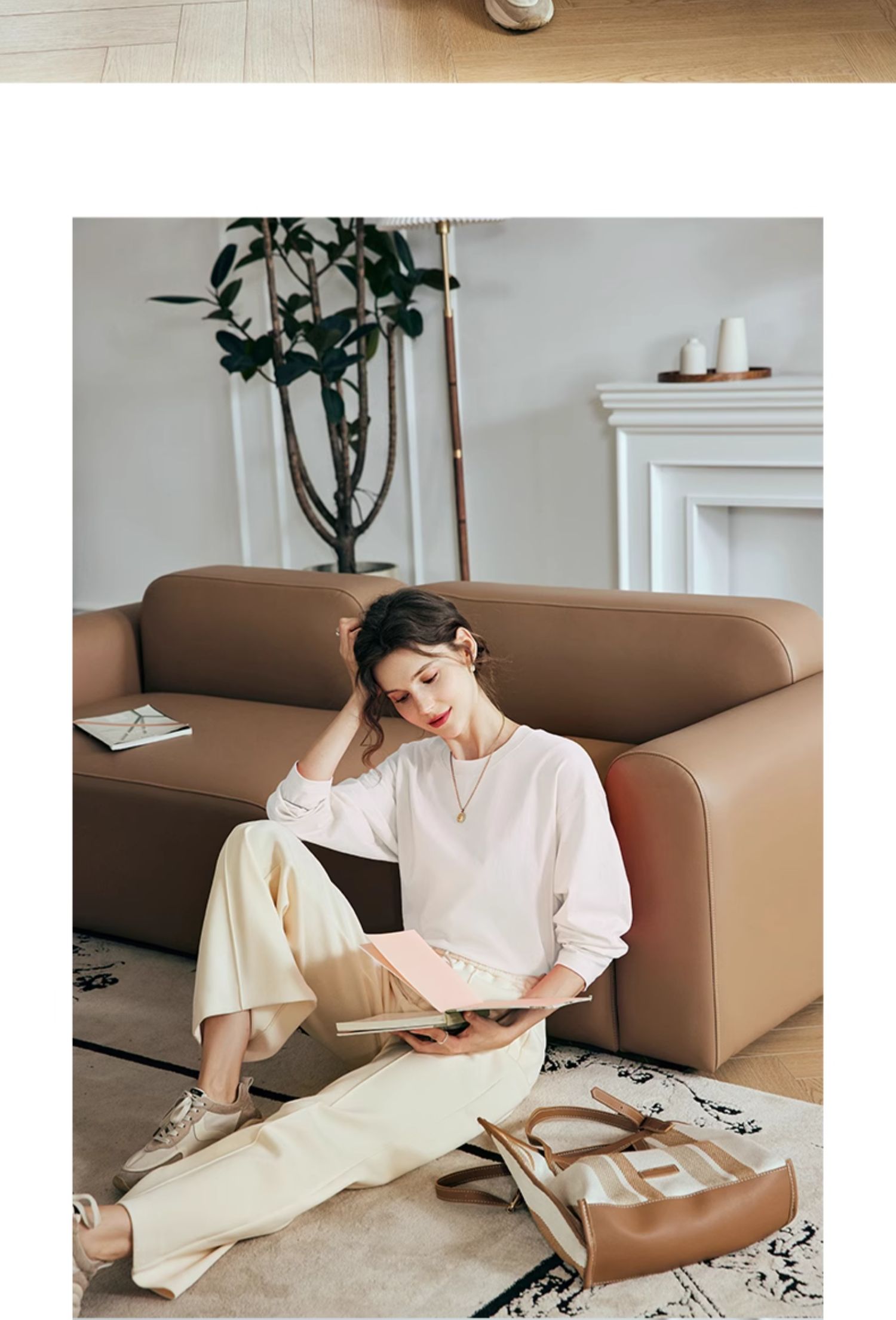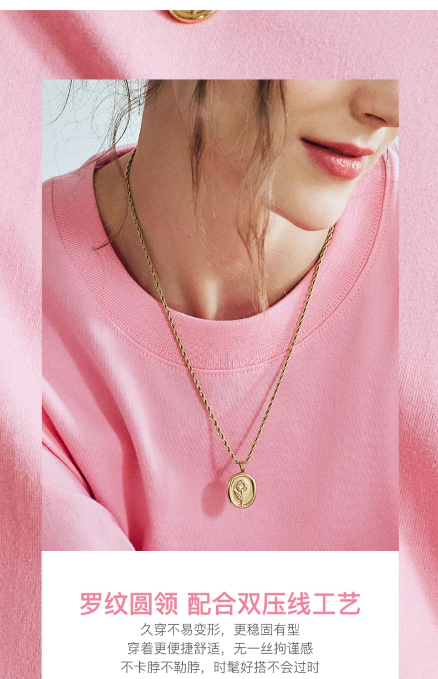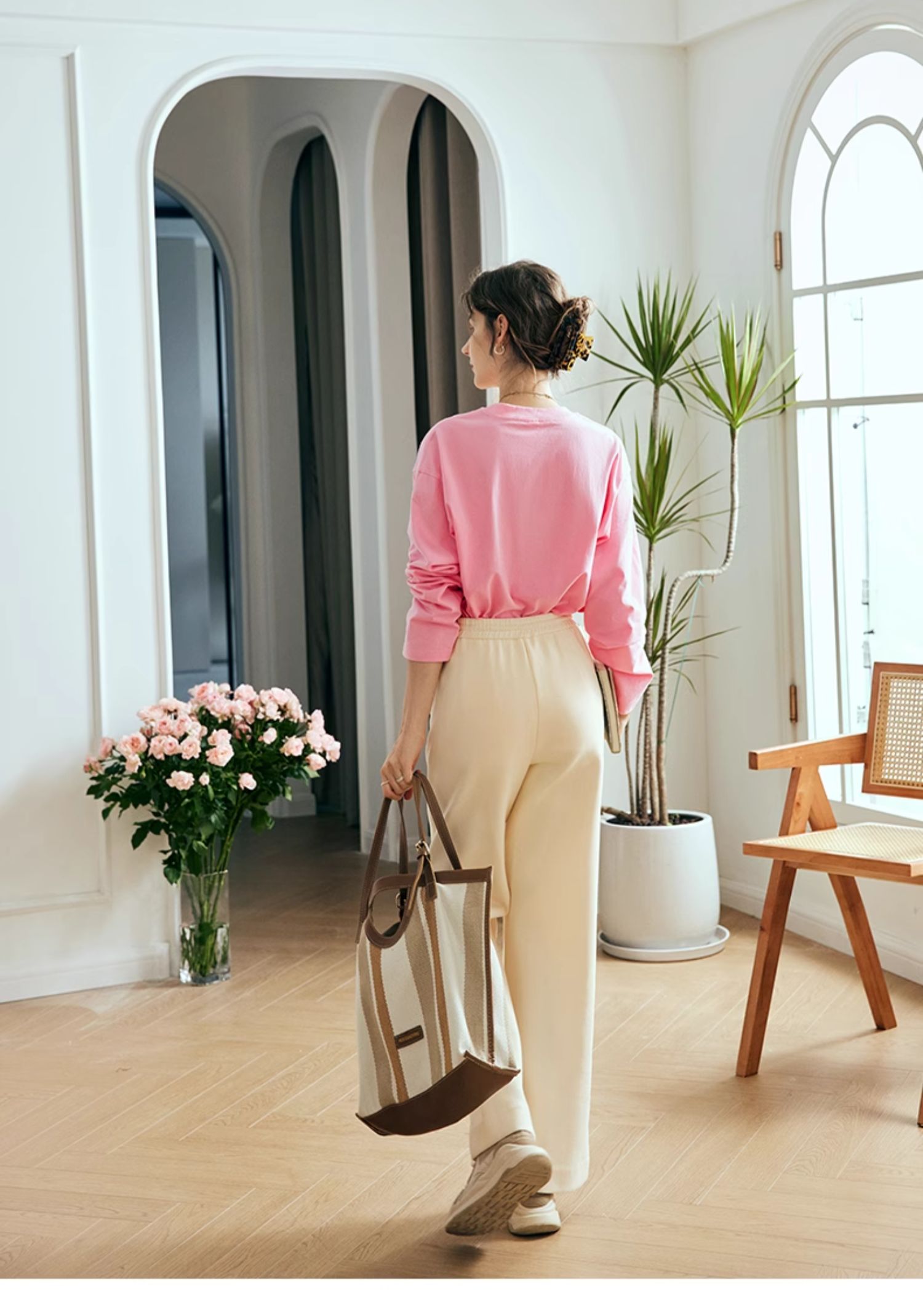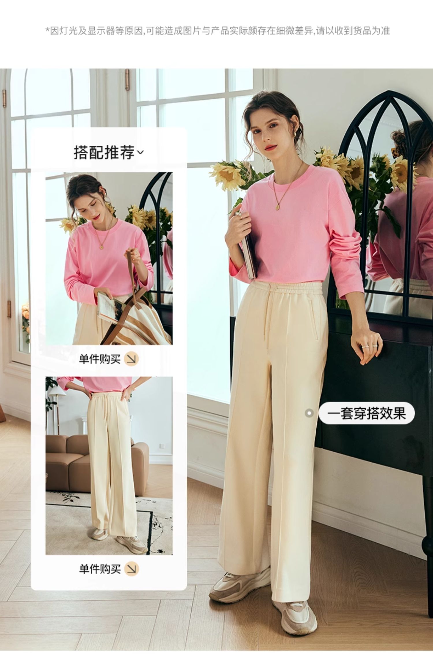 OLrain欧芮儿法式粉色长袖t恤女秋季2024年新款宽松休闲圆领上衣