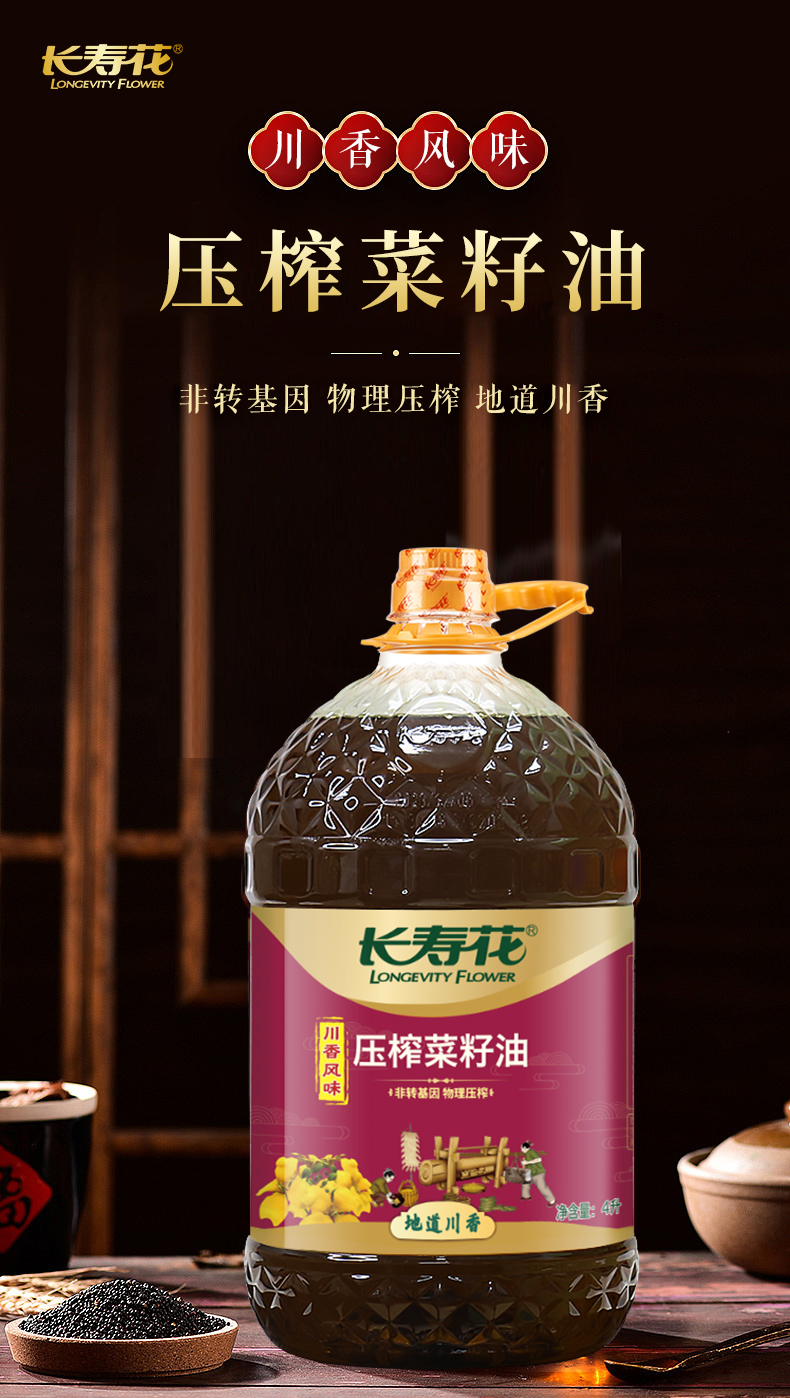 【高圆圆推荐】长寿花菜籽油大容量非转基因物理压榨食用油植物油 川香4L*2桶