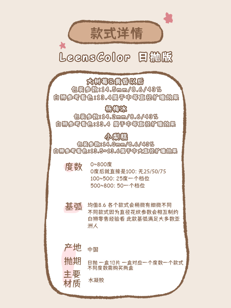 Leenscolor日抛 ·小梨糕 14.0mm白狮参考着色中大直径|日抛10片装