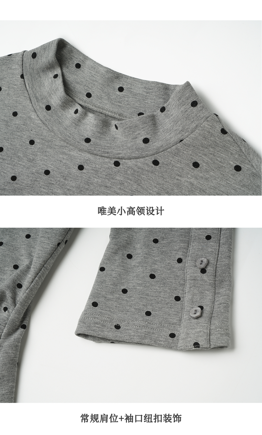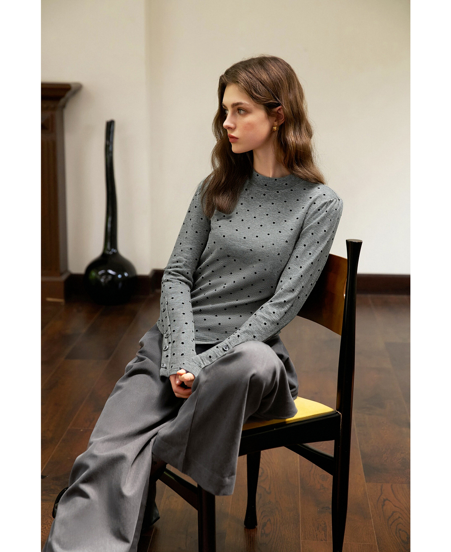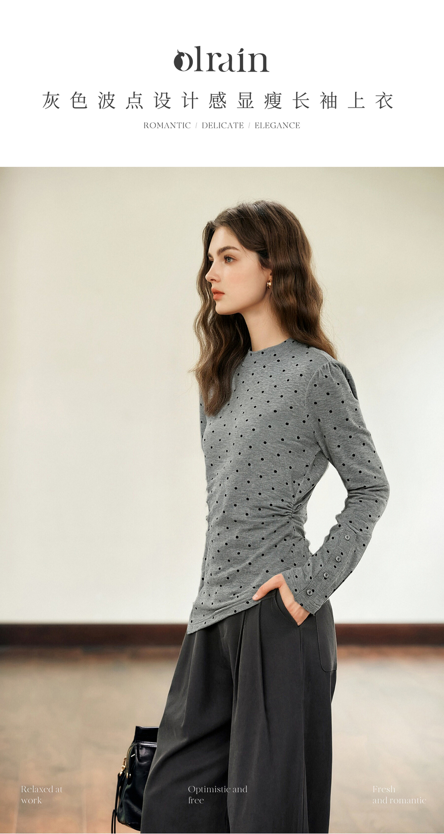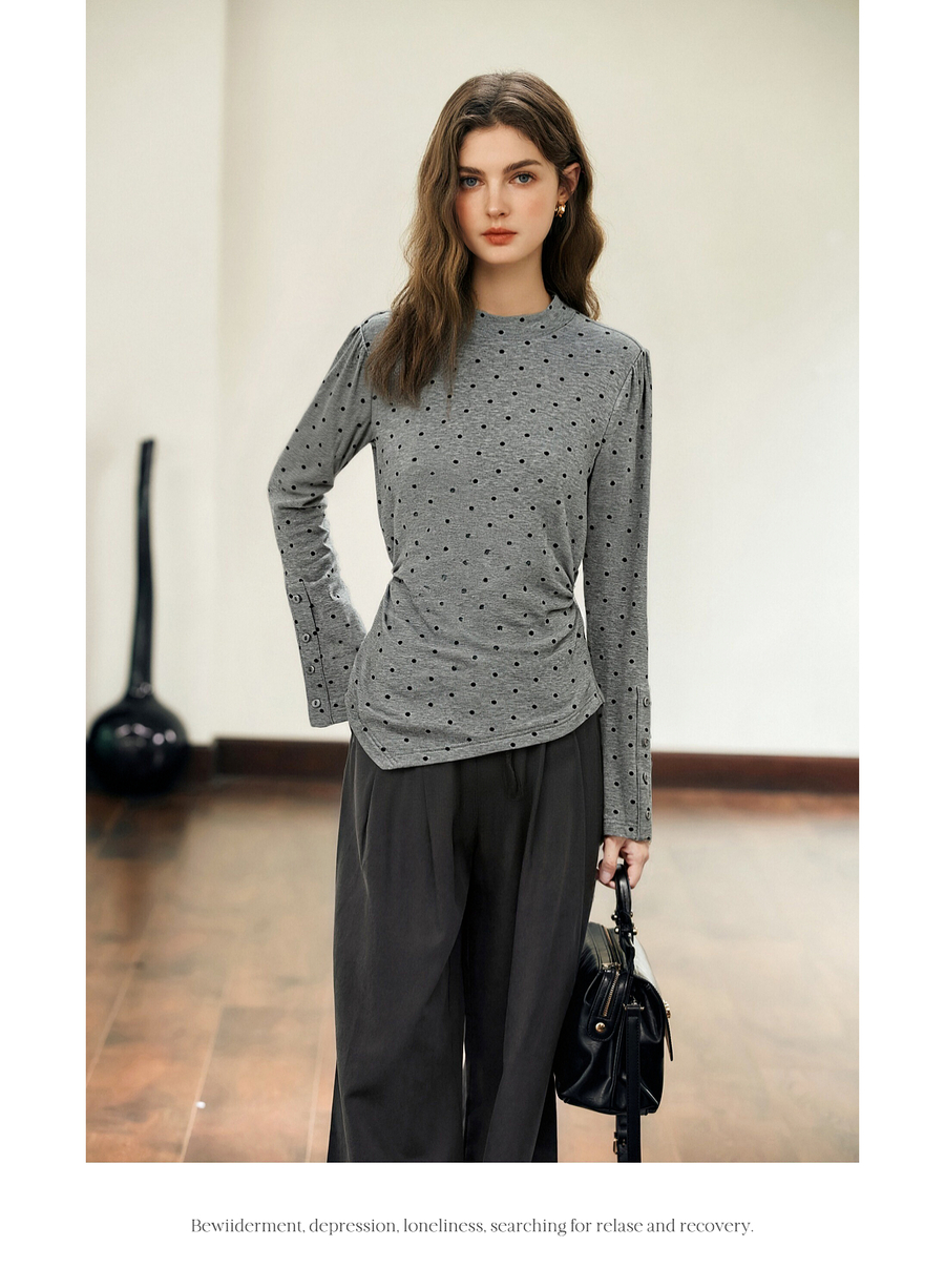 OLrain欧芮儿2025新款女冬季灰色波点设计感显瘦长袖T恤打底衫