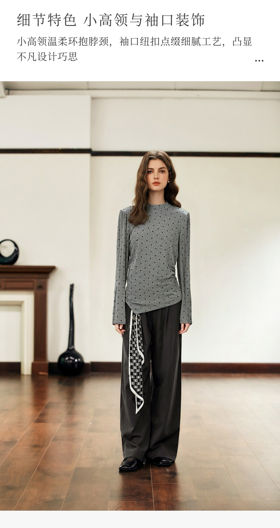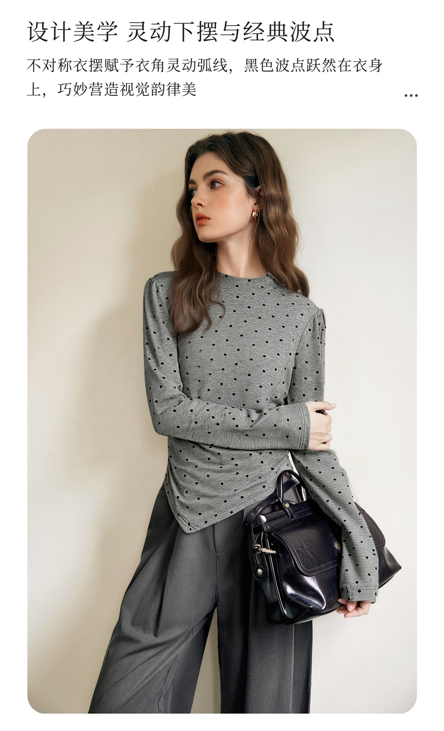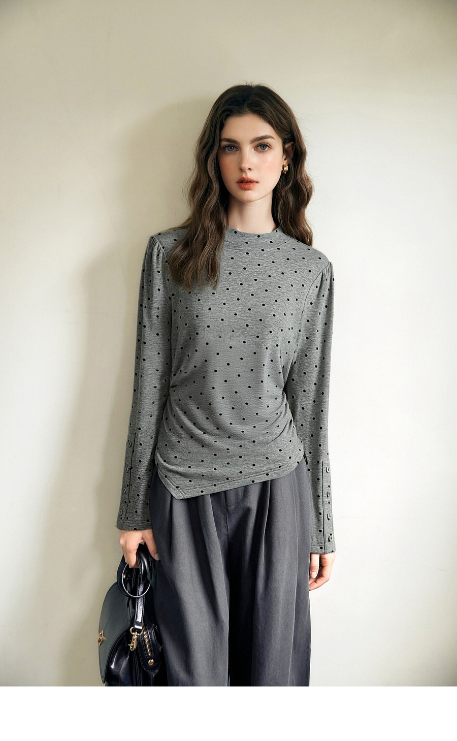 OLrain欧芮儿2025新款女冬季灰色波点设计感显瘦长袖T恤打底衫