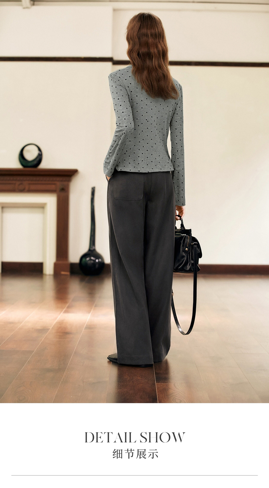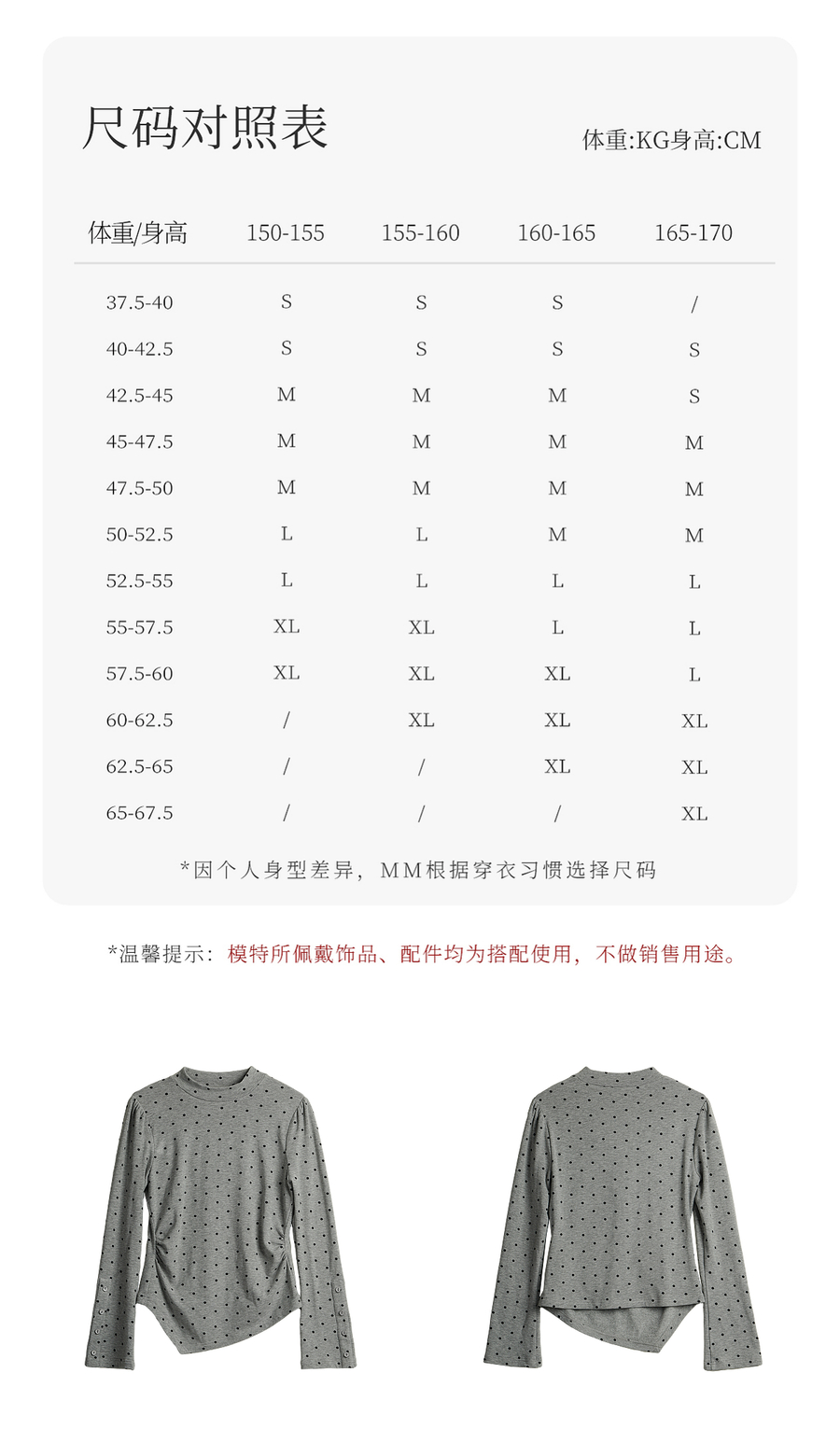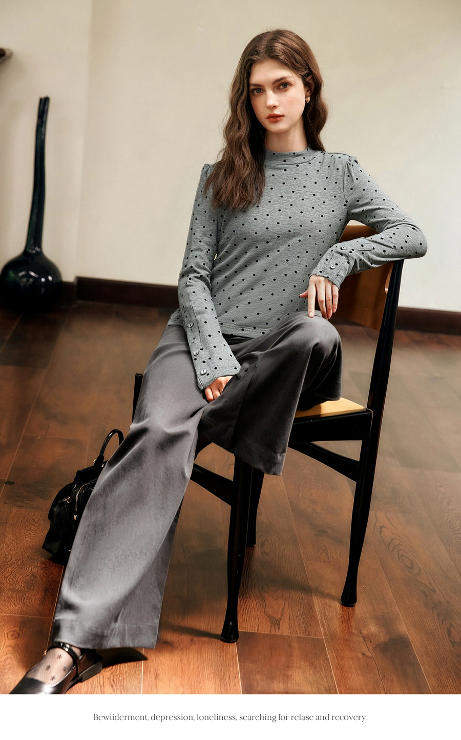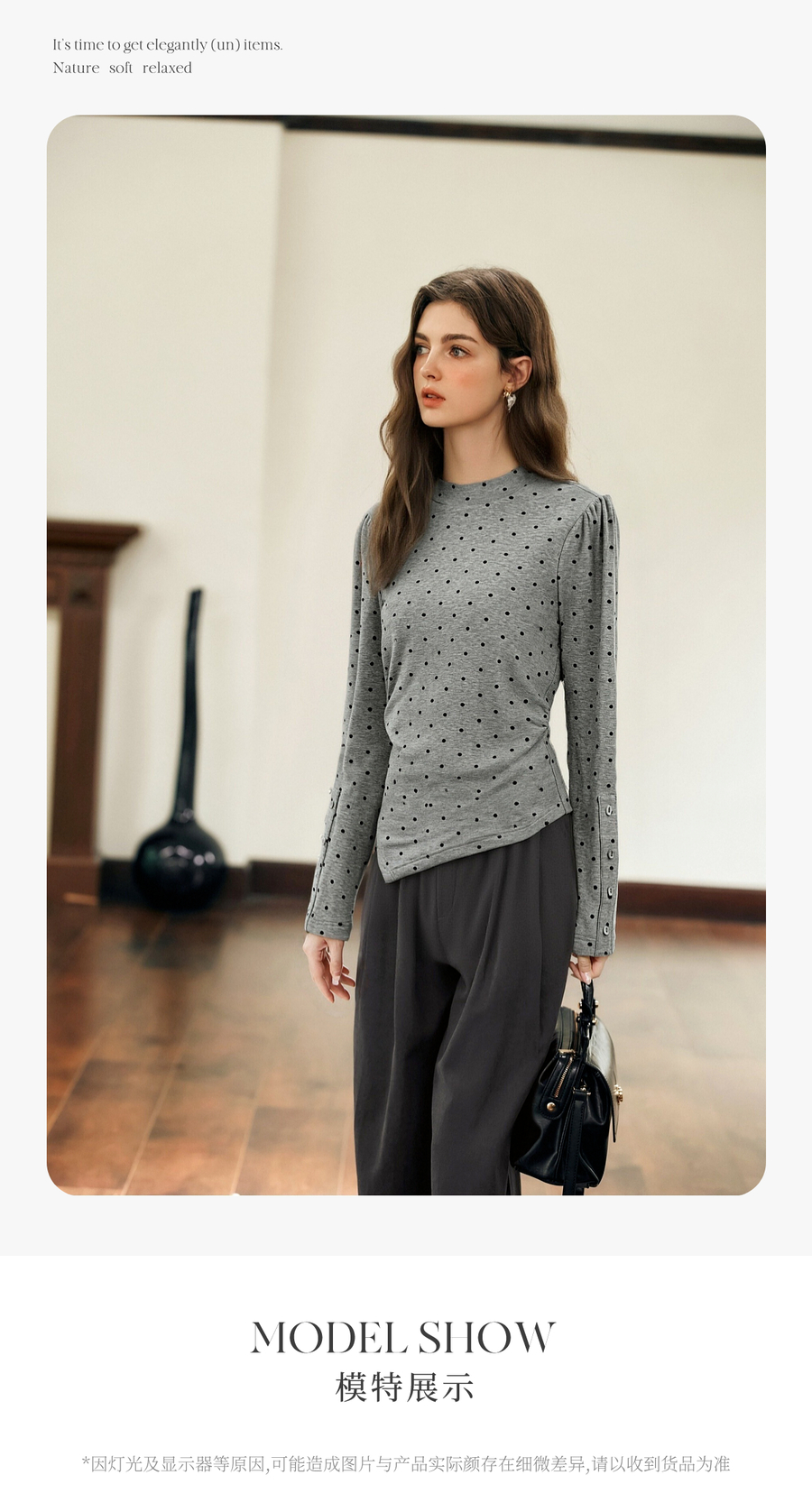 OLrain欧芮儿2025新款女冬季灰色波点设计感显瘦长袖T恤打底衫