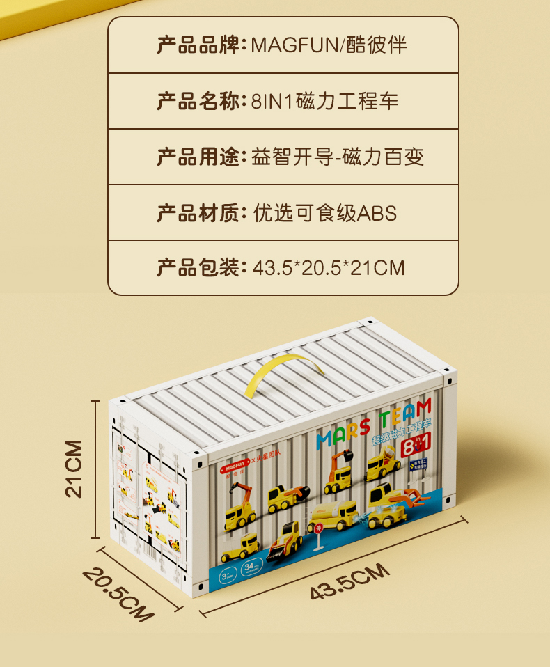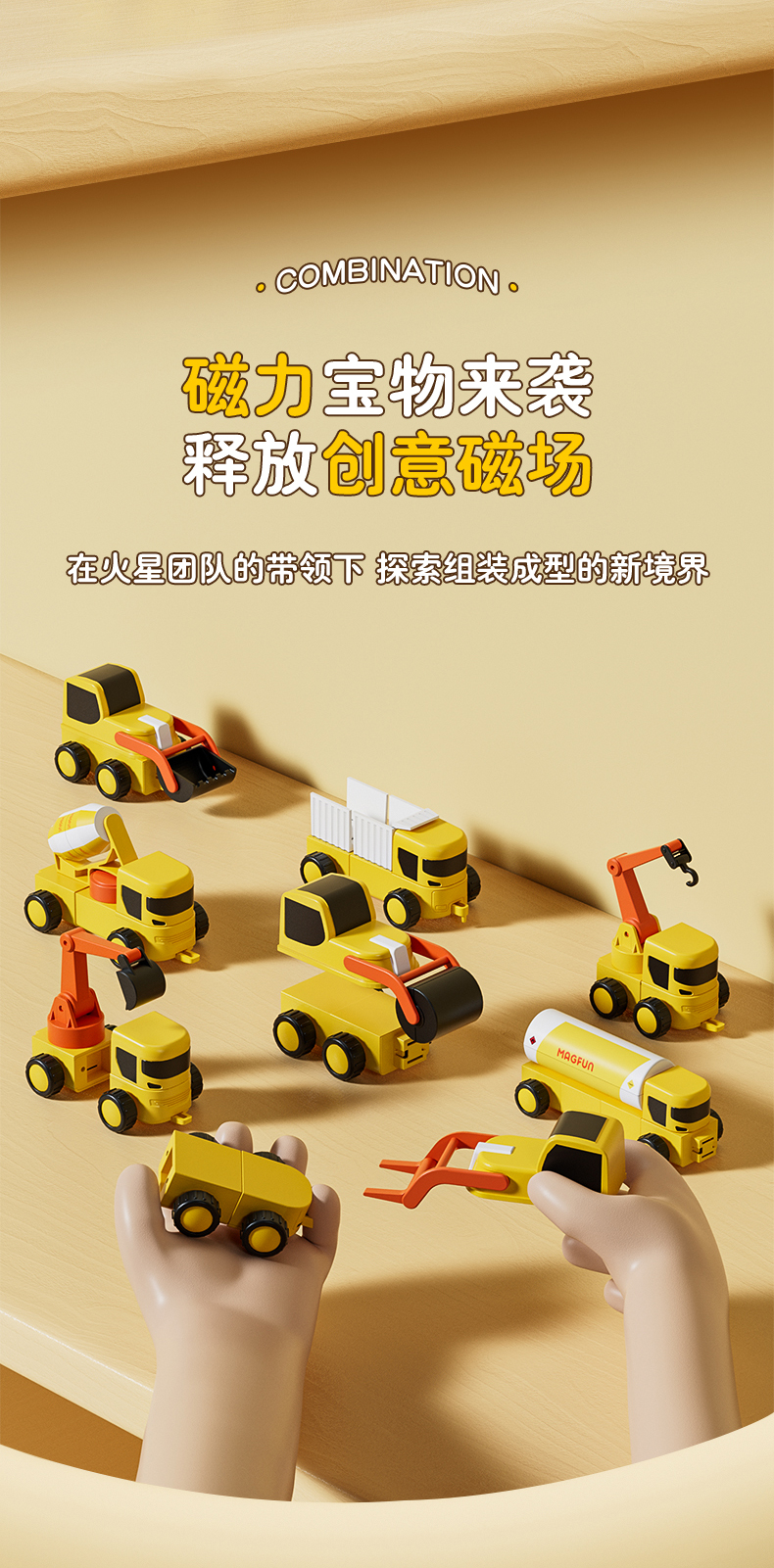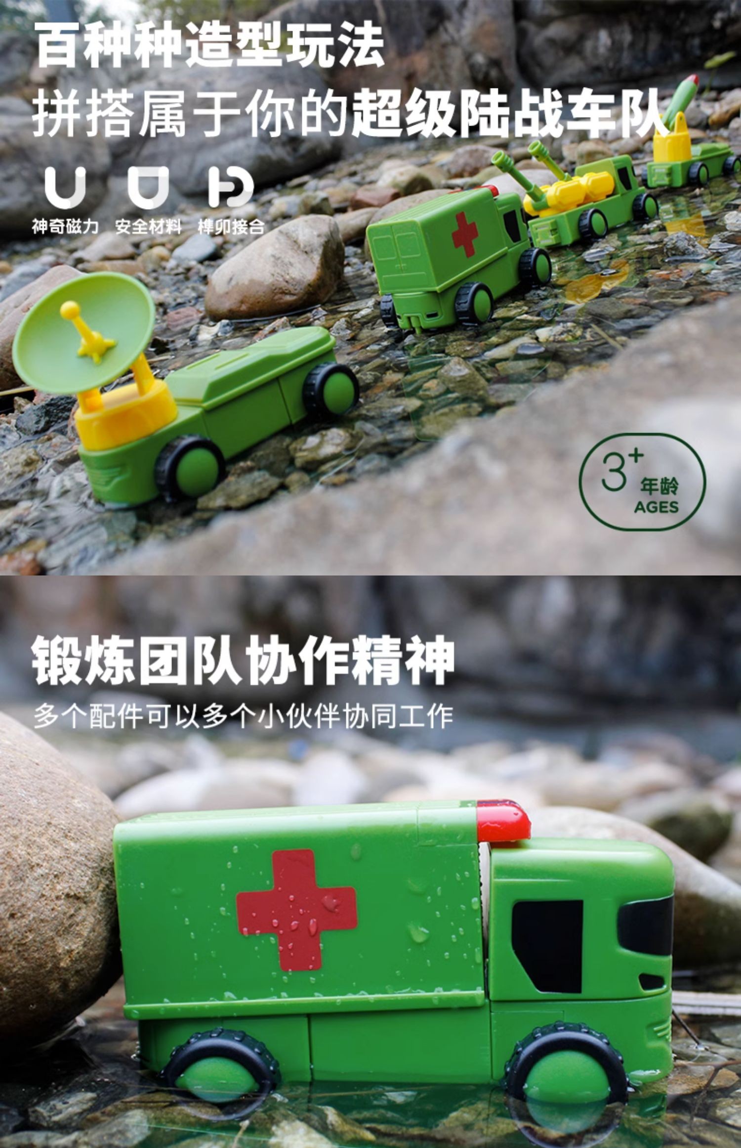 【5辆=100辆 拼出孩子的专属小工地】Magfun酷彼伴工程车积木 工程车 军事车 激发孩子创造力积木礼盒