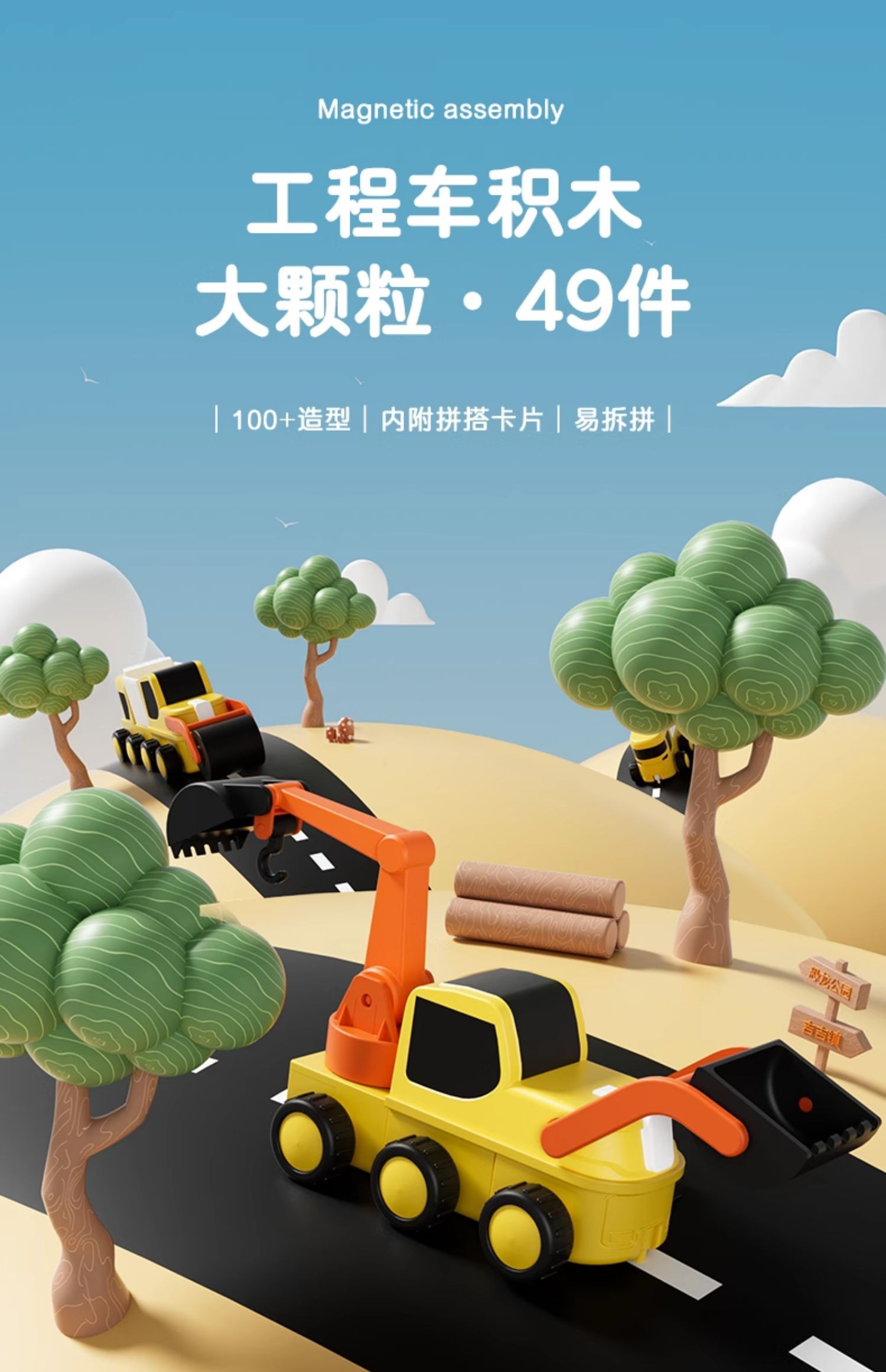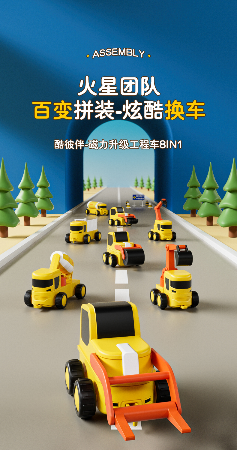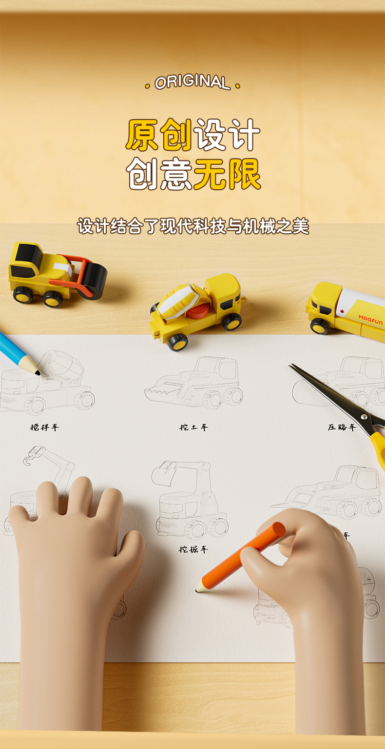 【5辆=100辆 拼出孩子的专属小工地】Magfun酷彼伴工程车积木 工程车 军事车 激发孩子创造力积木礼盒