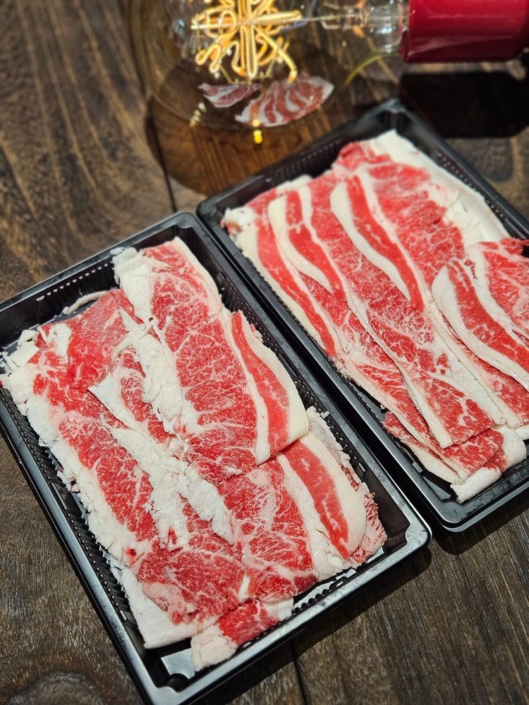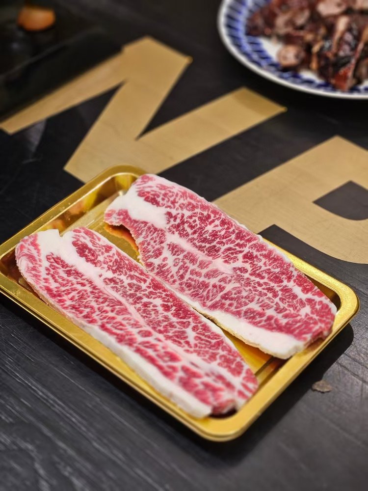 纯血M7和牛眼肉盖涮烤片美腻的花纹,炸裂的奶香,涮锅,烤肉,都是普通烤肉店舍不得用的高端牛肉