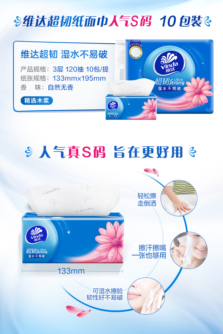 维达抽纸超韧S码三层120抽10包/提家用纸巾维达抽纸实惠装卫生纸