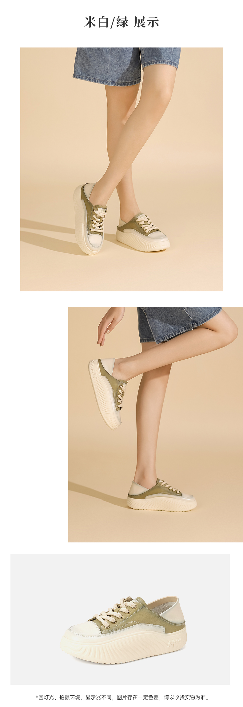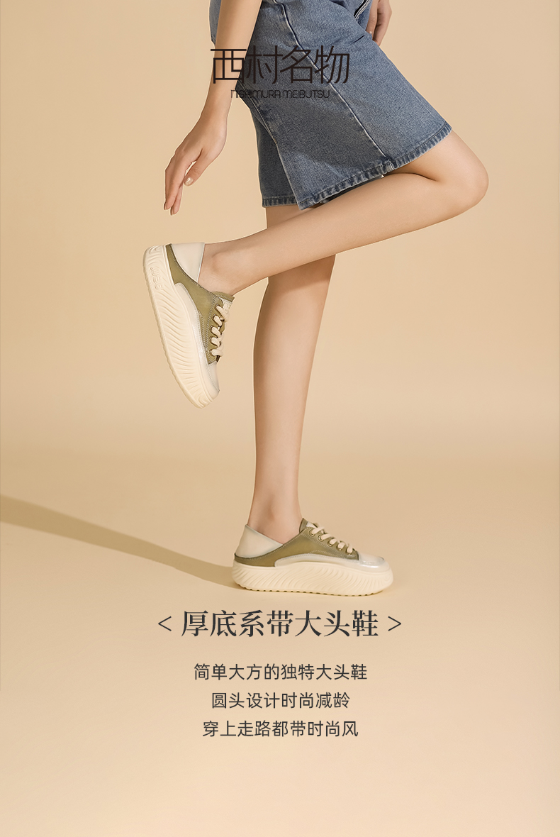 西村名物2023夏季新款复古厚底板鞋女两穿一脚蹬软底休闲鞋34211