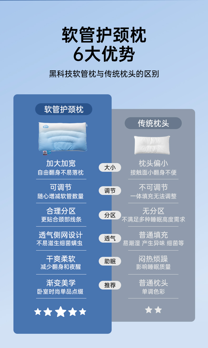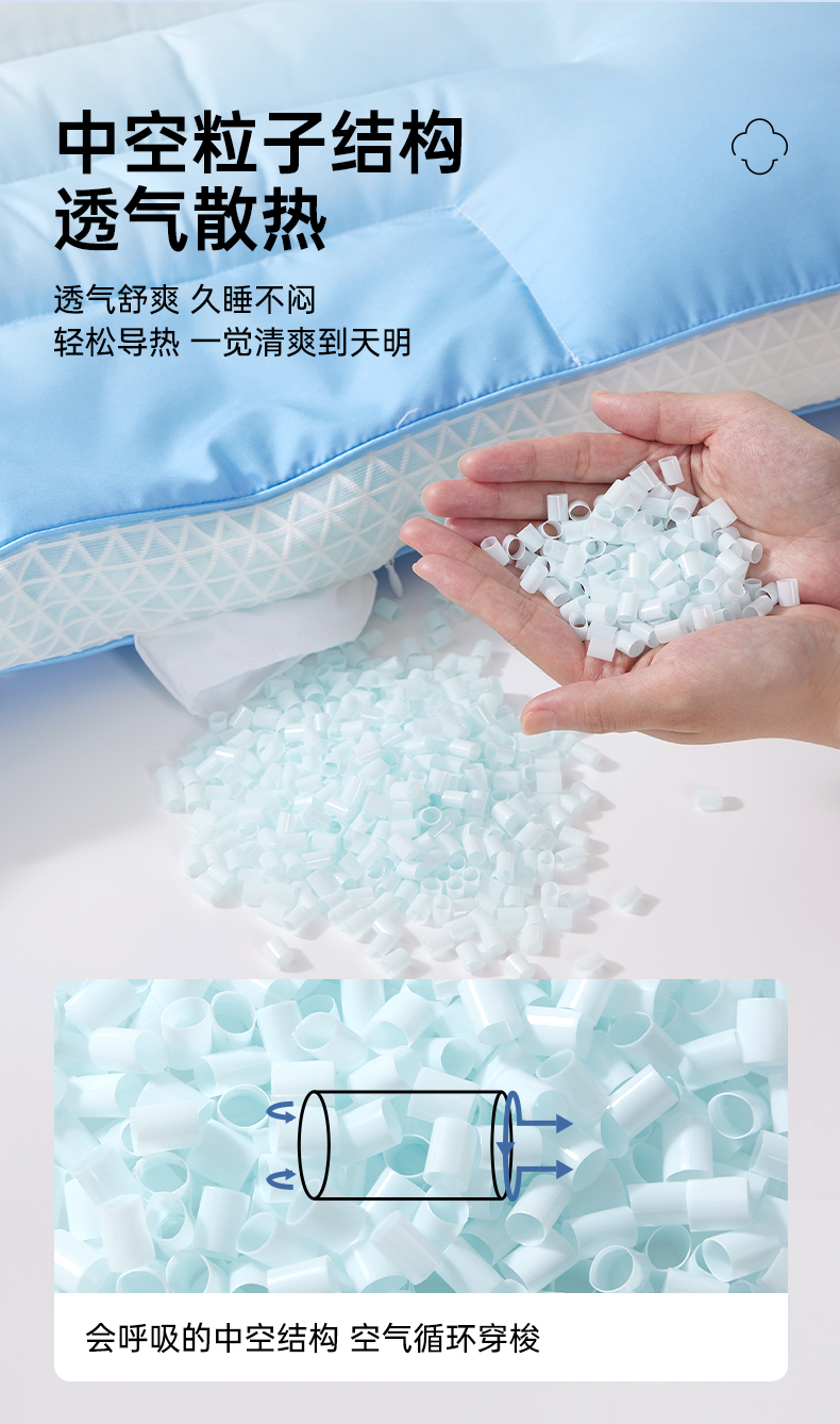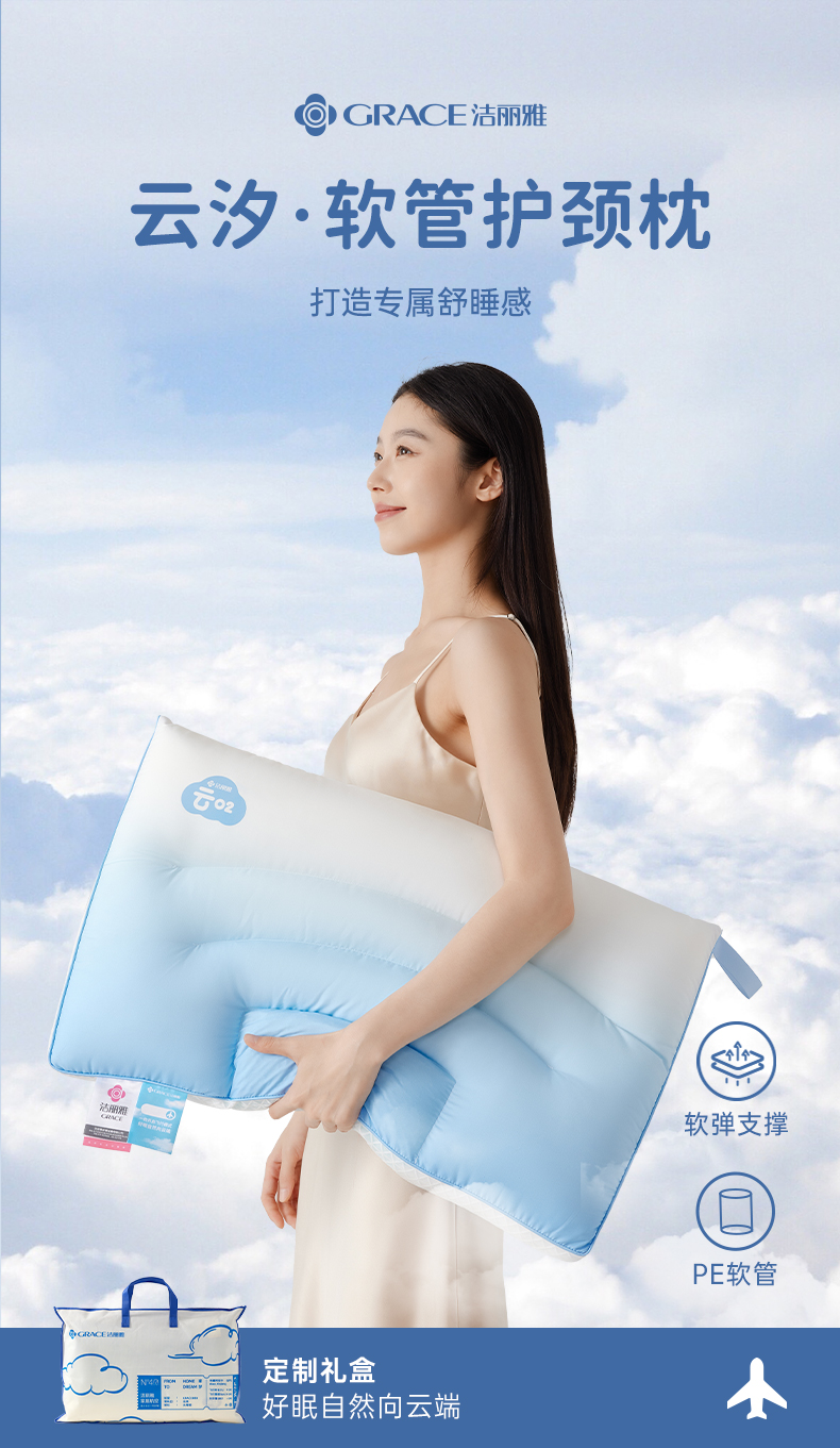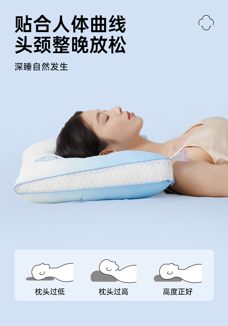 洁丽雅软管枕分区枕按摩枕睡眠枕头宿舍家用睡觉中枕柔软透气支撑