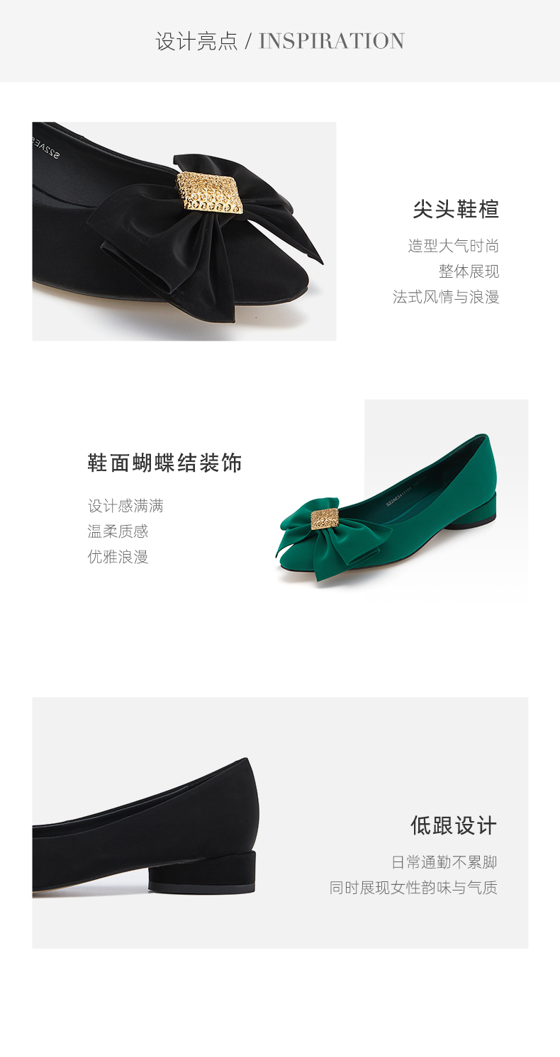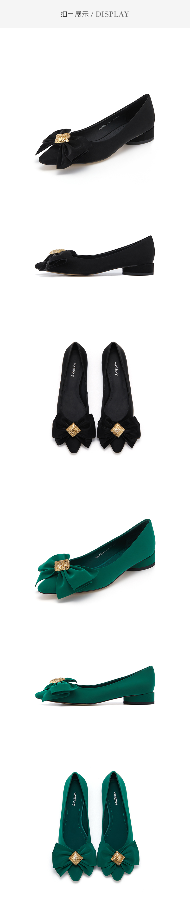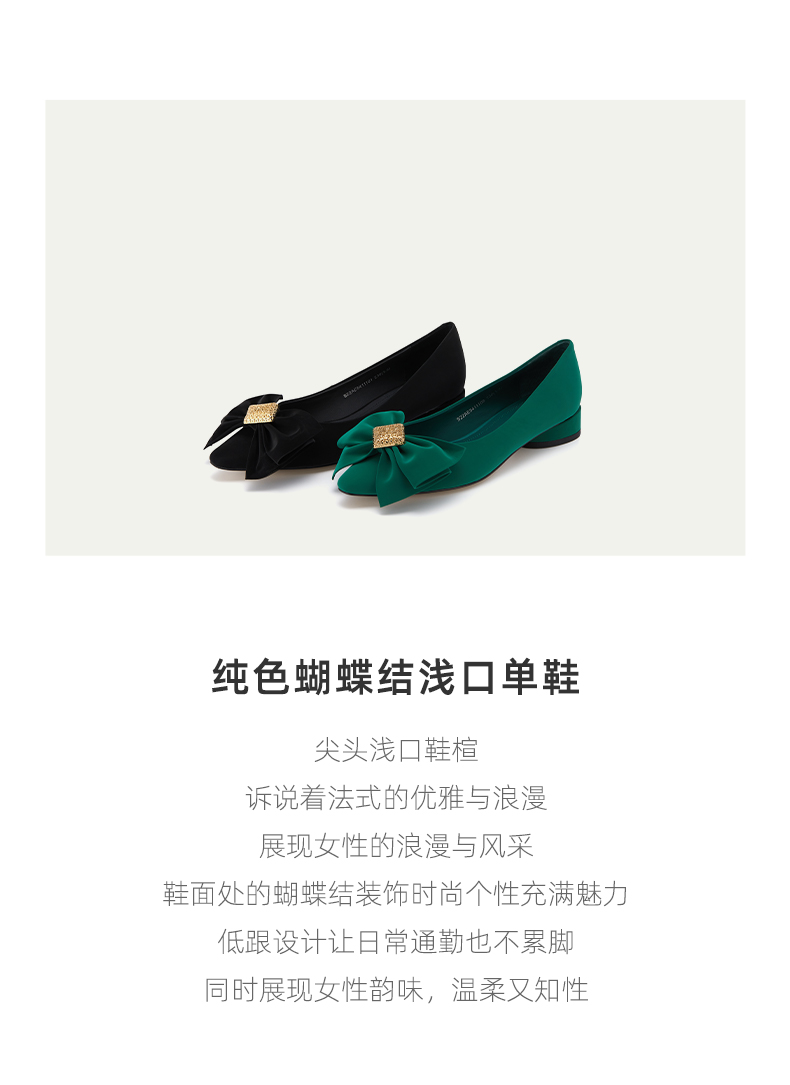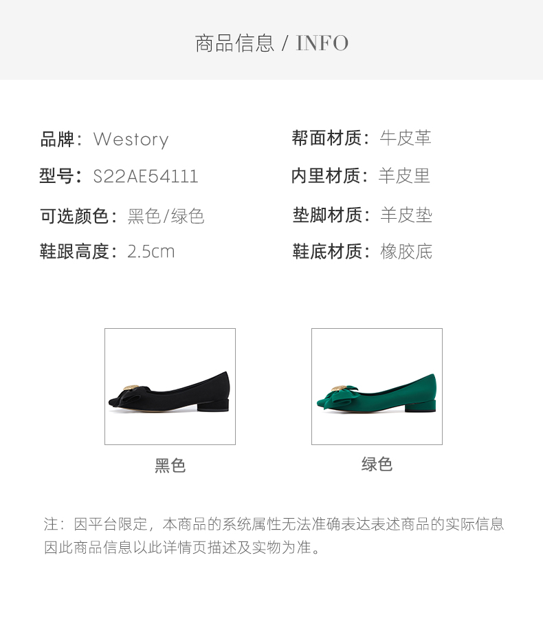westory蝴蝶结单鞋低跟通勤浅口一脚蹬女鞋真皮百搭时尚纯色鞋子S22AE54111