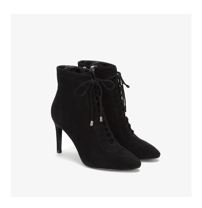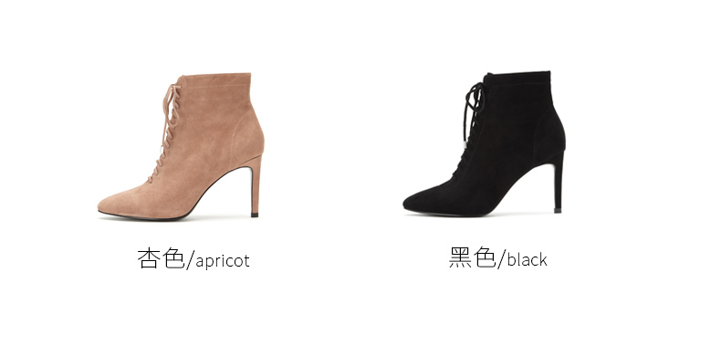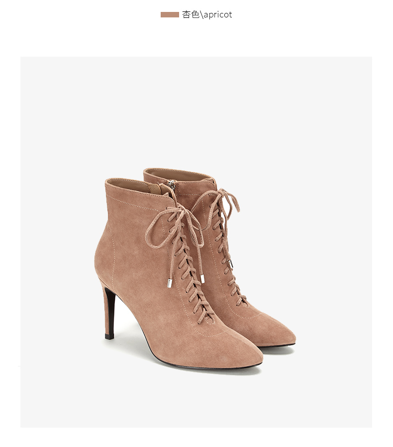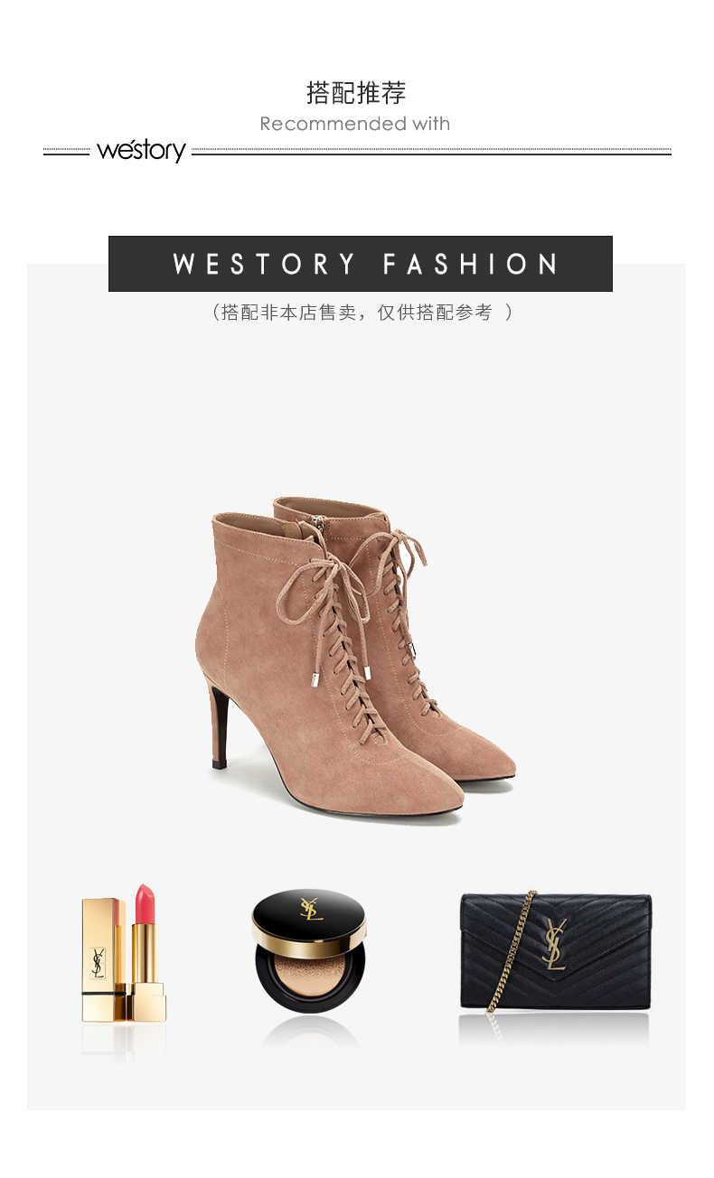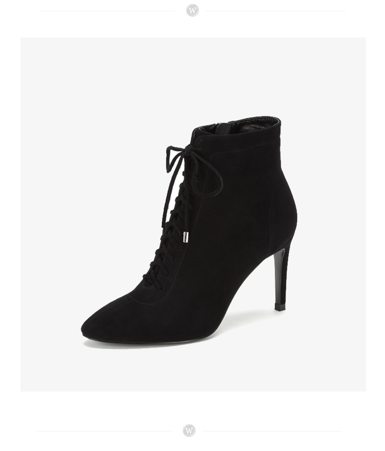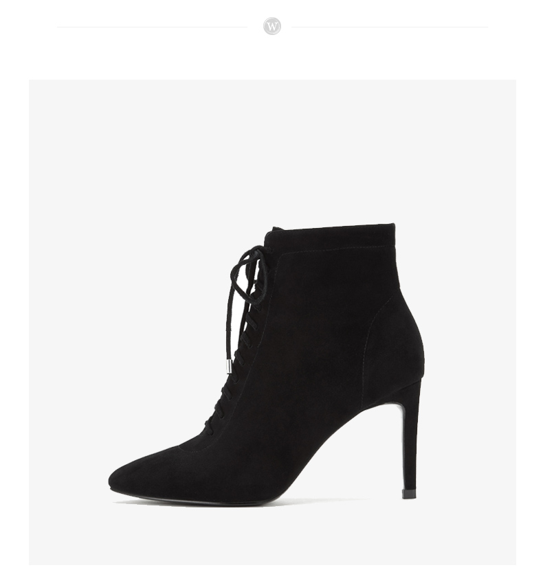 westory商场同款秋冬绒面系带时尚短靴高跟鞋尖头细跟女W284S80171