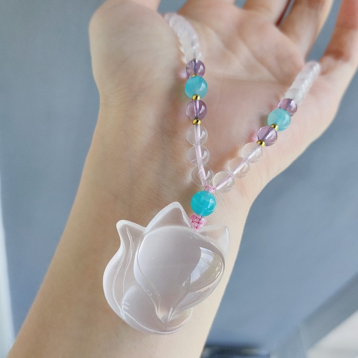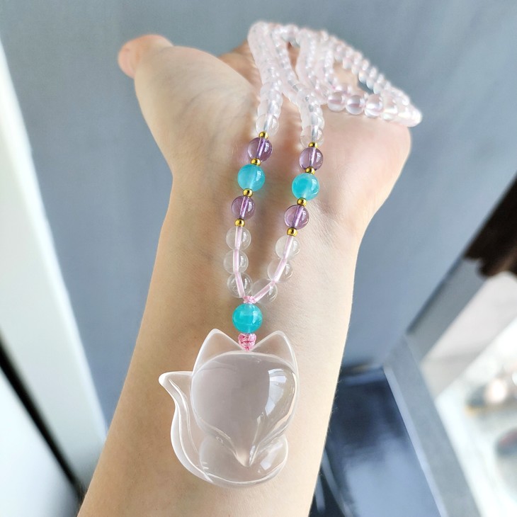 编码:DC0422190173粉晶小狐狸项链珠子尺寸:6.3mm尺寸:36.5*30.3mm