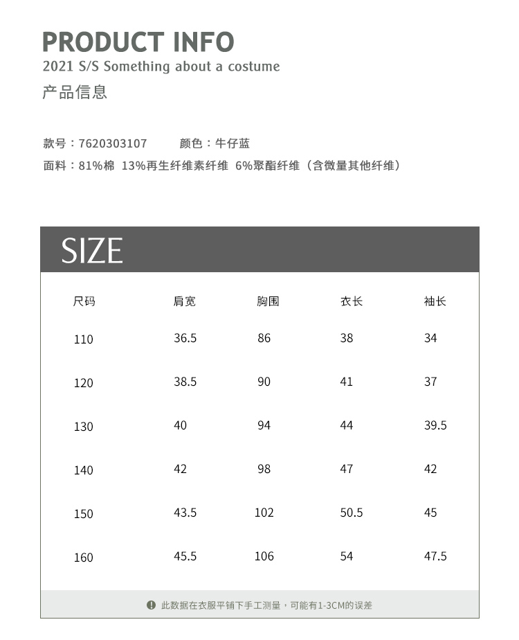 | 货号: 7620303107 | 参考身高: 110/52 120/56 130/60 140/64 150/68 160/72 |