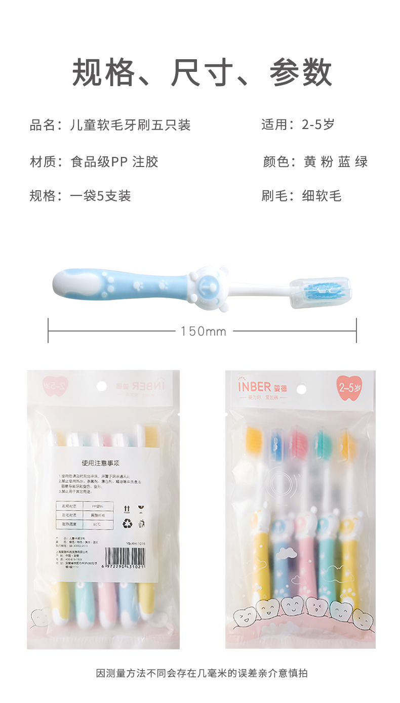 婴蓓 儿童小熊牙刷 5支装(2-5岁儿童使用,软毛,专为儿童设计 )