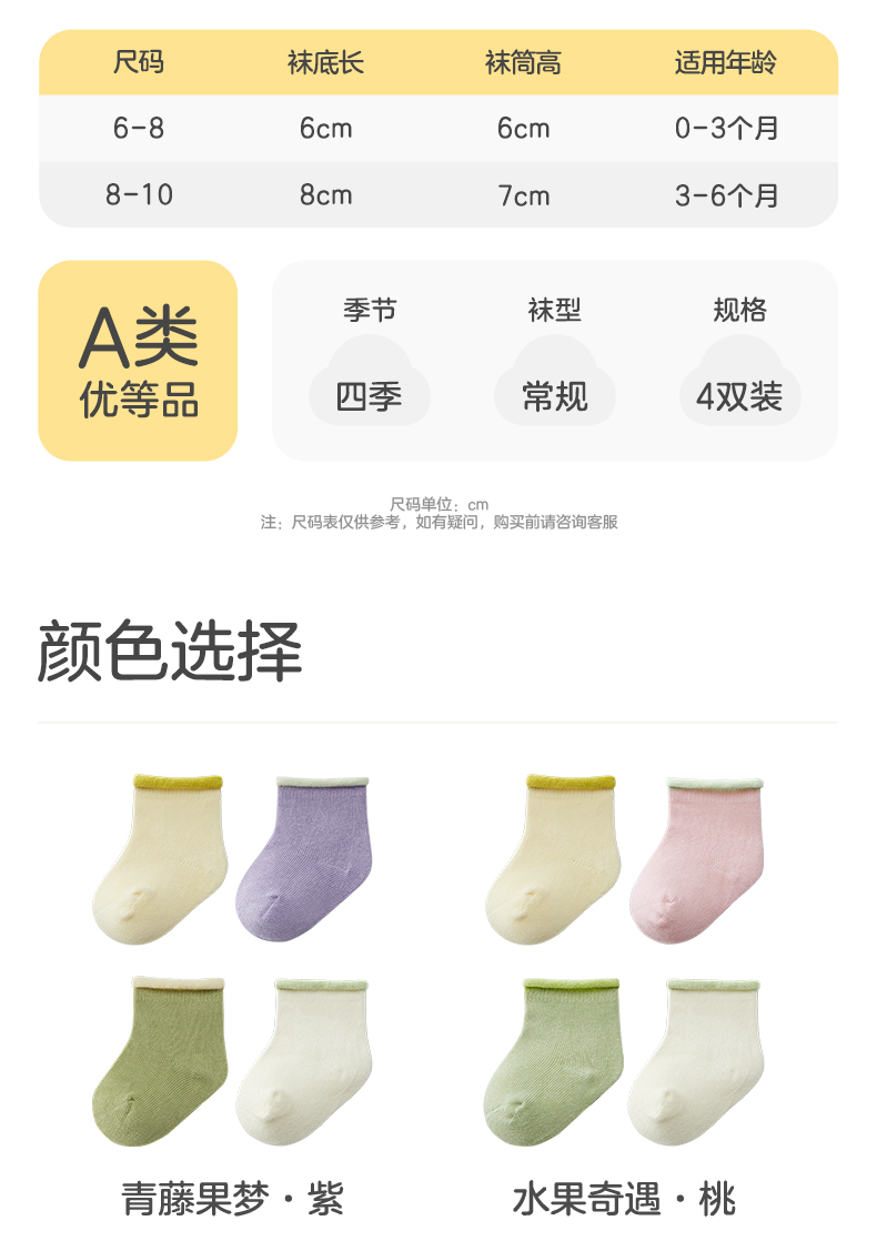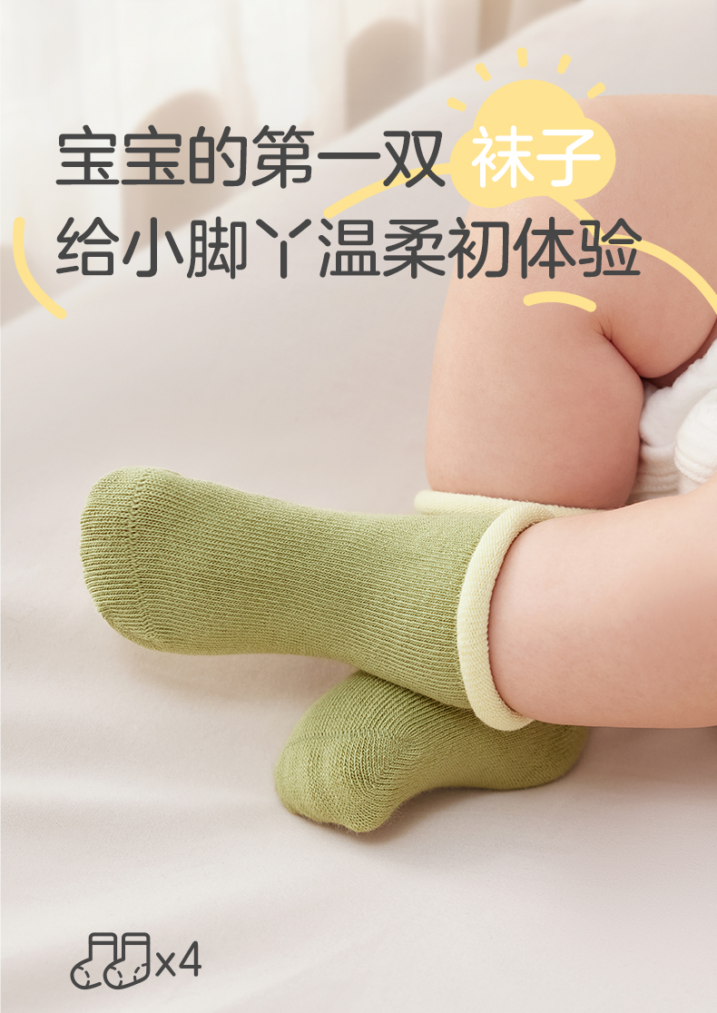 【新生儿专属袜】粒粒阳光新生婴儿袜0到3个月a类不勒腿