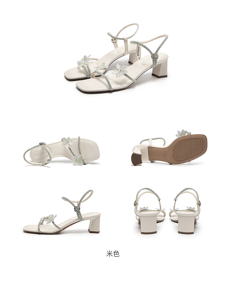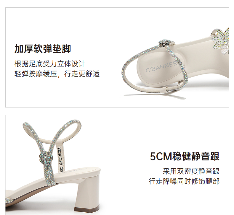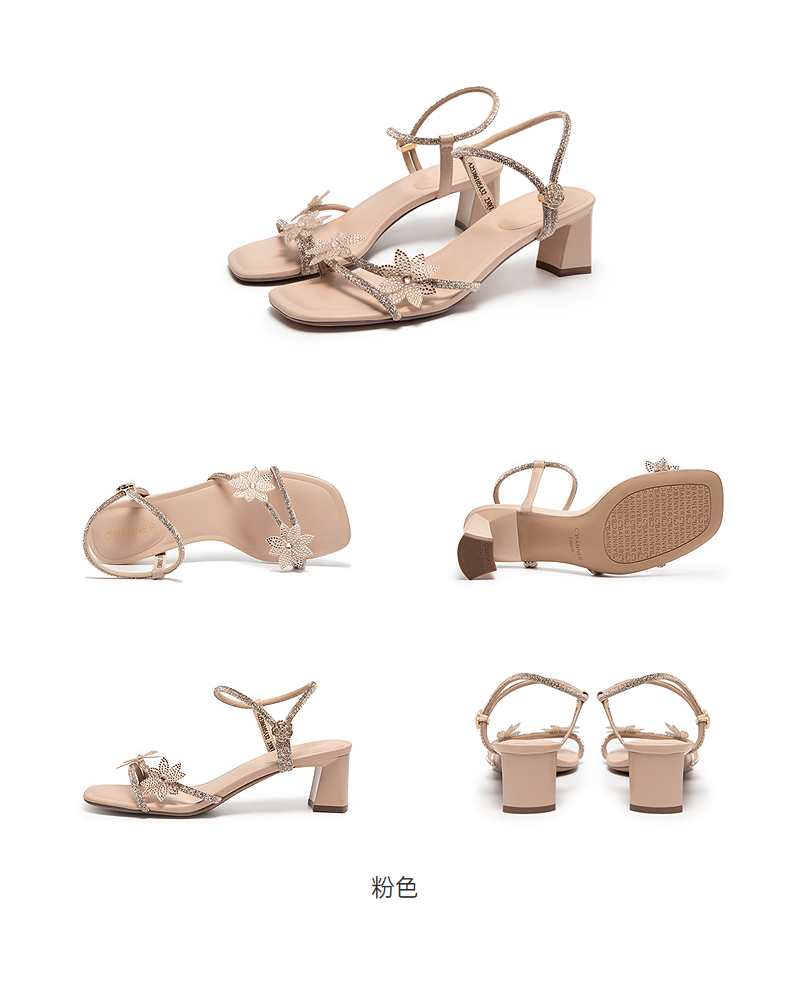 【静音系列】千百度粗高跟时装凉鞋女款配裙子凉A25386105