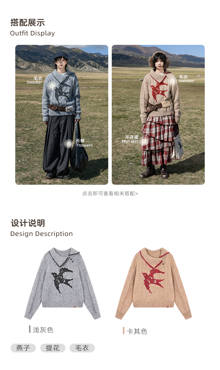 早乙女惠子saotome/STMMY14993/燕子提花毛衣