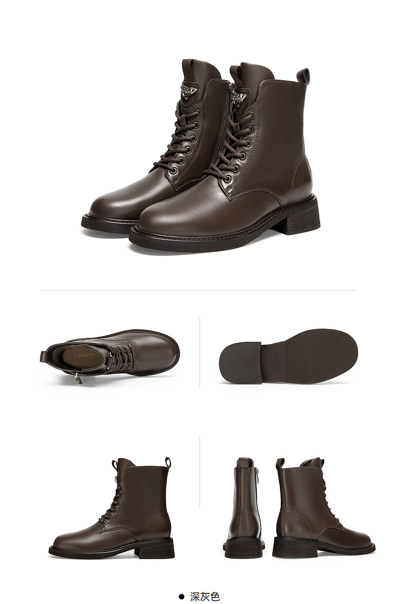 千百度粗中跟羊皮马丁靴女款秋冬时尚通勤短靴子A24555605