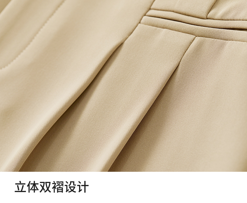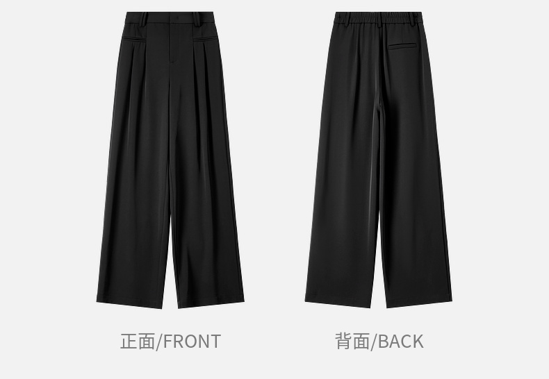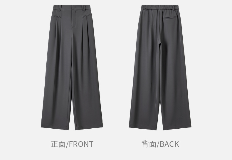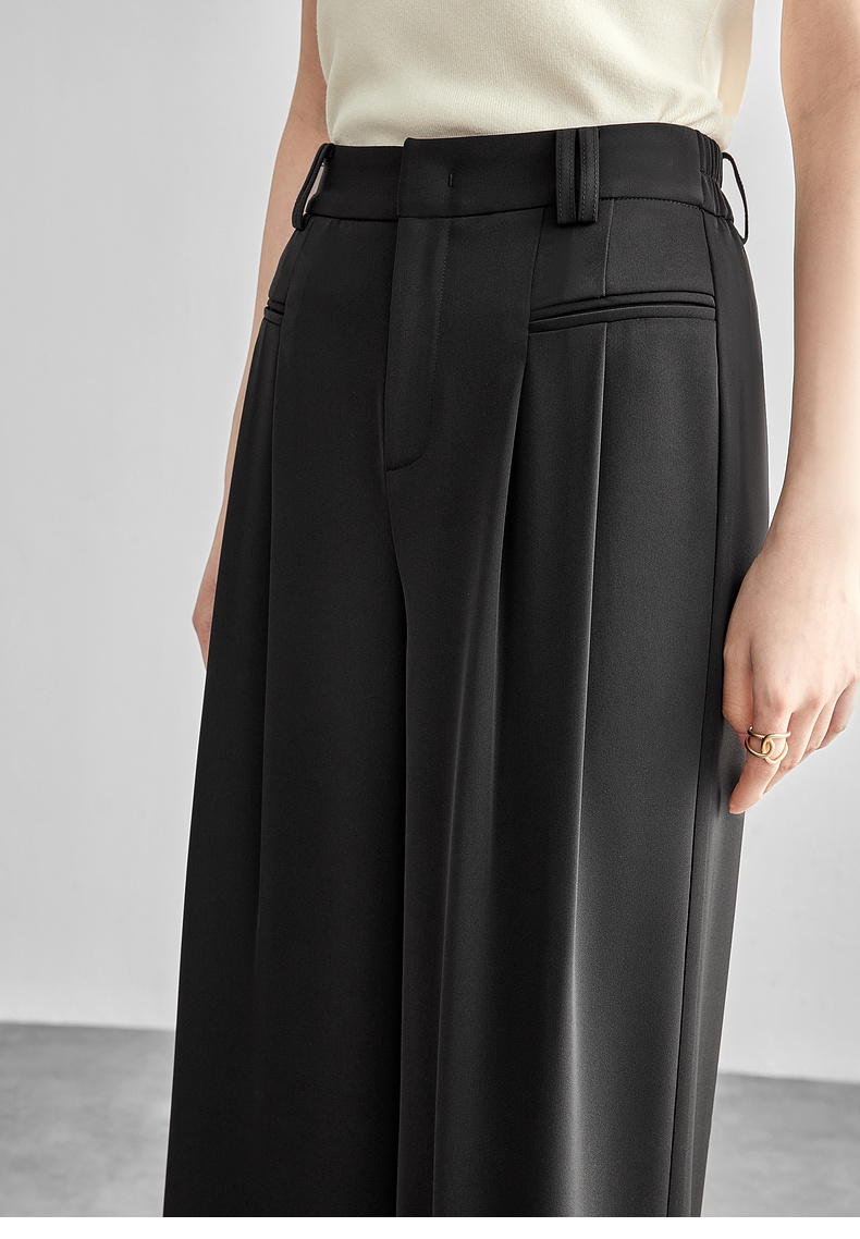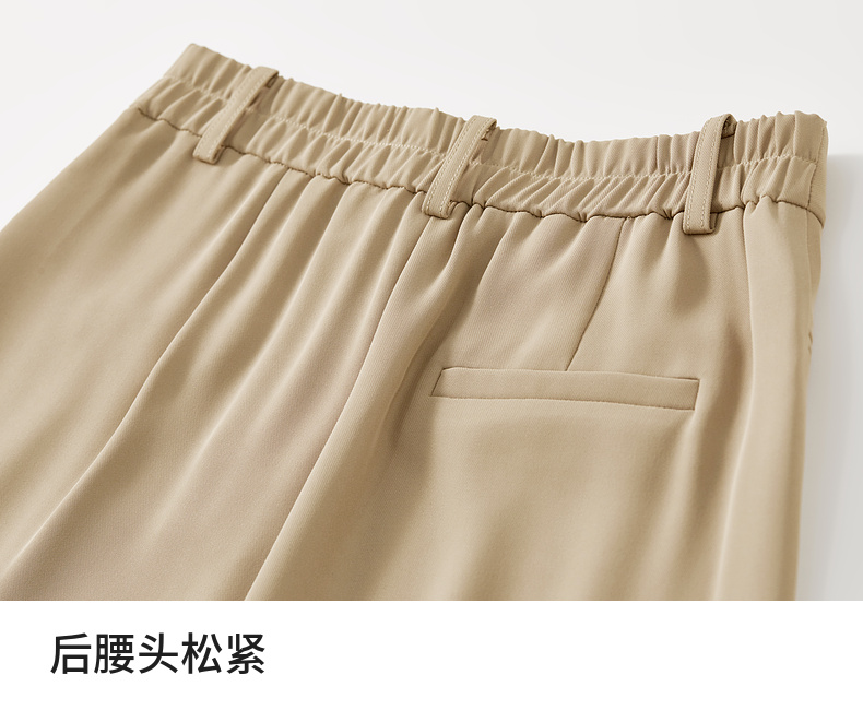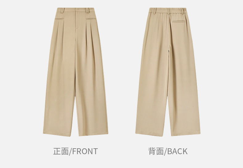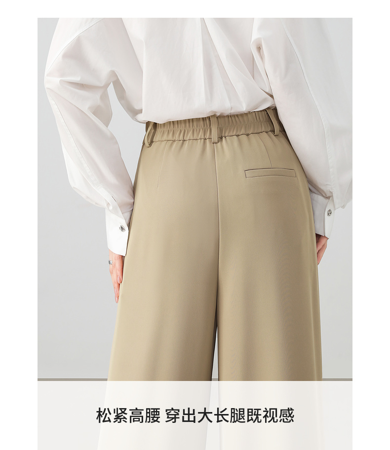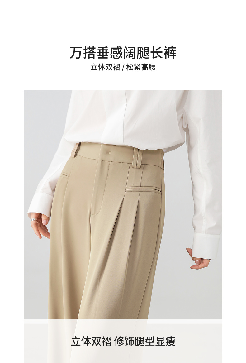 【内购】职场通勤梨型身材显瘦立体双褶松紧高腰清爽垂感阔腿长裤-151K57562
