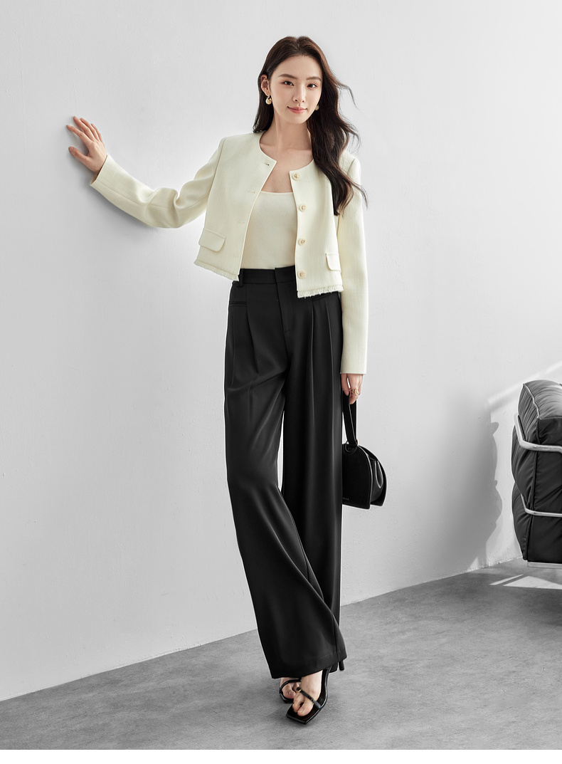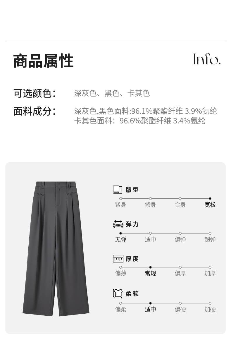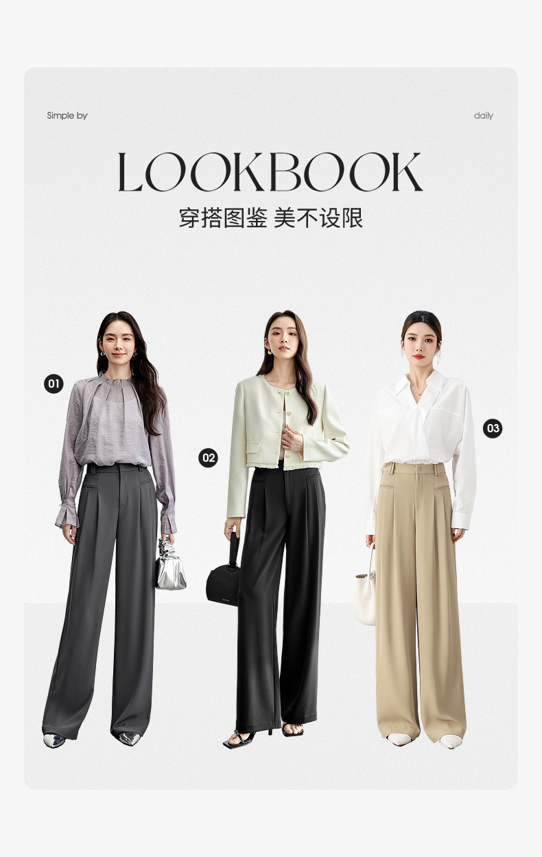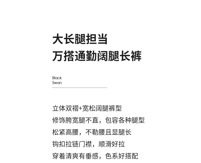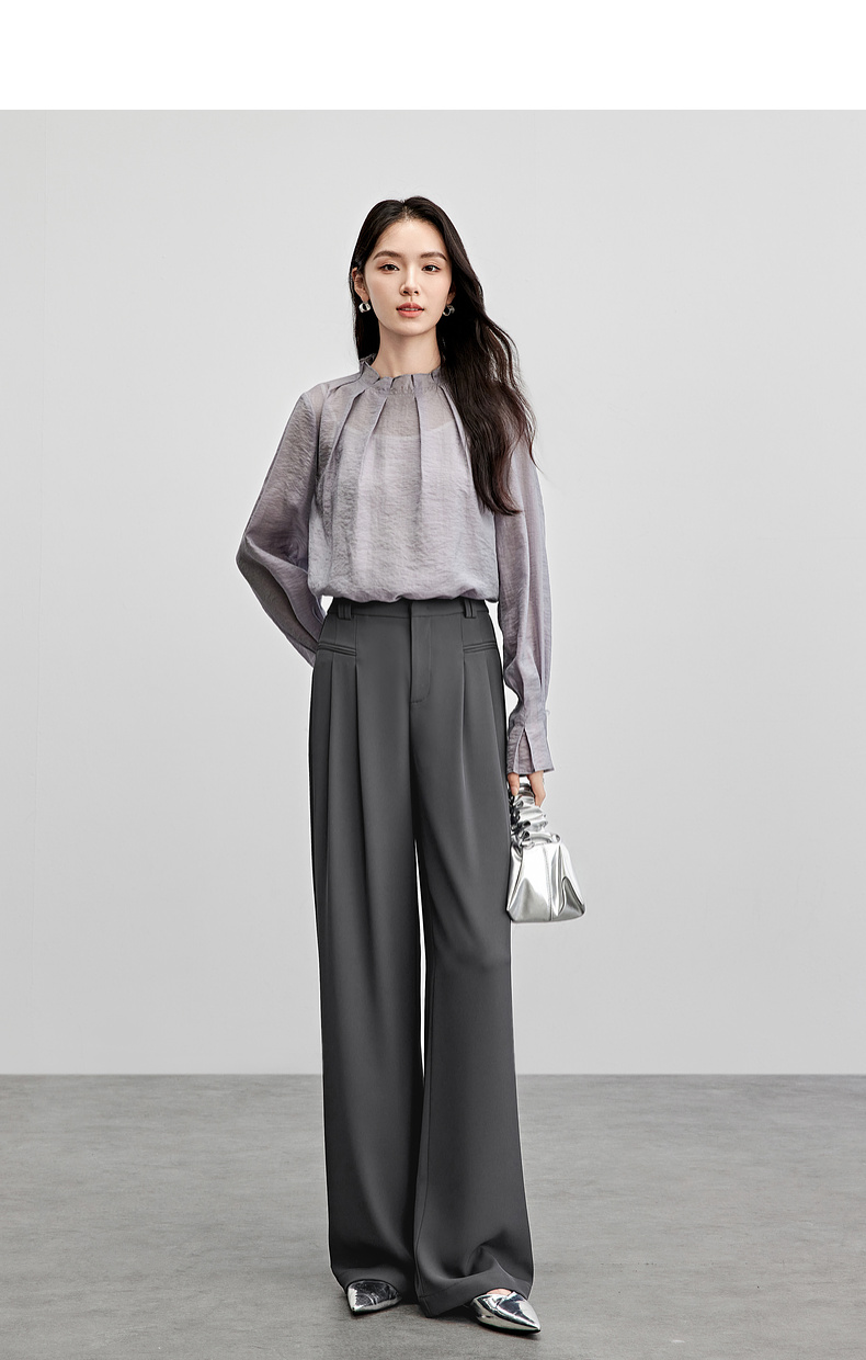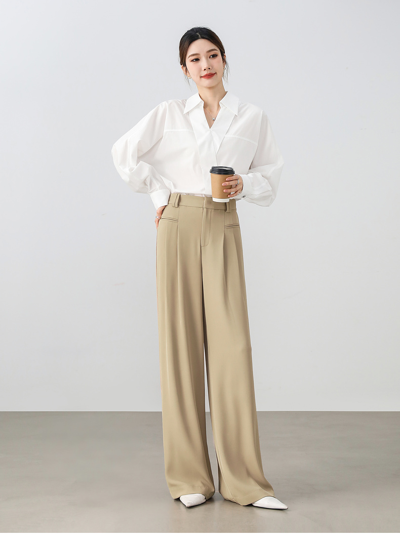 【内购】职场通勤梨型身材显瘦立体双褶松紧高腰清爽垂感阔腿长裤-151K57562