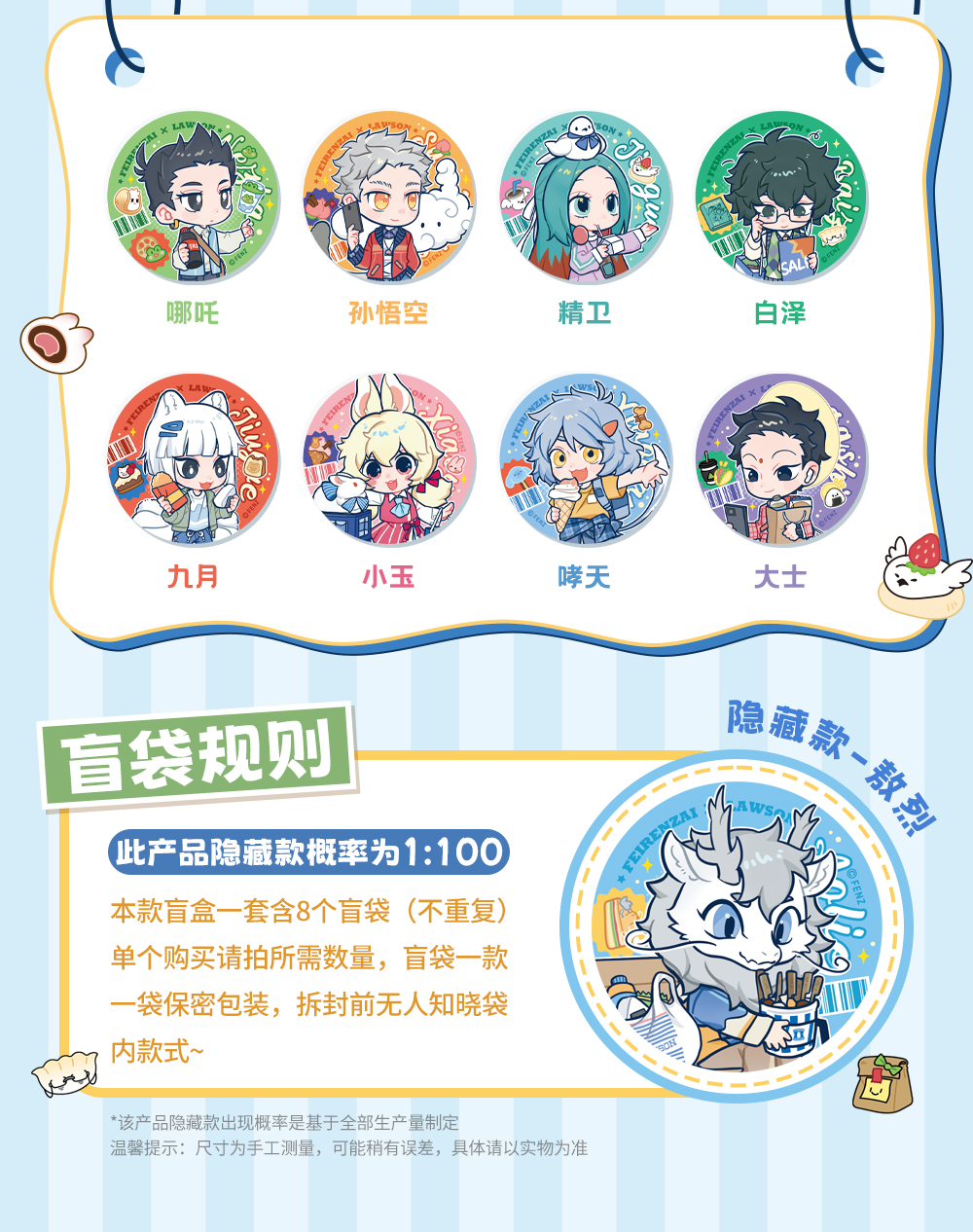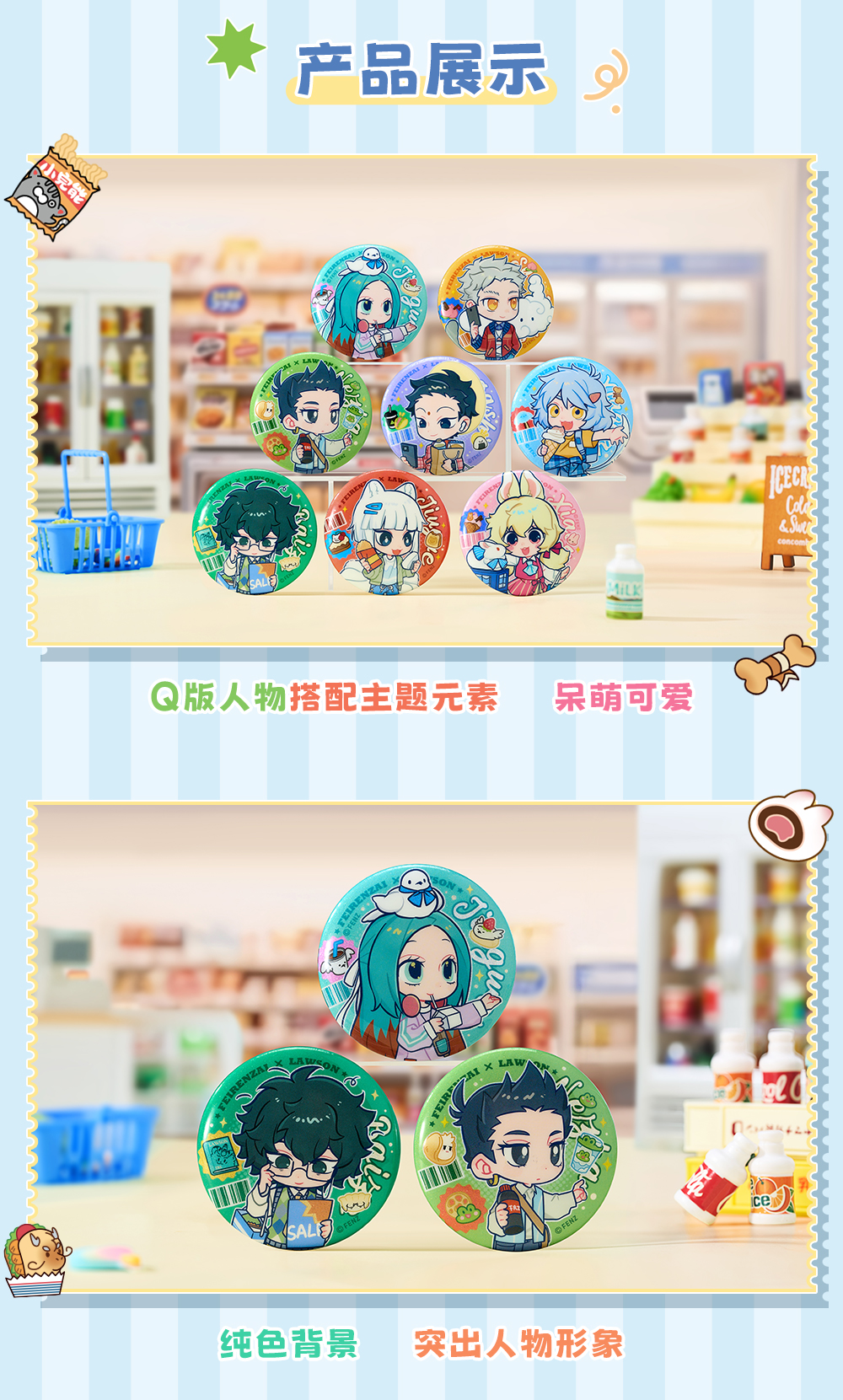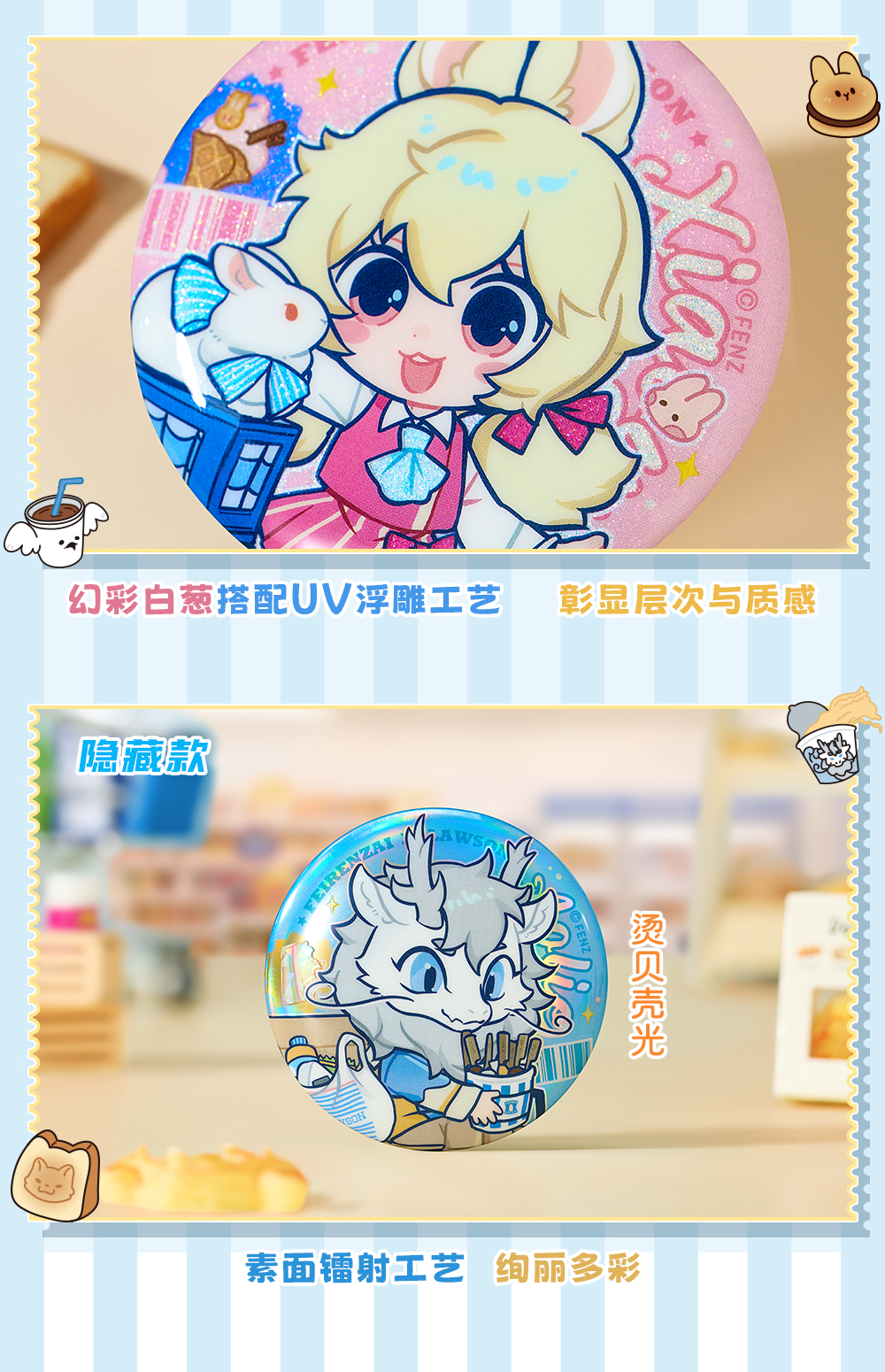 《非人哉官方店》罗森联名食光小铺Q版马口铁徽章盲盒动漫镭射吧唧