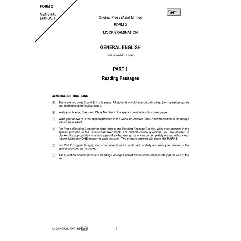 * Includes proofreading and a range of vocabulary commonly encountered in Form 2 English examinations