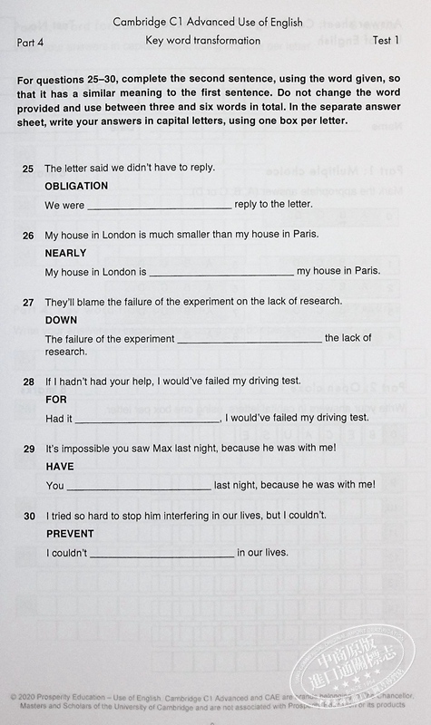 十余个剑桥C1英语运用测试及答案