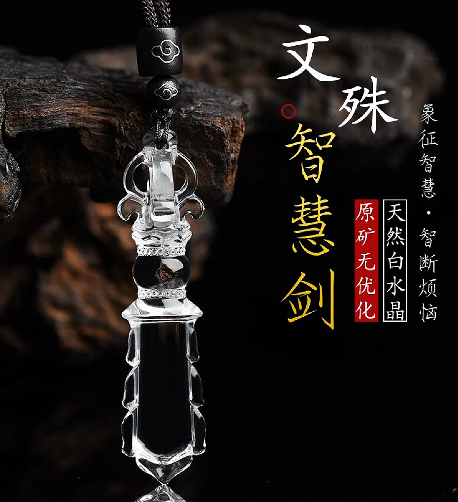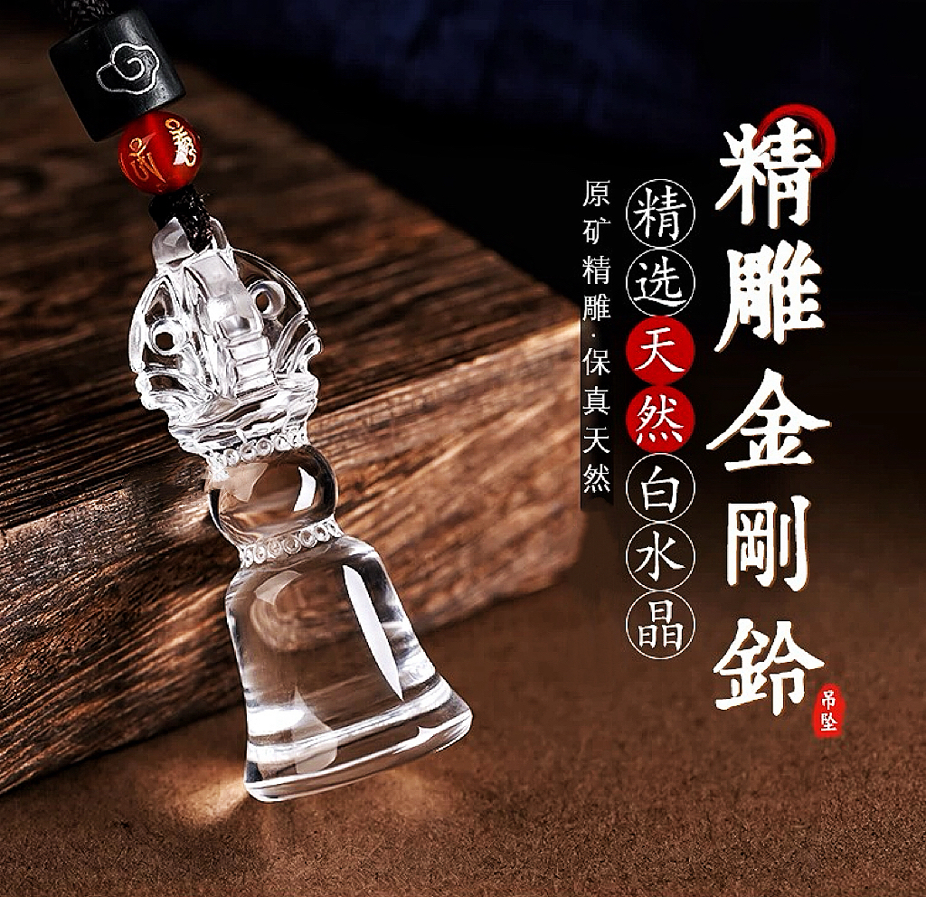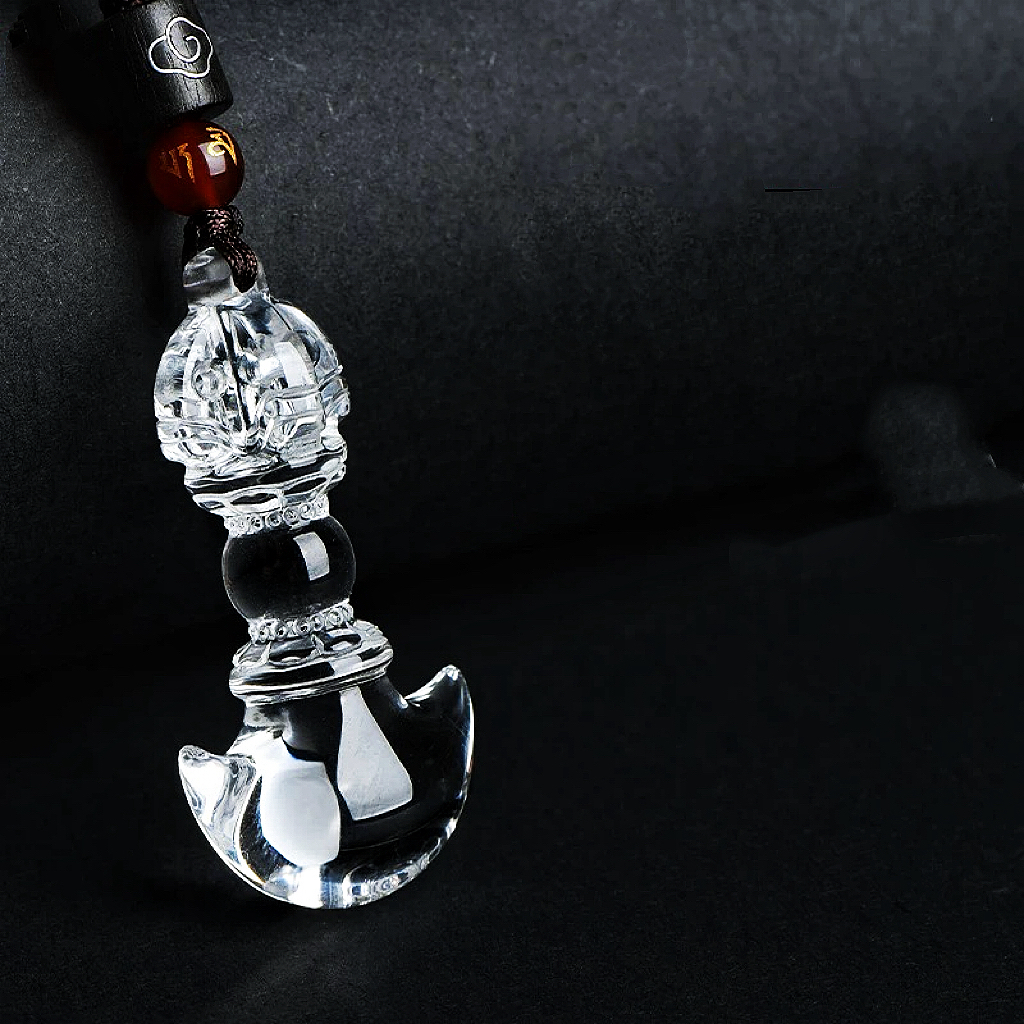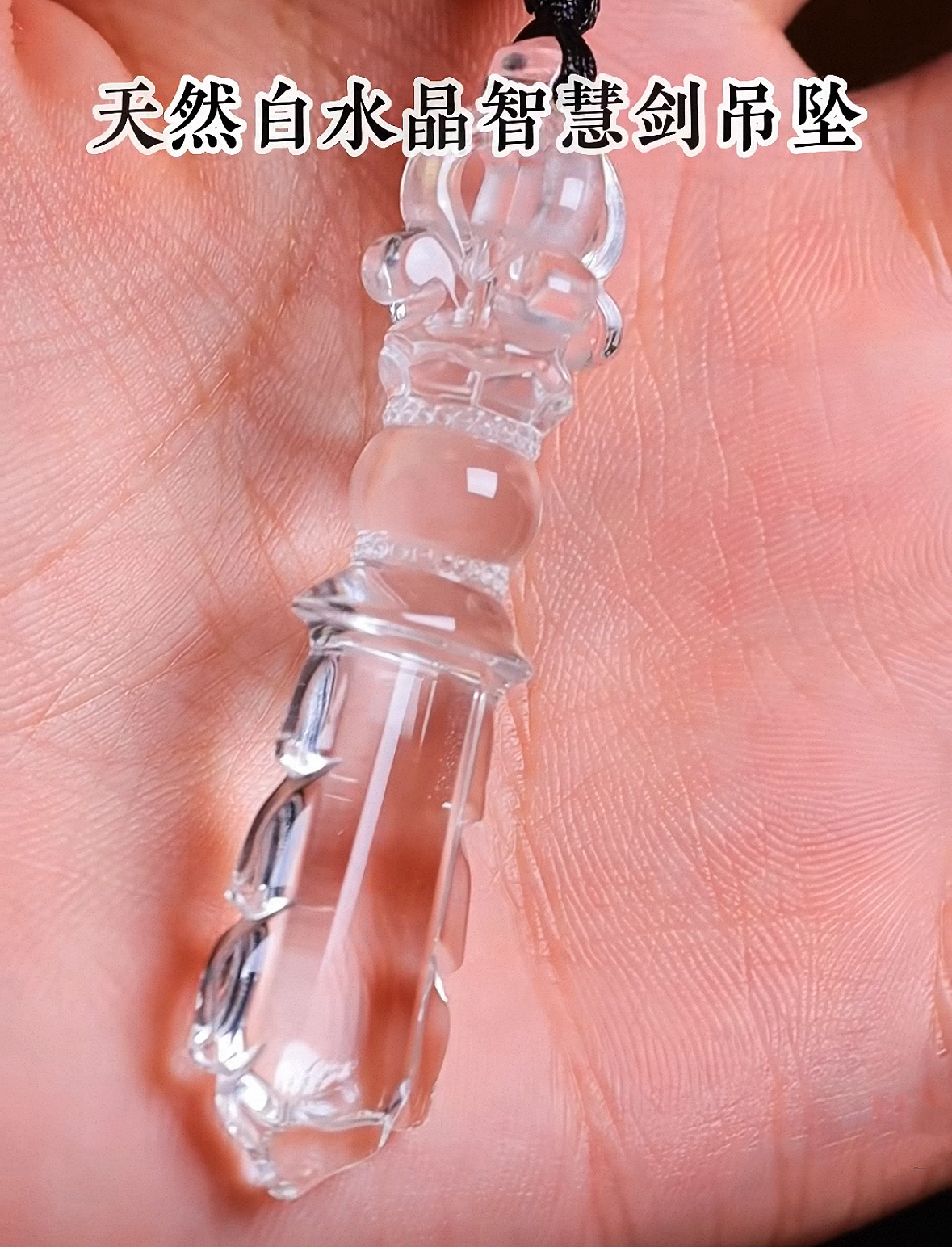 新款天然白水晶文殊智慧剑金刚铃水晶钺刀吊坠复古精雕本命年饰品项链挂件