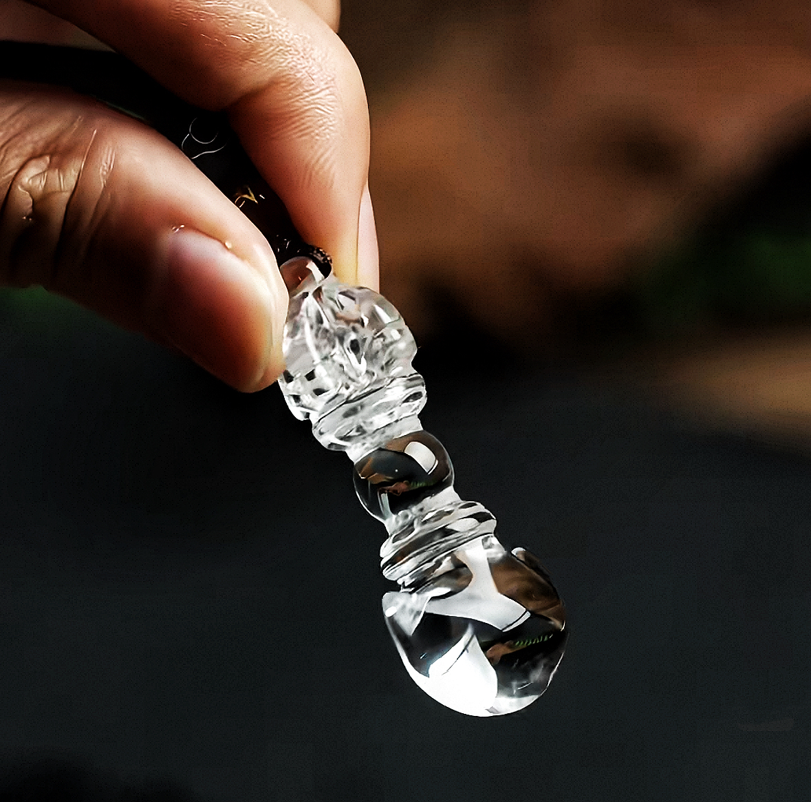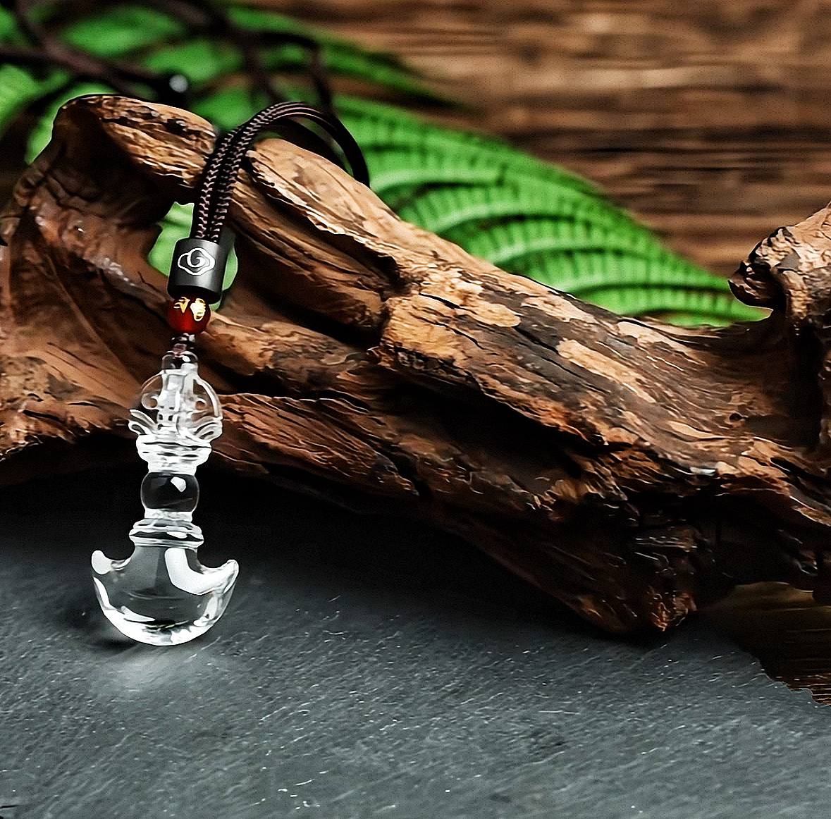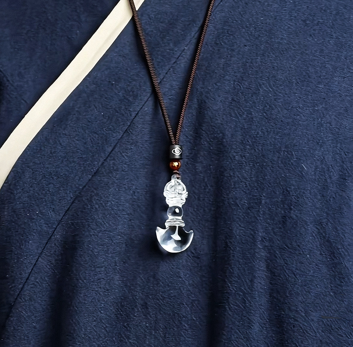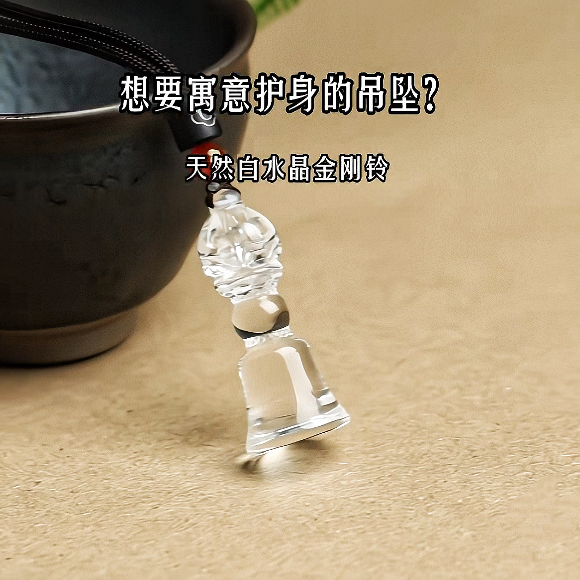 新款天然白水晶文殊智慧剑金刚铃水晶钺刀吊坠复古精雕本命年饰品项链挂件