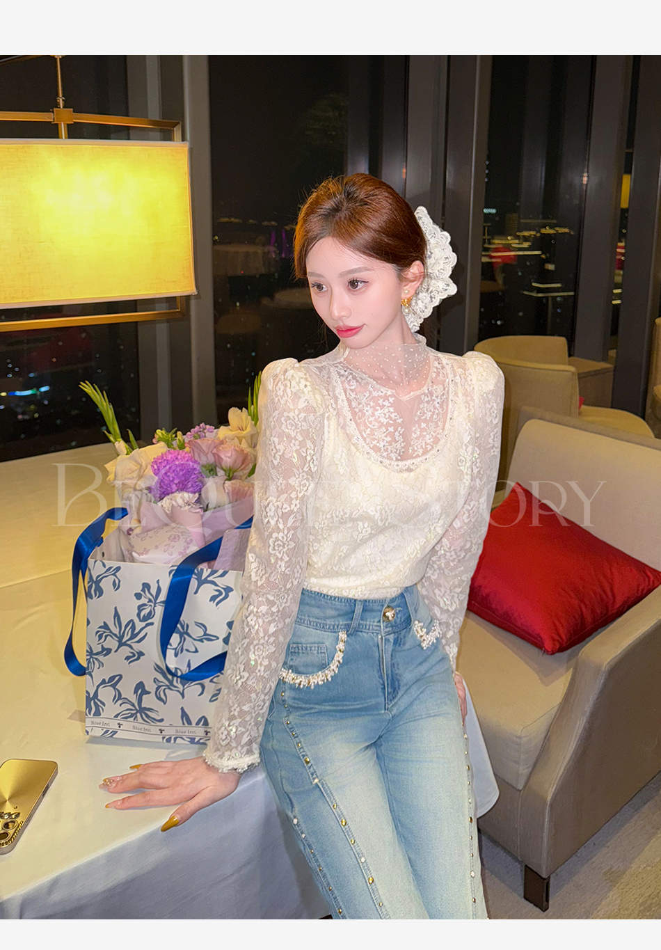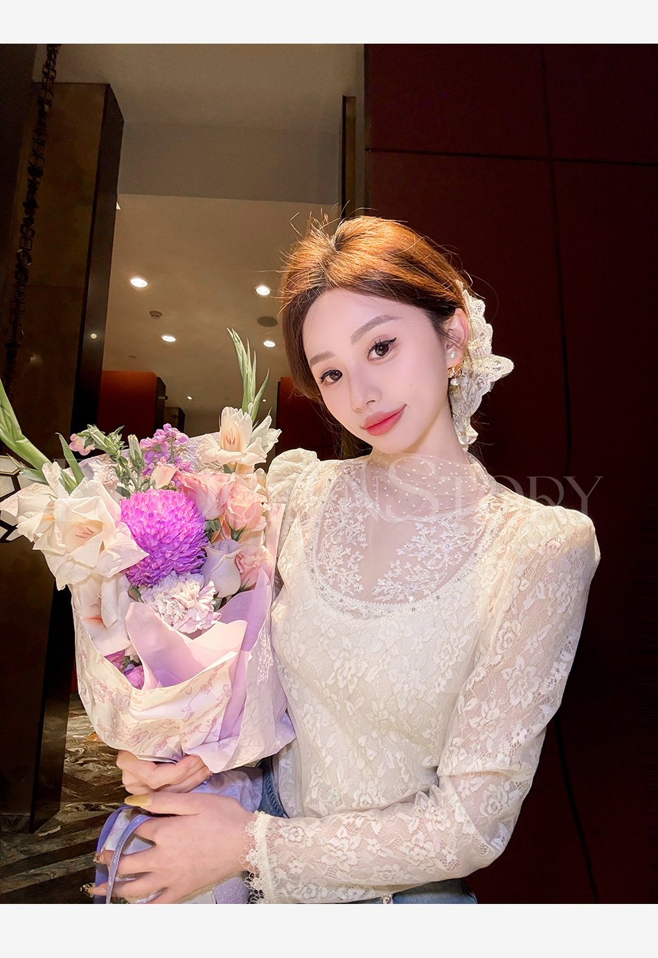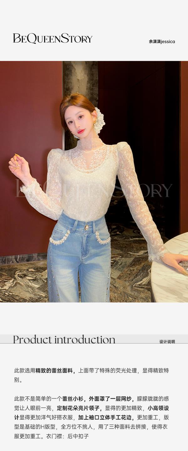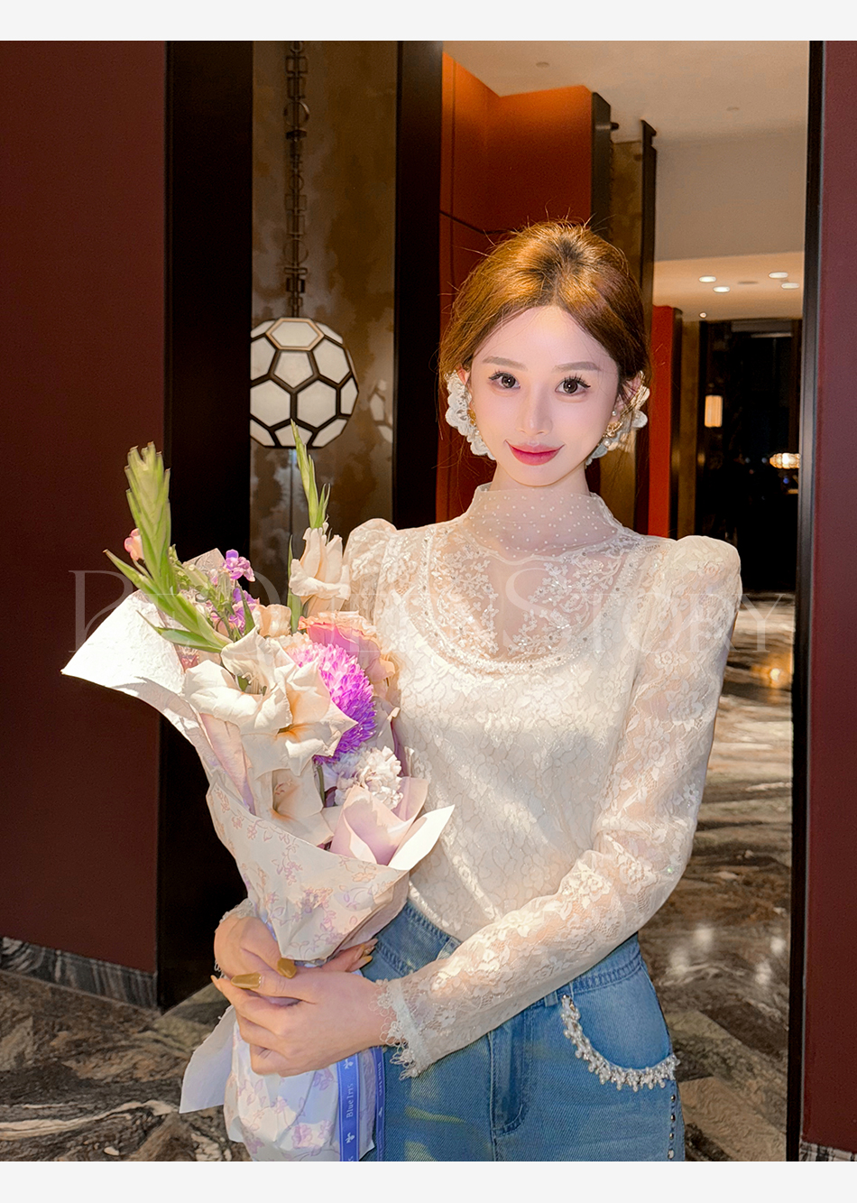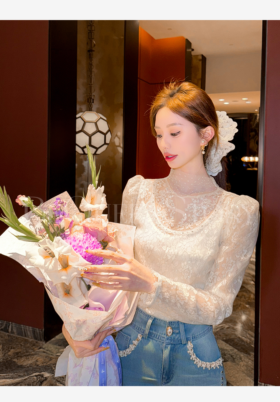 韩韩IU【月光缪斯】2025春装新款高定轻奢立体手工蕾丝花边女式上衣