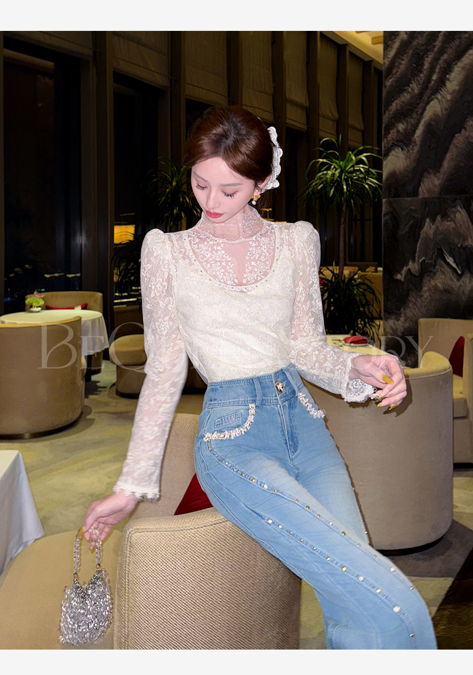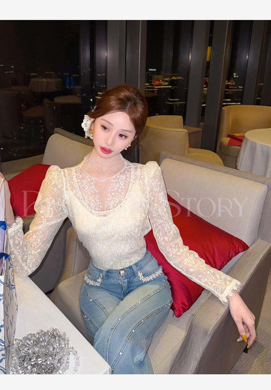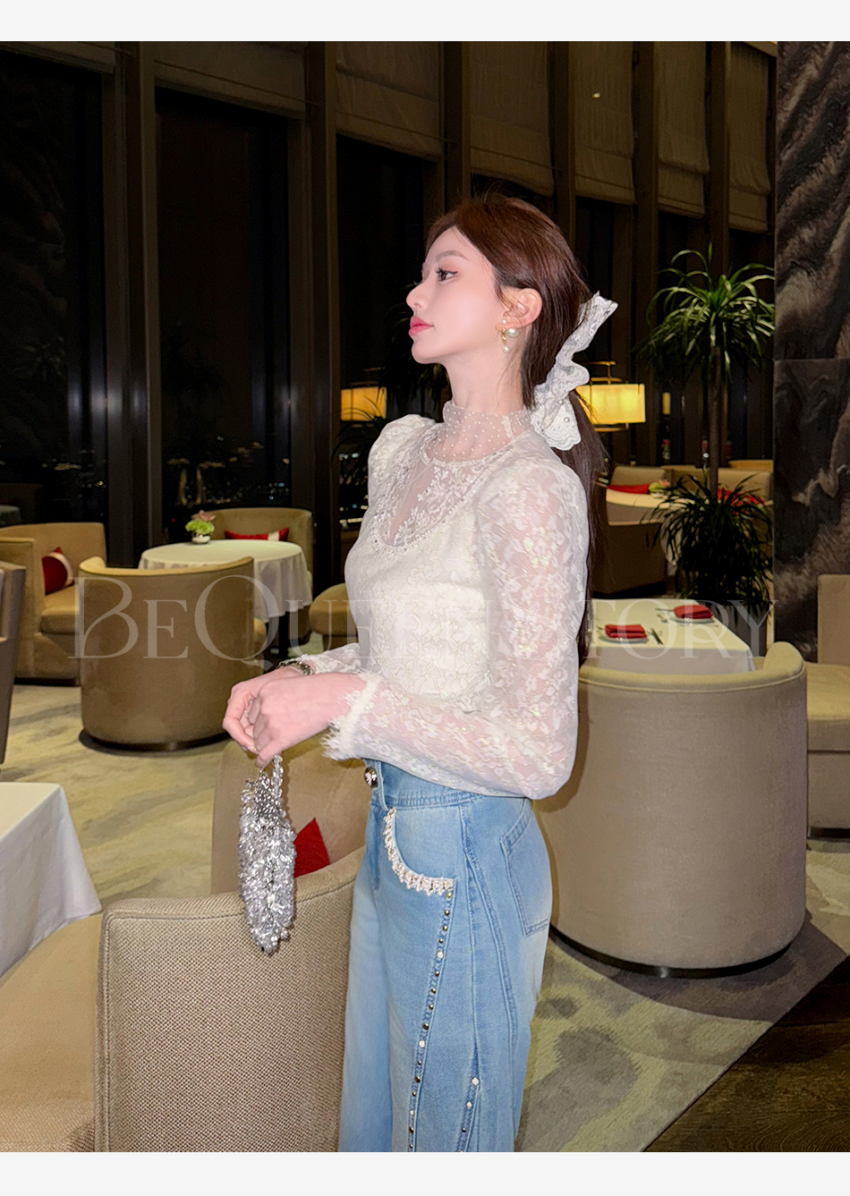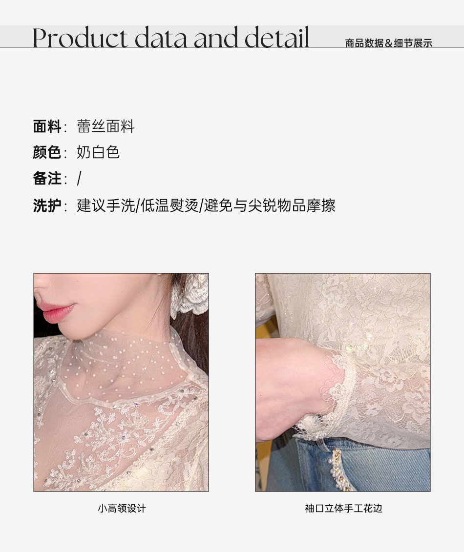 韩韩IU【月光缪斯】2025春装新款高定轻奢立体手工蕾丝花边女式上衣