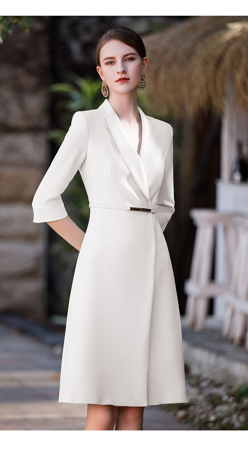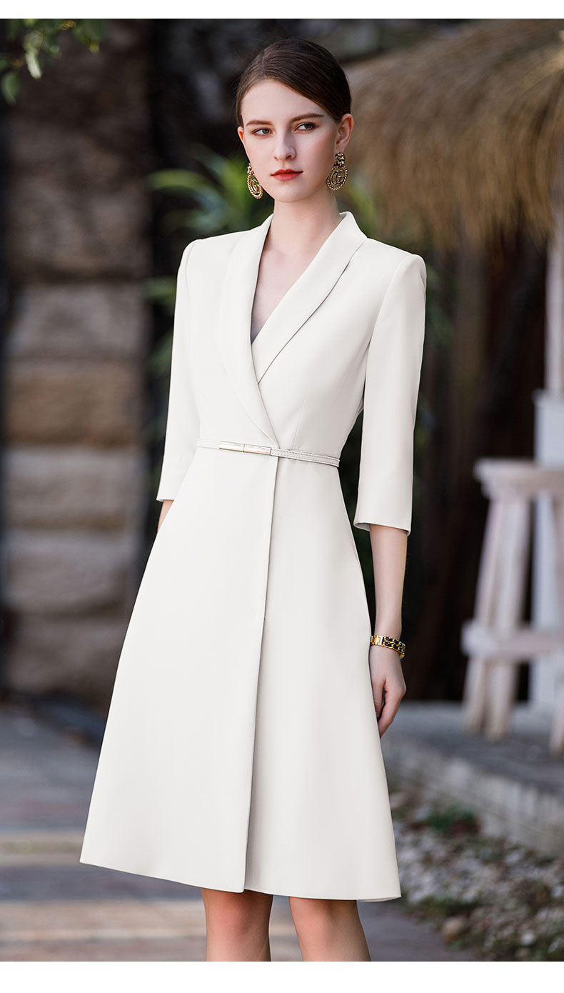 IWY/夏季新款白色高级感西装连衣裙女修身显瘦主持人礼服正装裙子Q0771-W