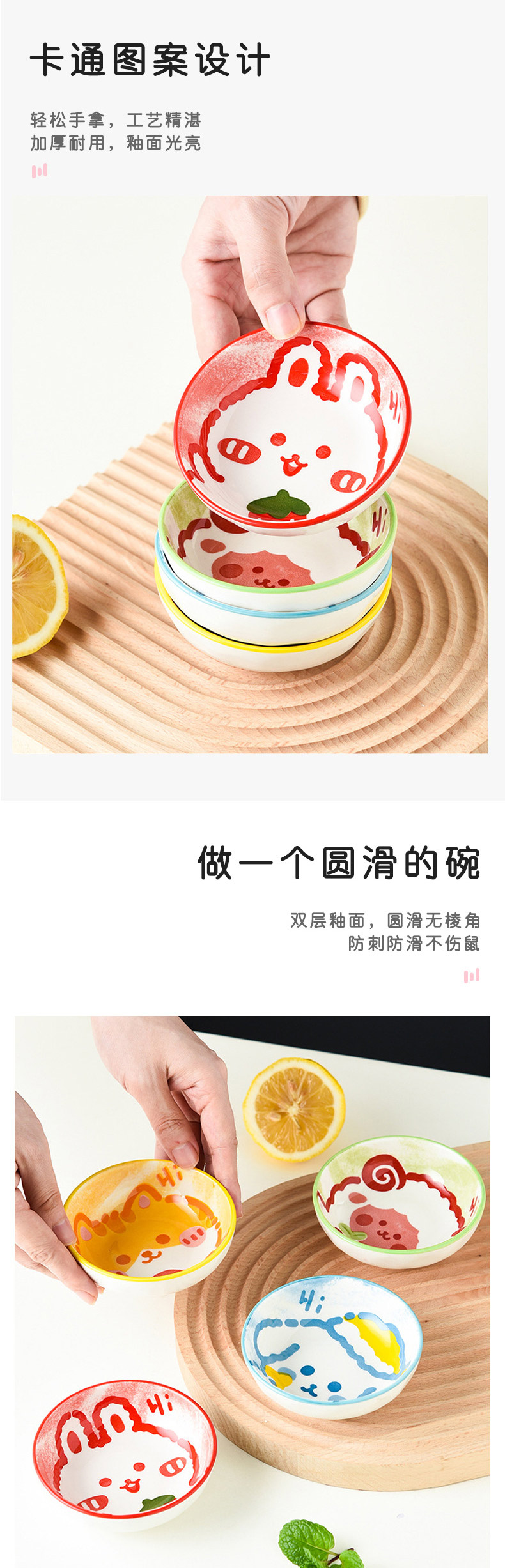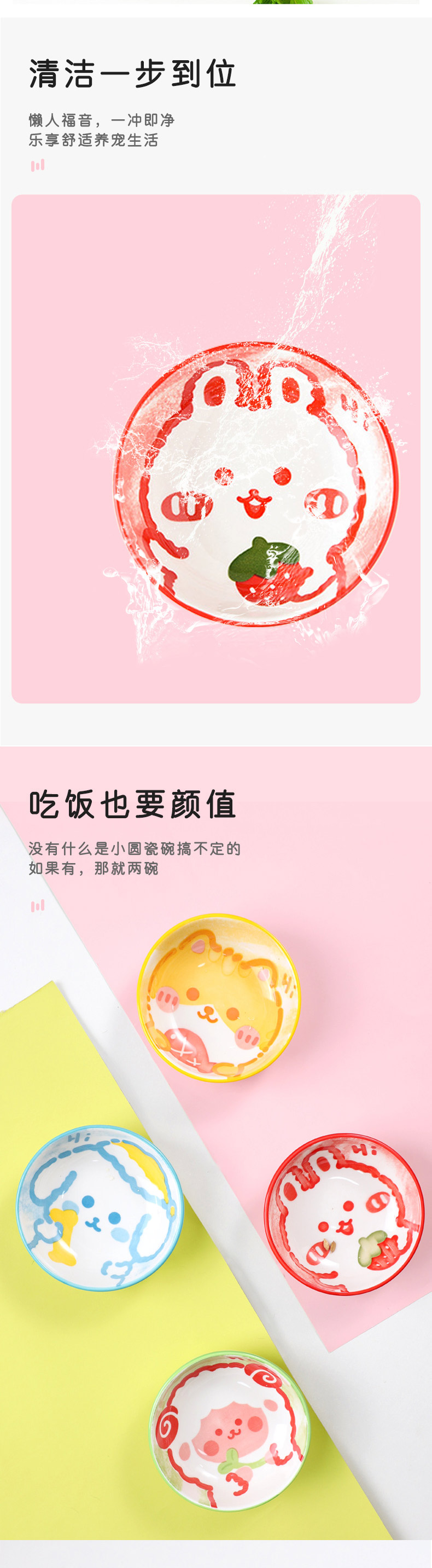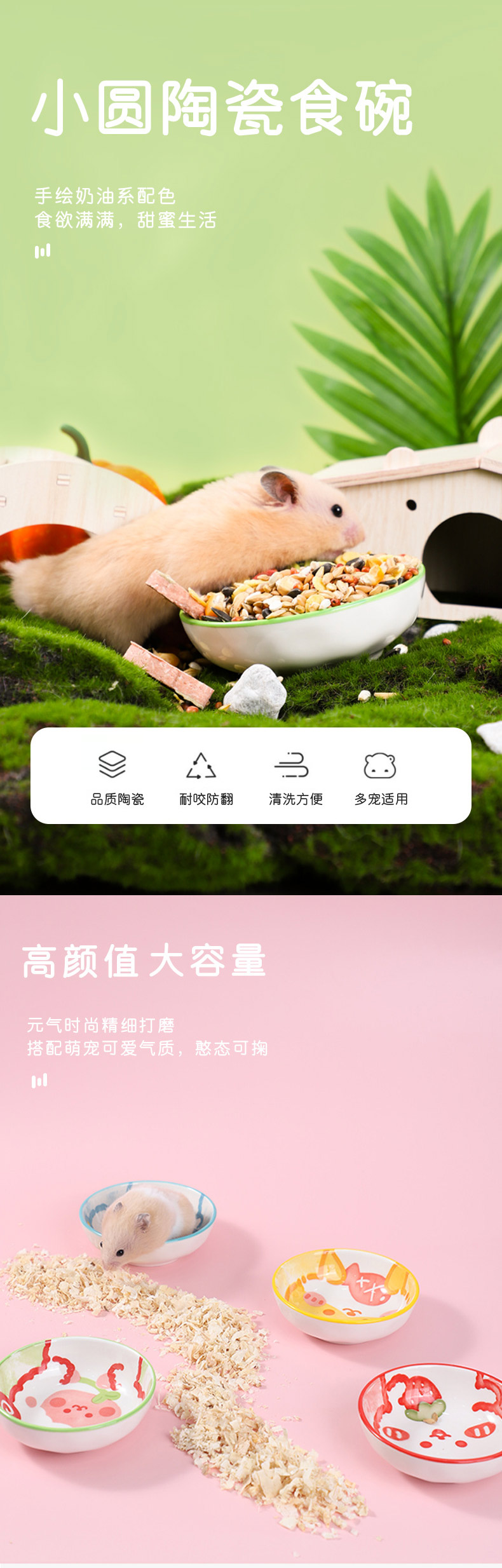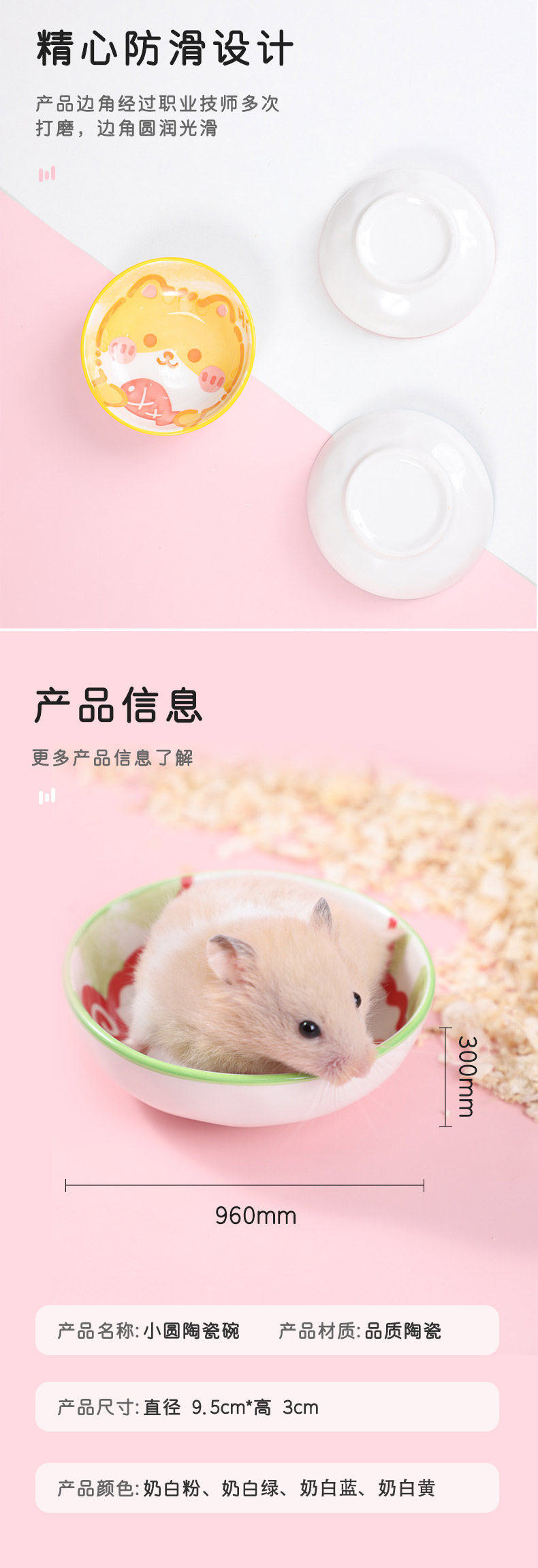 小圆陶瓷碗 仓鼠碗 卡通手绘小动物食盆 喂食喂水