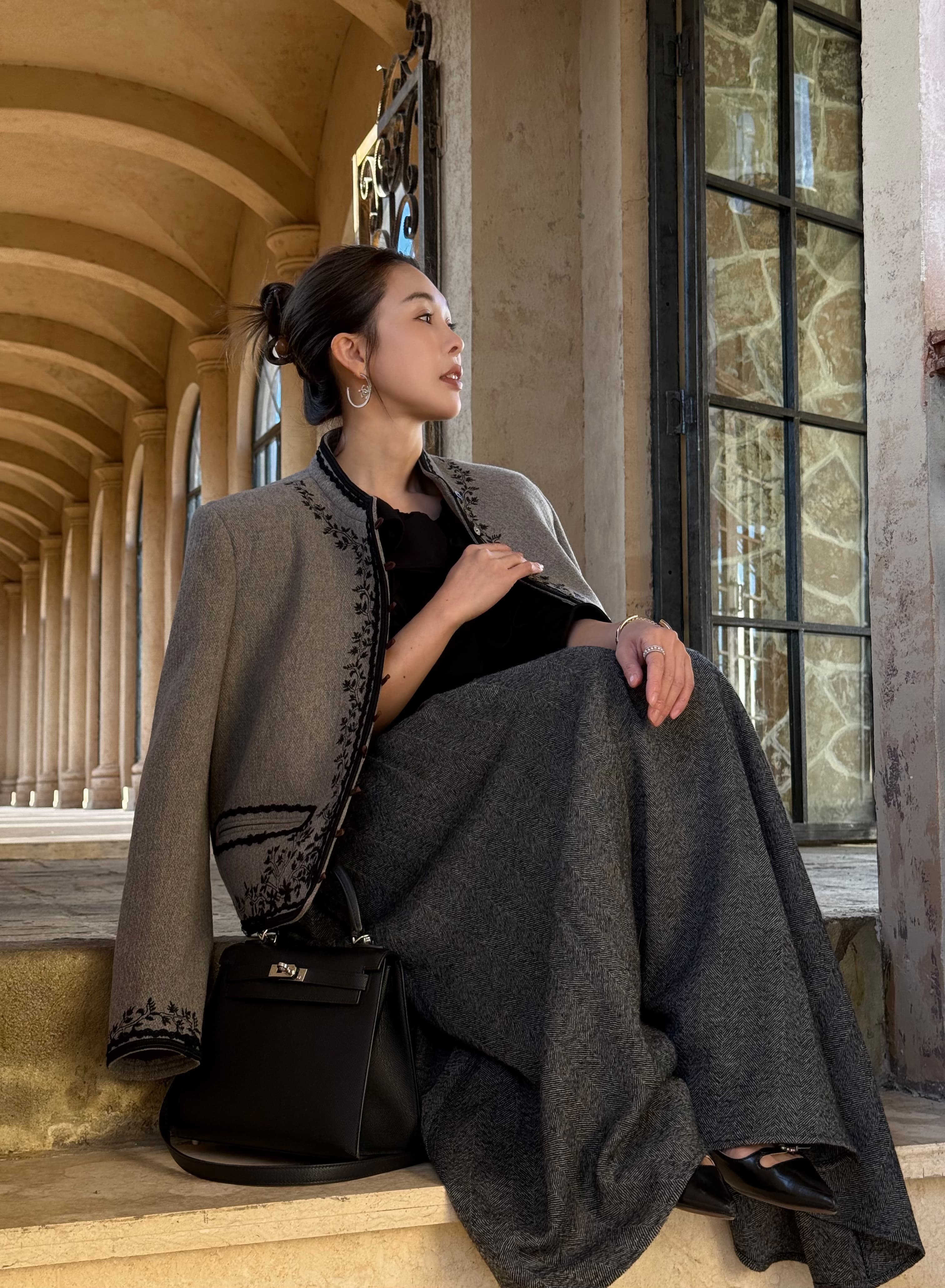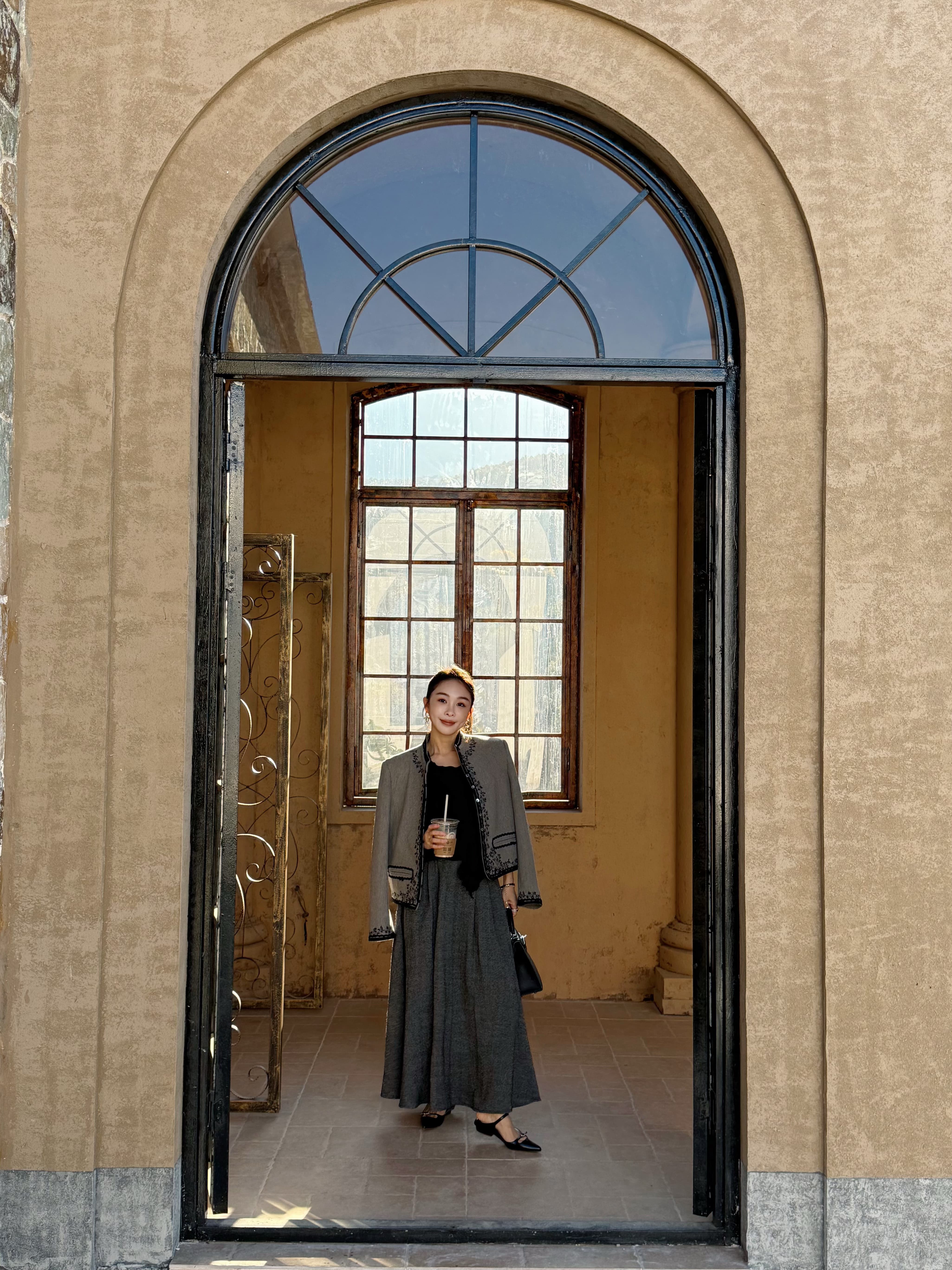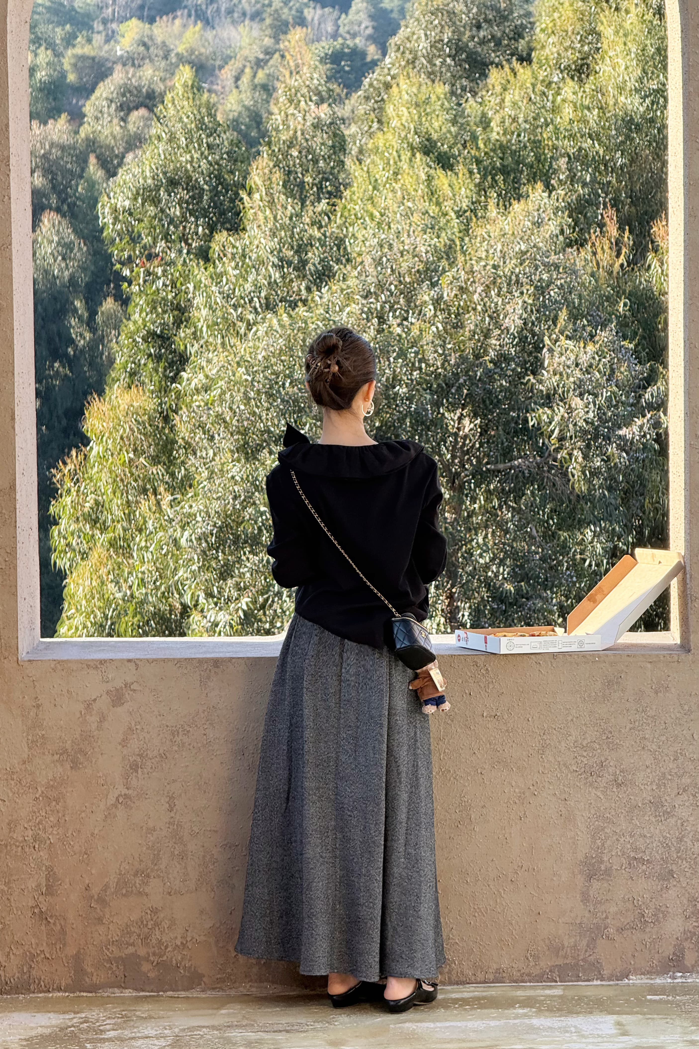 优雅地站在橱窗前