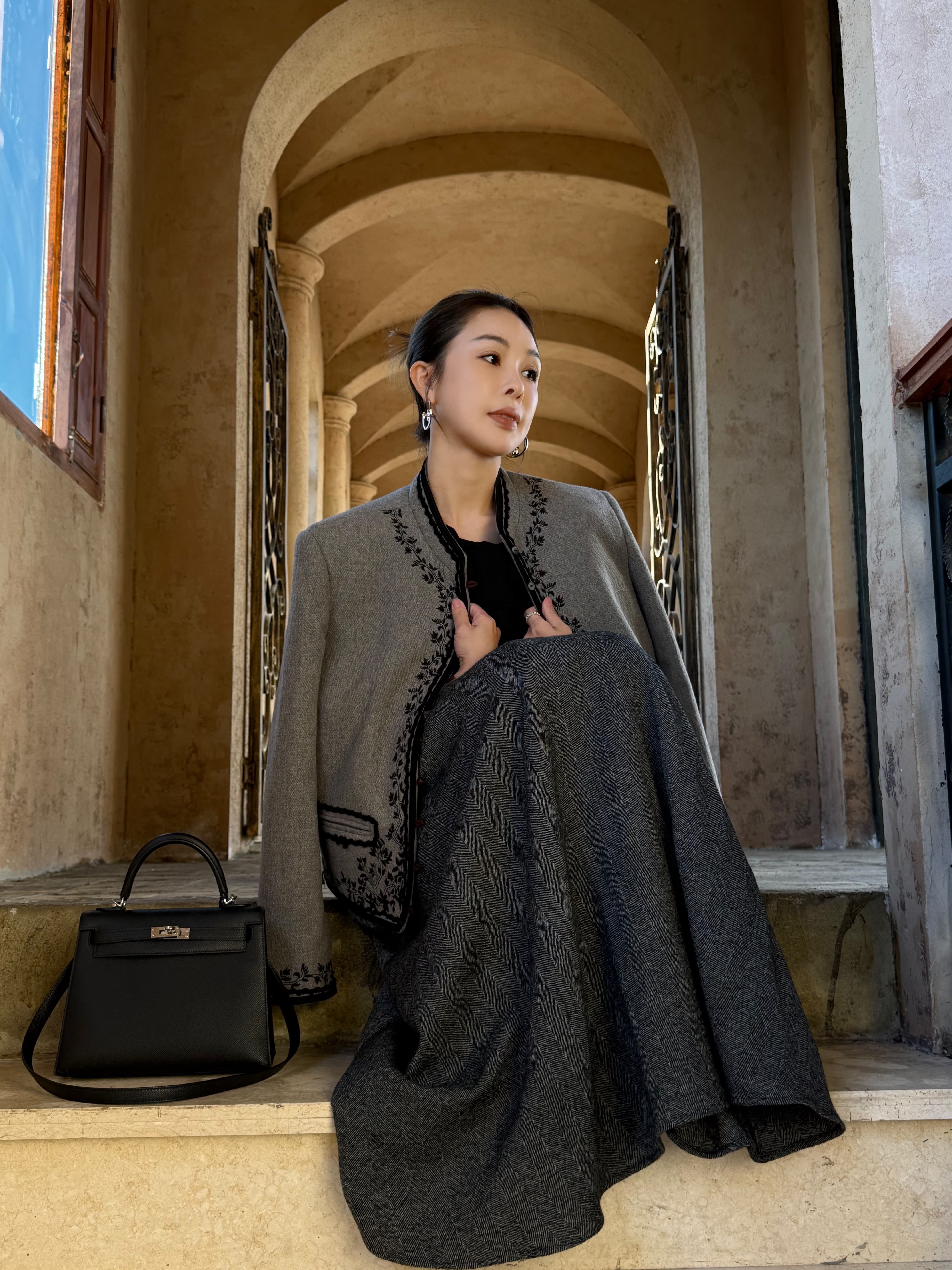 这期的这款人字纹美丽诺羊毛半裙