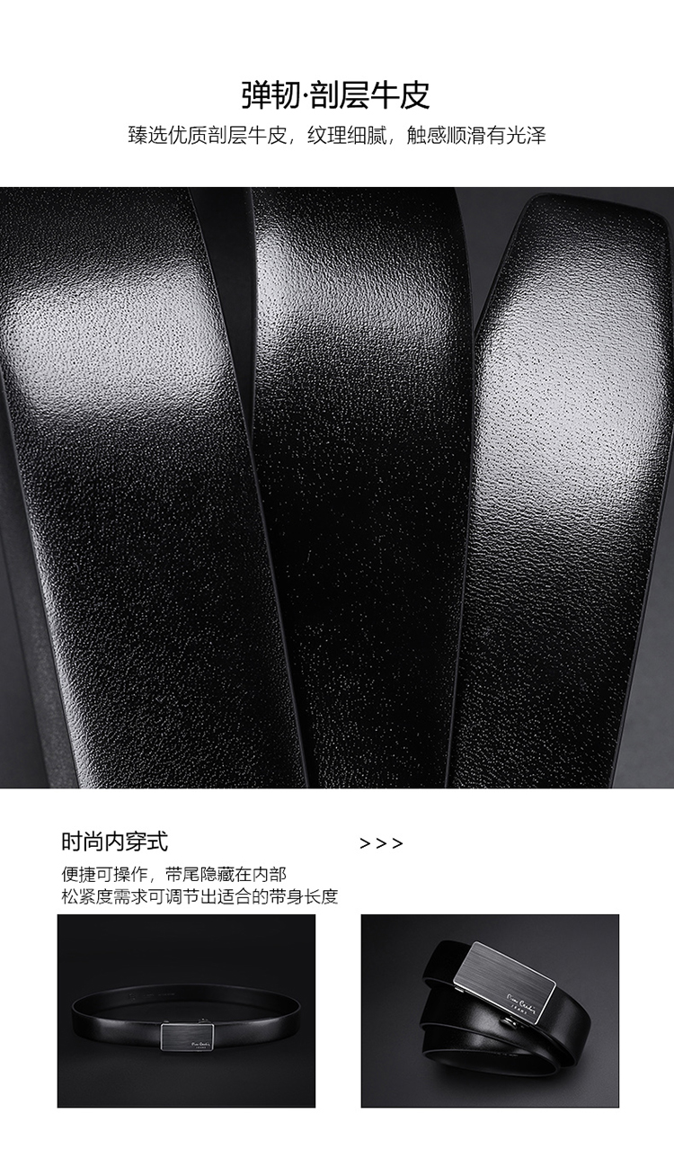 皮尔卡丹正品皮带男头层牛皮都市时尚腰带合金自动扣裤腰带商务牛皮裤带