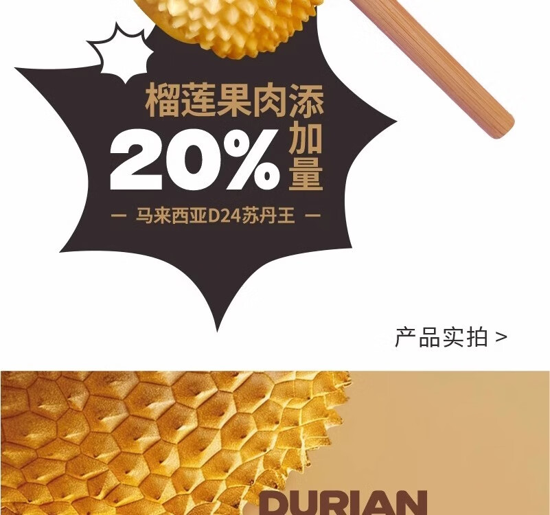 普啦啦榴莲锤子榴莲果肉雪糕65g/130275 口感绵密丝滑甜的恰到好处