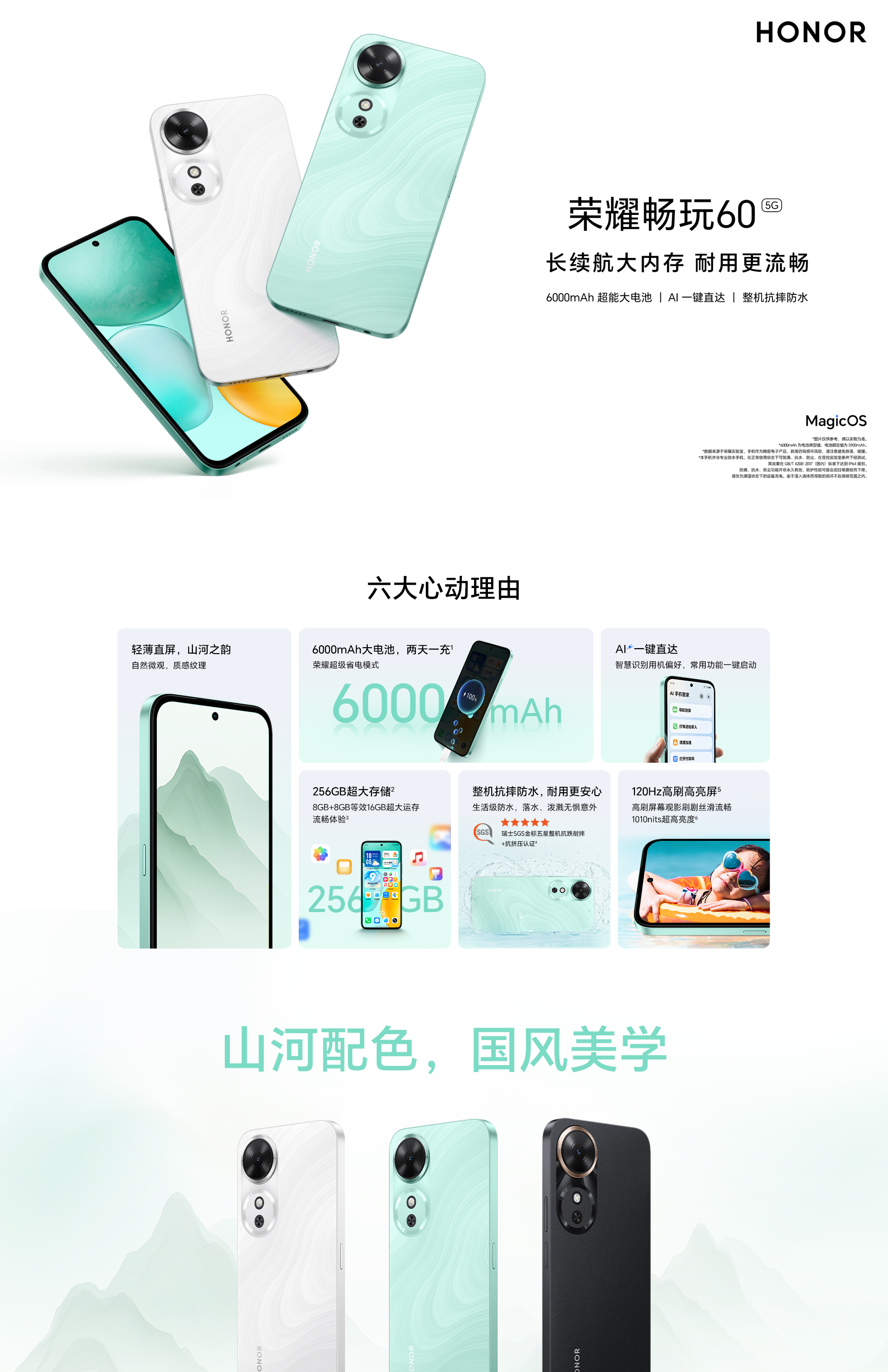 荣耀 畅玩60 全网通5G版 晓山青 6GB+128GB