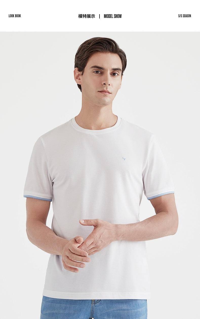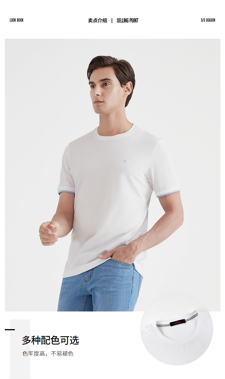柒牌男士t恤短袖多色圆领绣花夏季新款休闲潮流男生半袖上衣120T70330