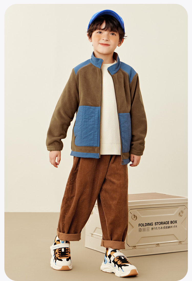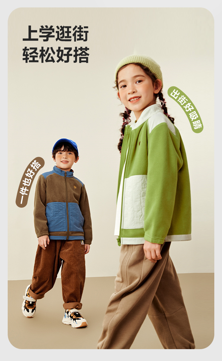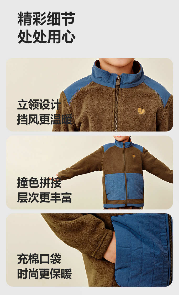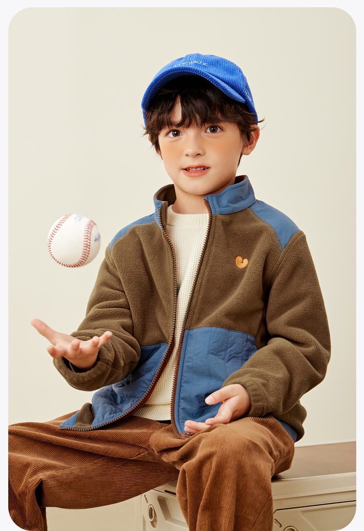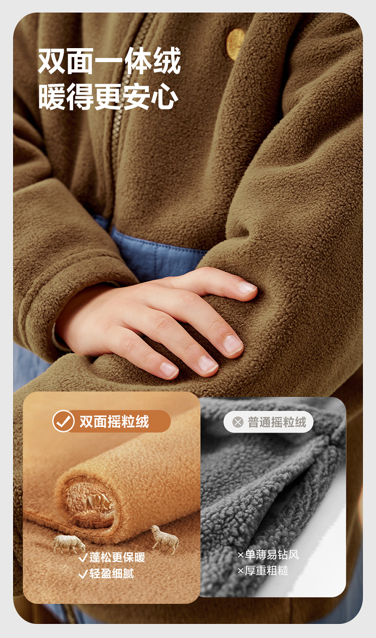 迷你巴拉秋季新款男童女童双面摇粒绒外套宝宝保暖立领夹克