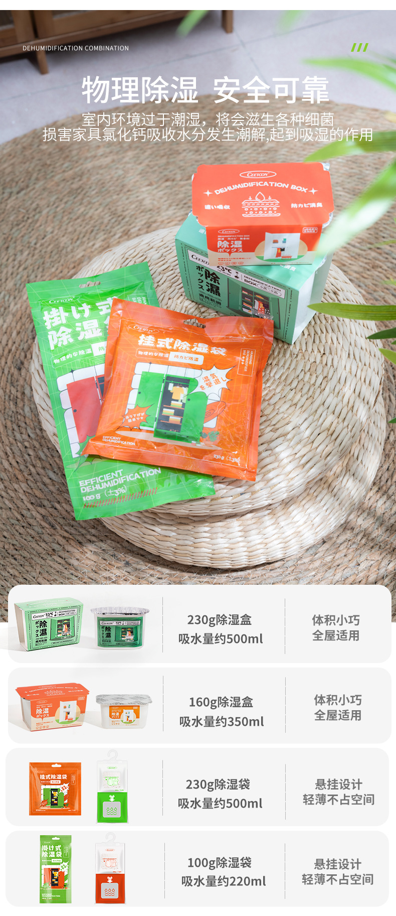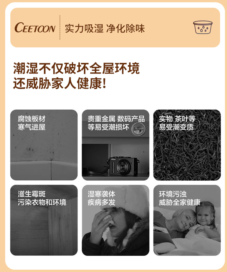 买吸湿盒送吸湿袋【赶走回南天】ceetoon除湿盒吸湿袋,氯化钙家用吸湿盒除湿剂,衣柜学生宿舍防潮剂回南天干燥剂。ry
