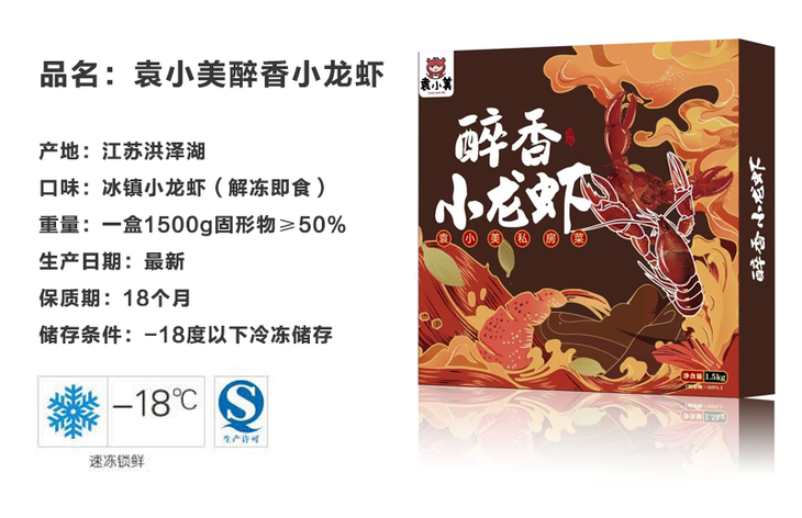 疯抢中!!【新华社报道】【袁小美·醉香冰镇小龙虾】出口级品质 配料干净 壳薄个头大 肉嫩紧实Q弹 解冻即食 老少皆宜 1500g/盒