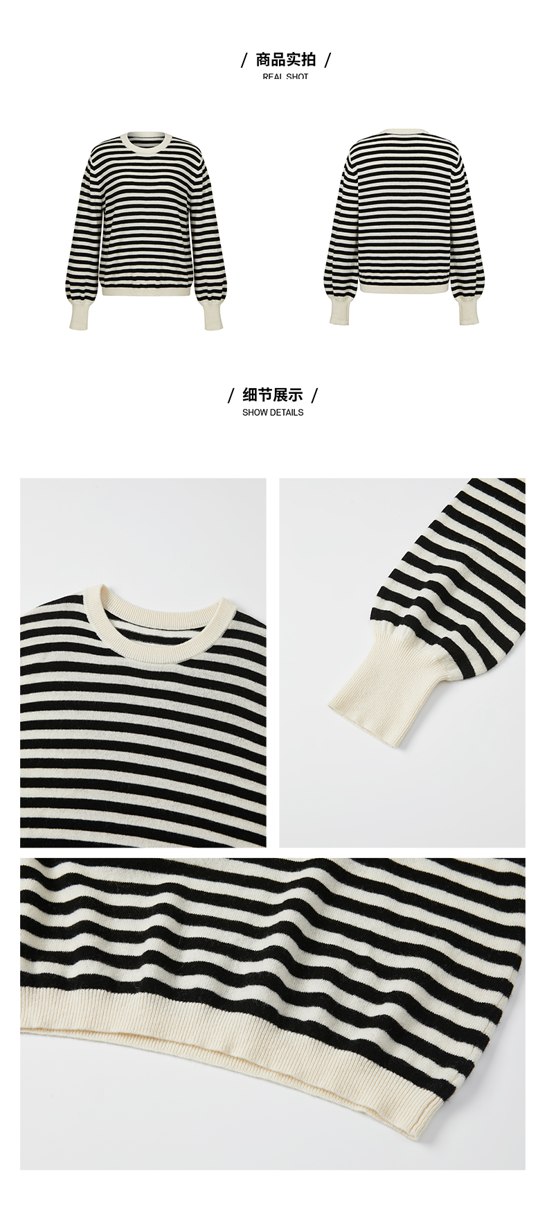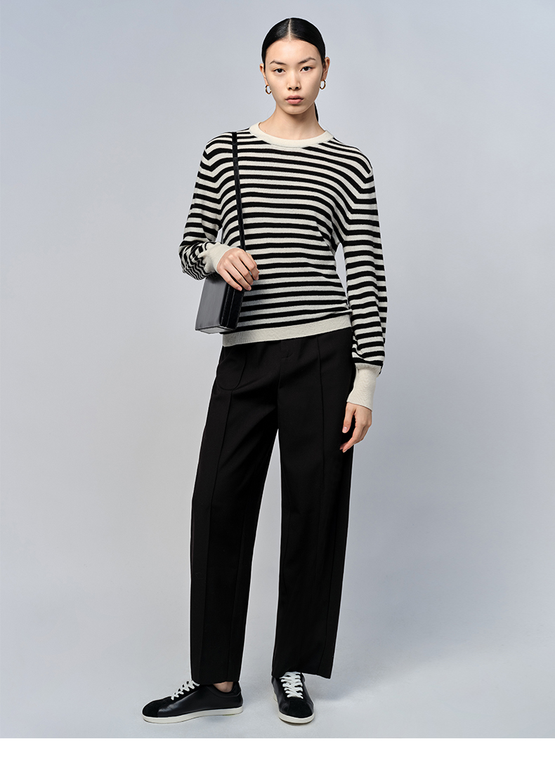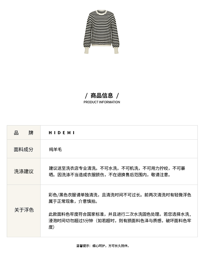 HIDEMI 美利奴系列黑白条纹羊毛针织上衣