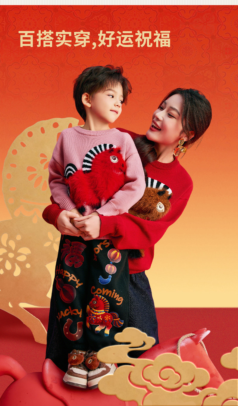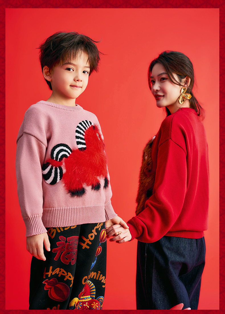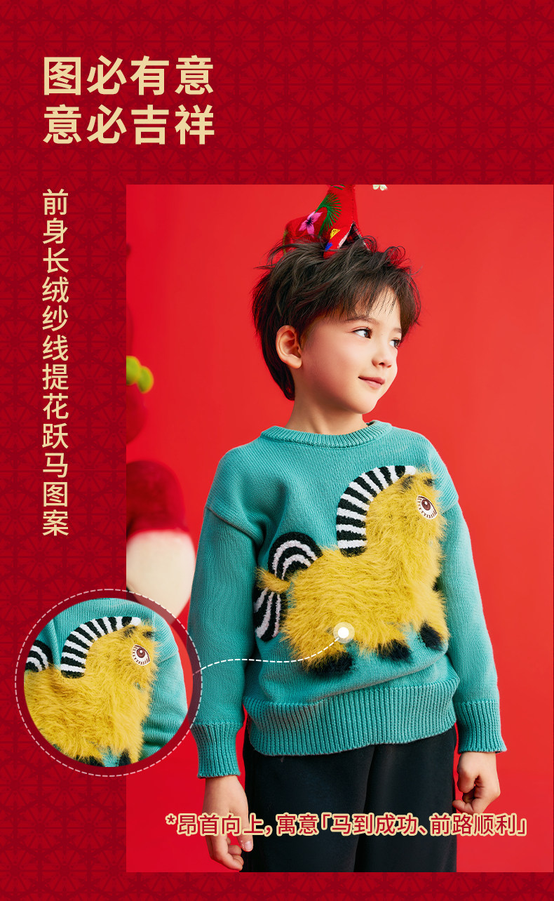 年衣童装儿童毛衣男女童冬季新款中式生肖针织衫利马向上卫衣