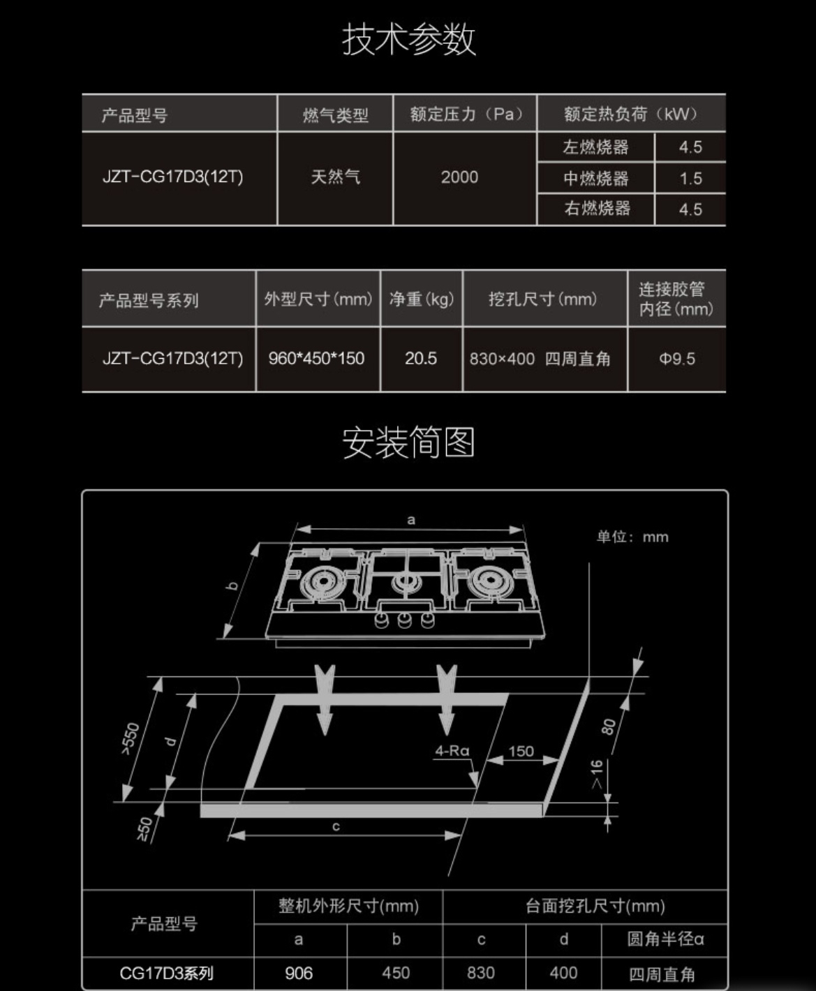 卡萨帝(Casarte)灶具 JZT-CG17D3(12T)
