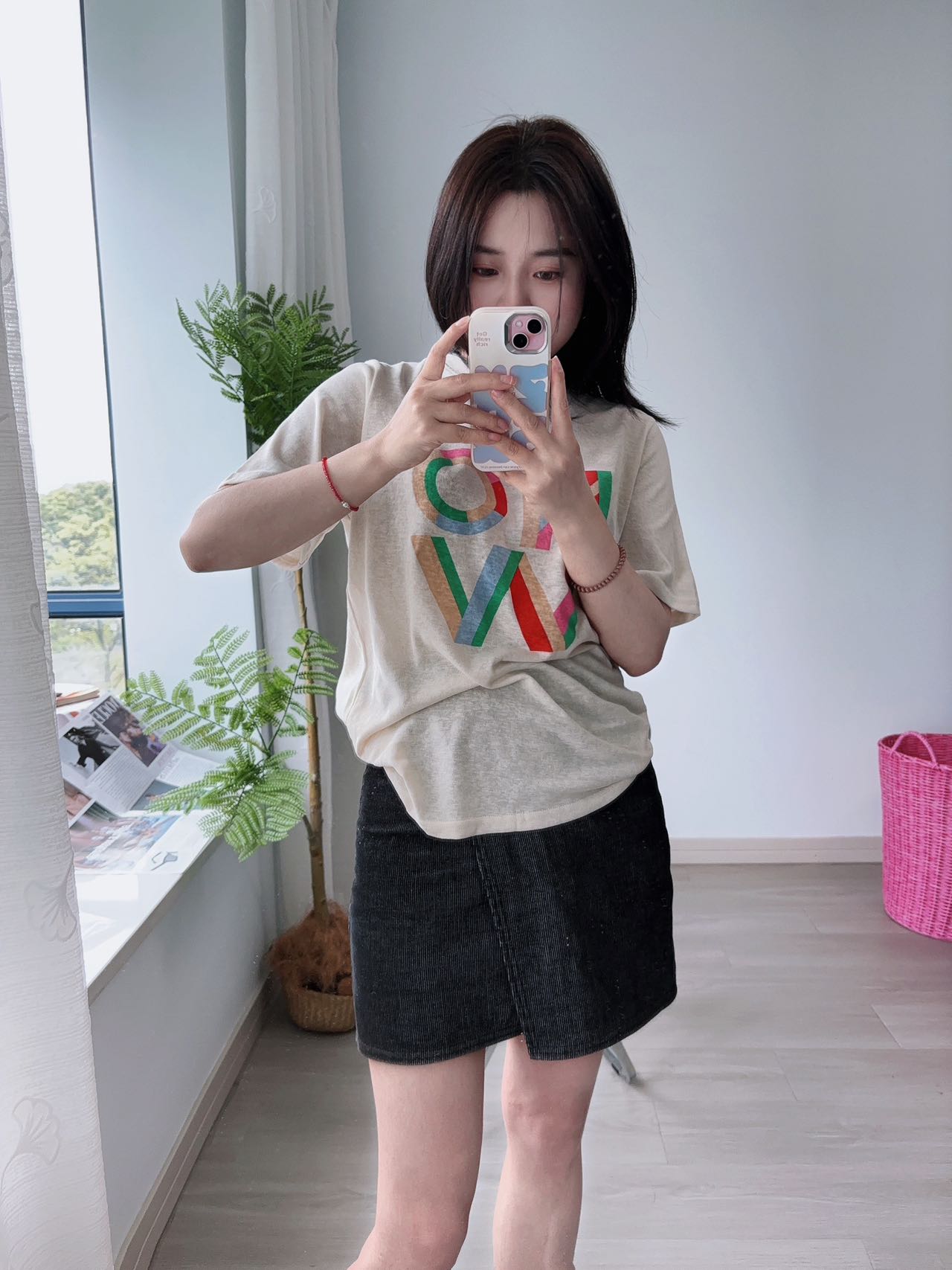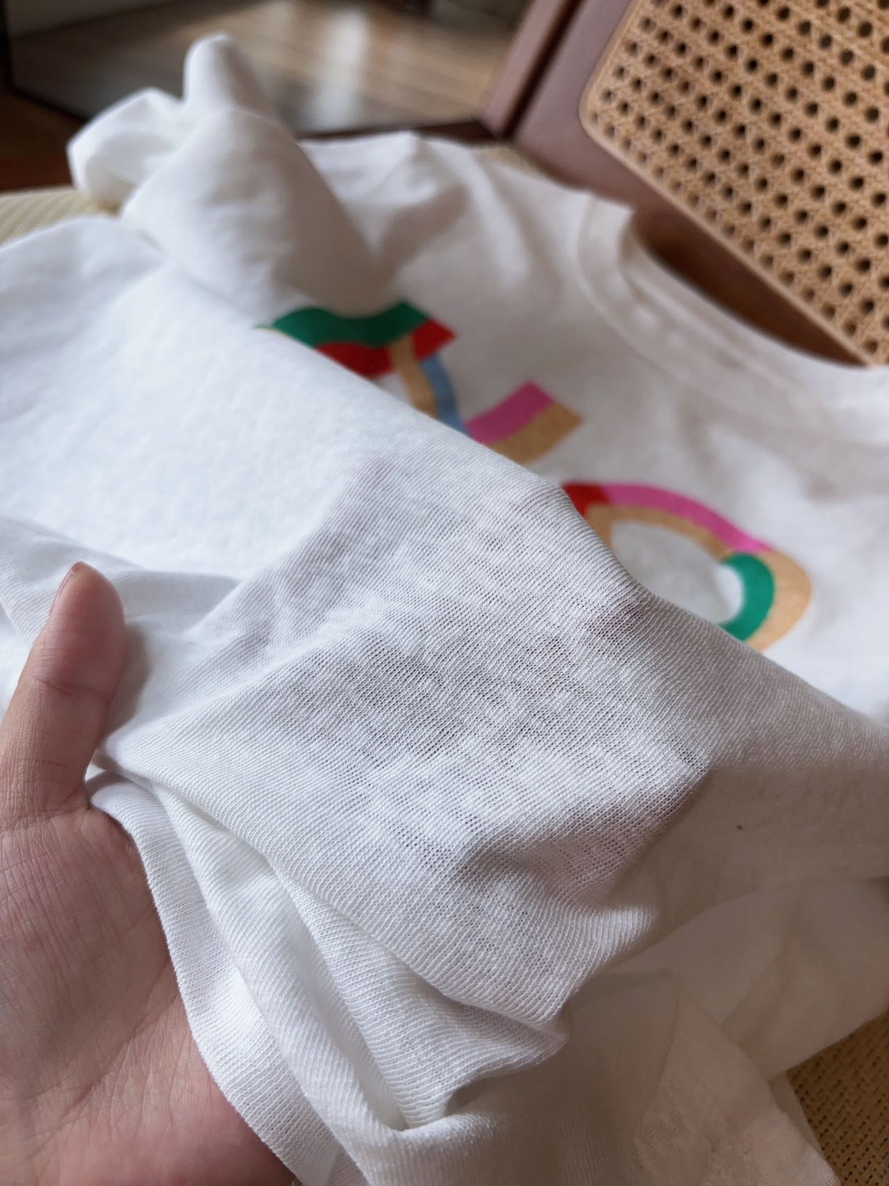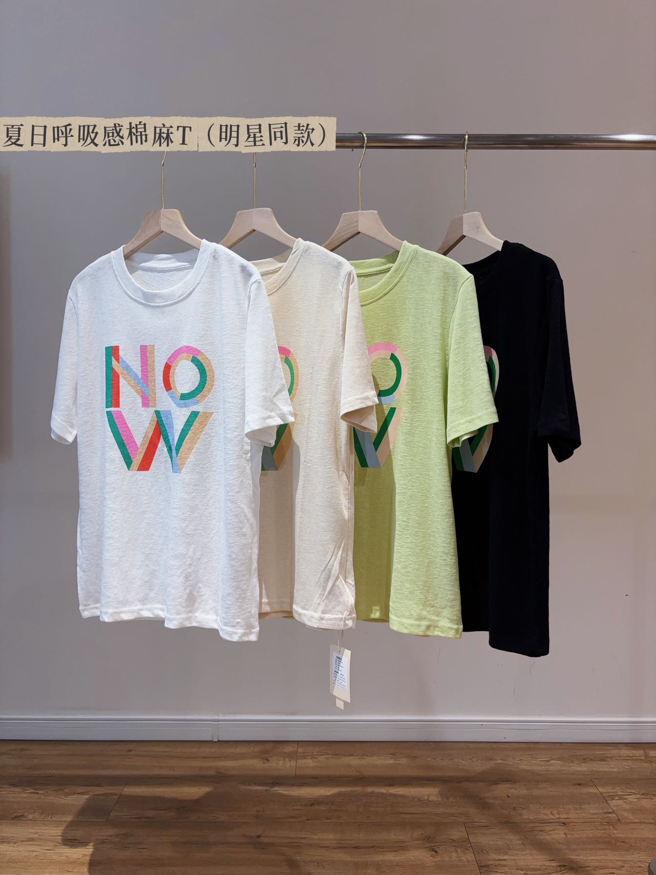 【秦岚私服同款 】TRIUUCHU 夏日呼吸感棉麻女士T恤 撞色字母印花 松弛慵懒 超美超好搭 #A4046款