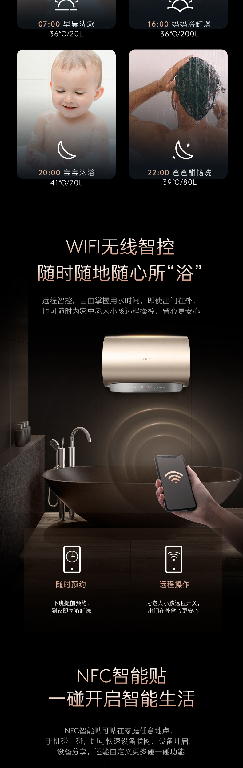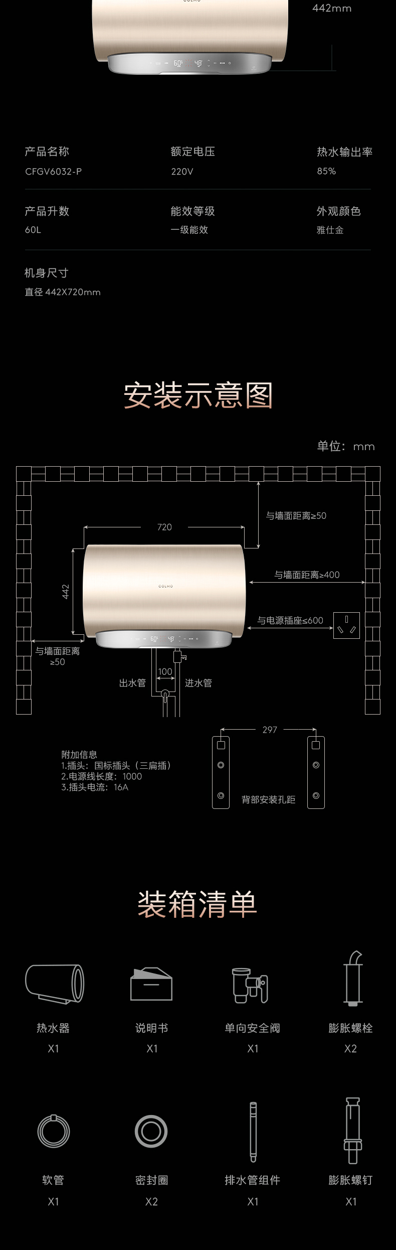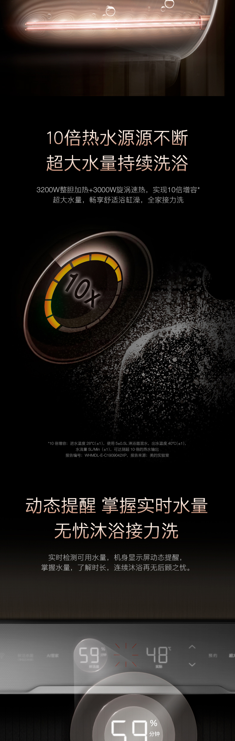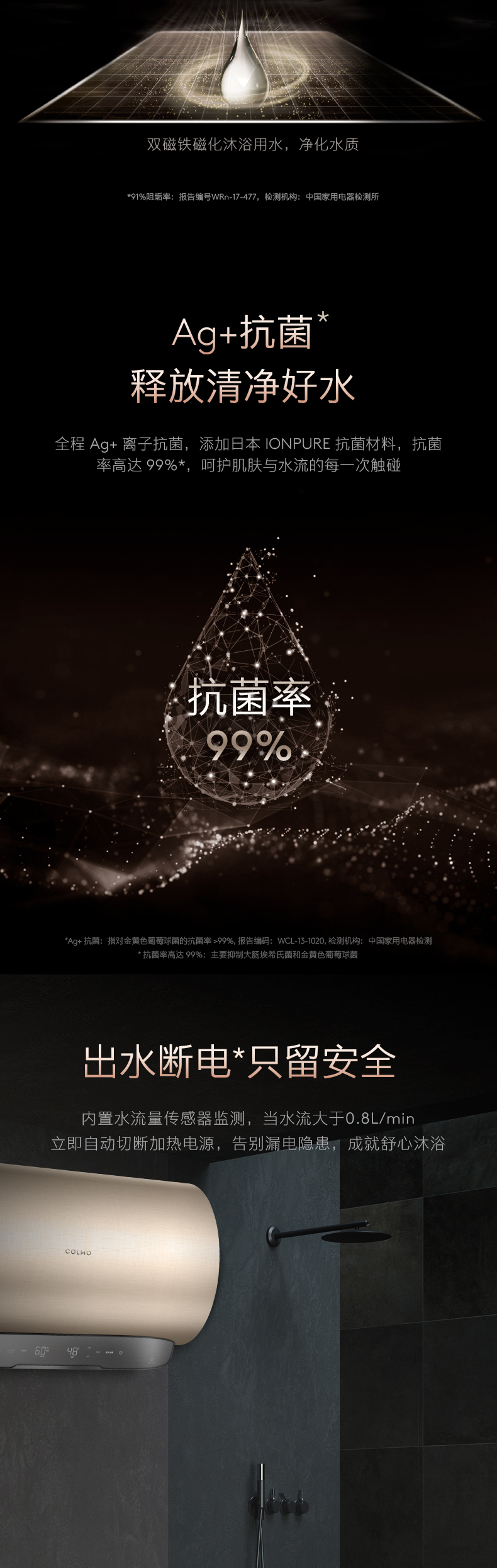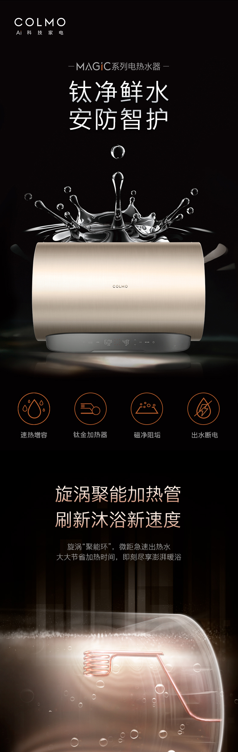 美的旗下高端COLMO 60升电热水器家用 抗菌钛金变频速热 智能水量显示 磁净阻垢 出水断电 智能管家CFGV6032-P(雅仕金 )