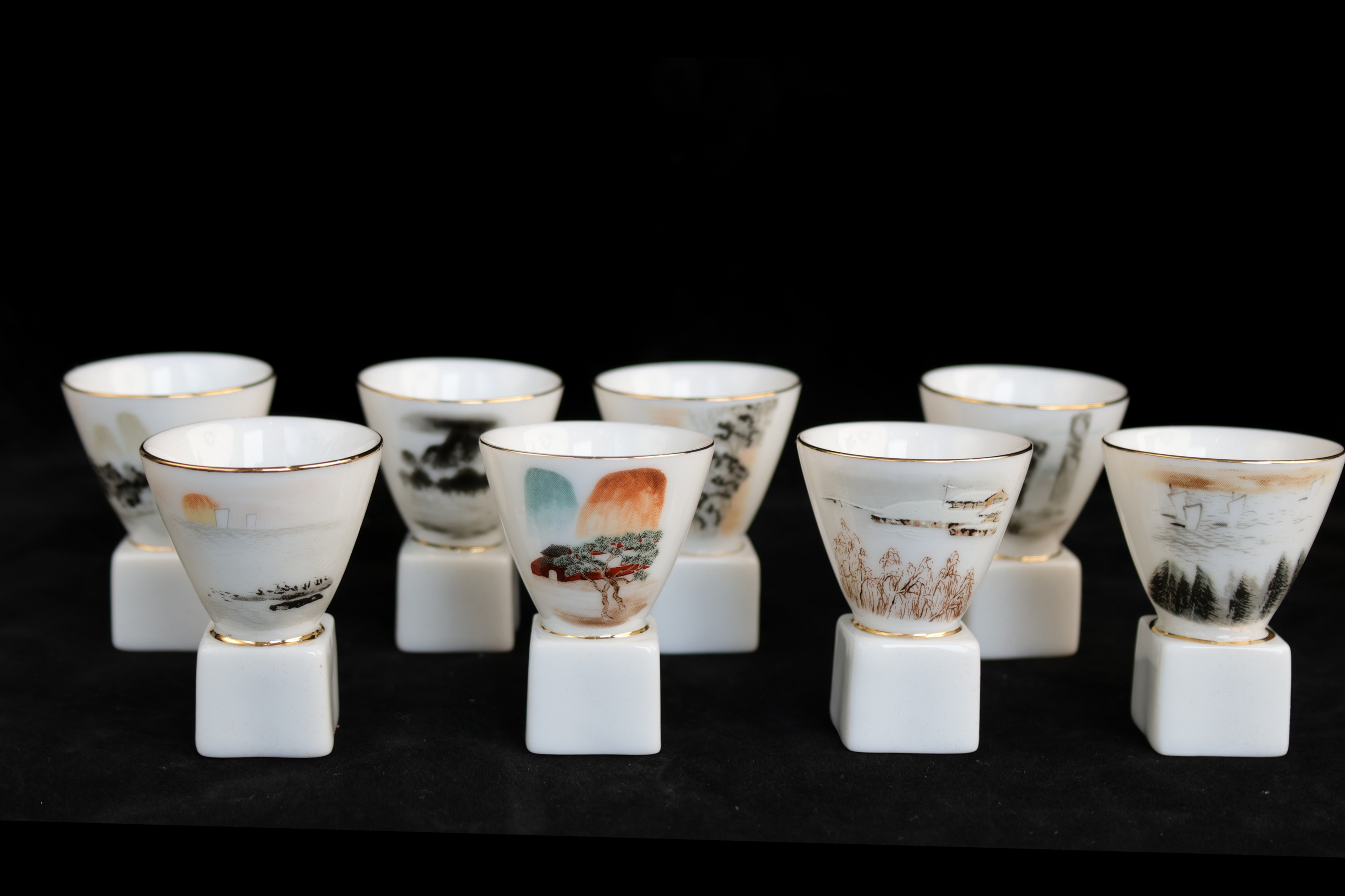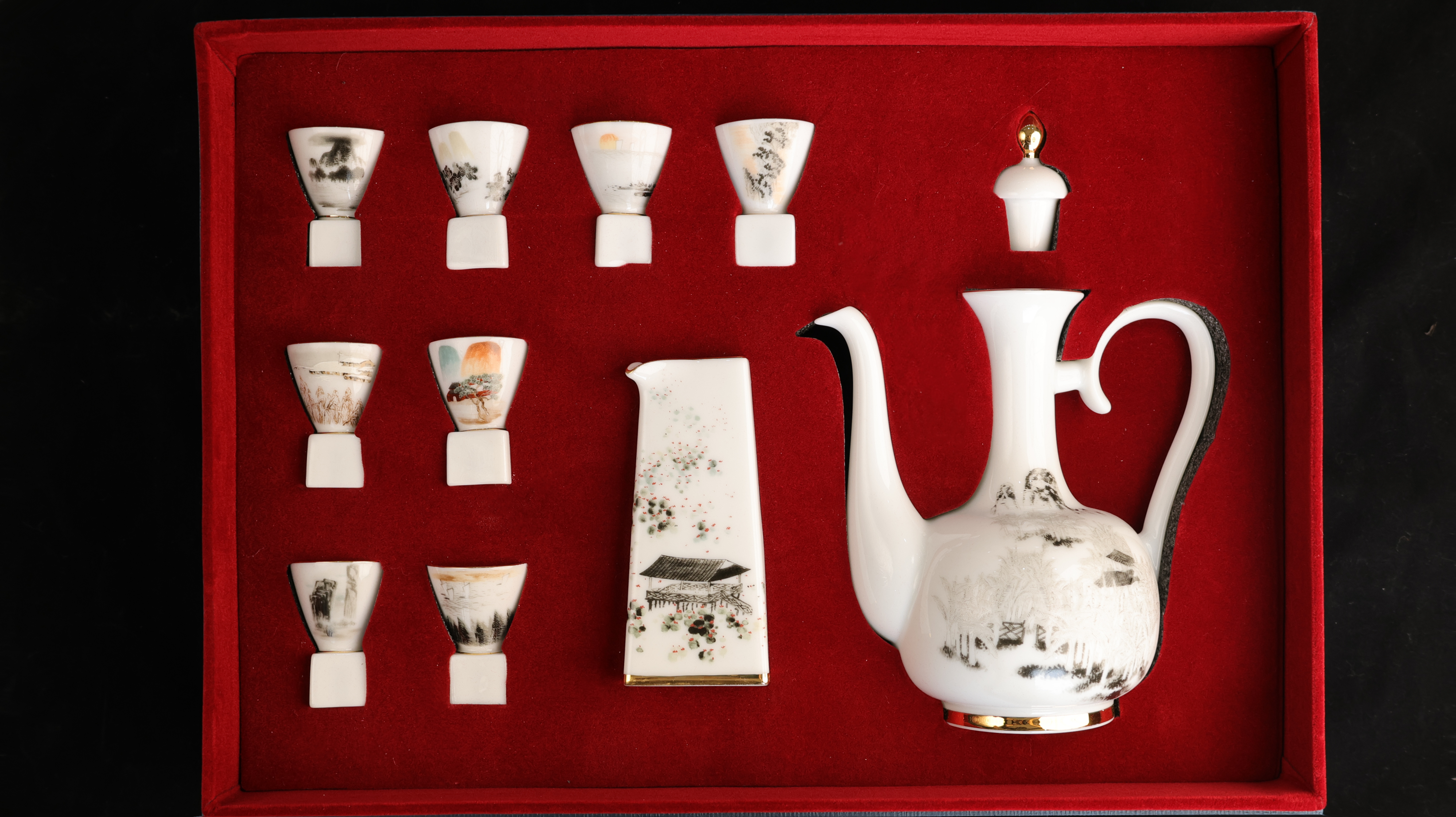 《齐白石山水十二条屏茶具》是根据三峡博物馆馆藏的齐白石四季山水十二条屏所创作(目前存世的齐白石山水十二条屏仅有二套),该条屏是齐白石最后创作的一套山水十二条屏,也是齐白石衰年变法后画风和技法非常成熟的最高体现,更是理解齐白石一生艺术历程、创作与思想不可或缺的部分,被誉为齐白石山水中的最佳者。