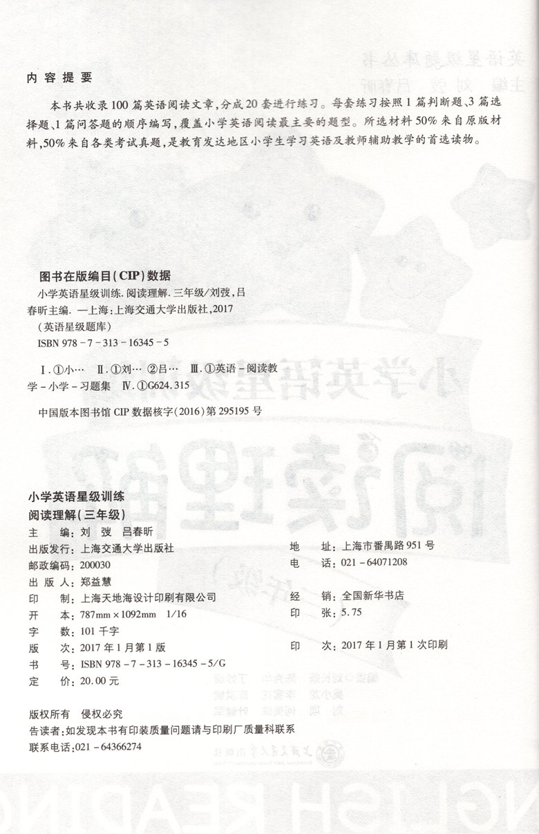 小学英语星级训练阅读理解 3年级/三年级 英语星级题库丛书 小学英语阅读教学习题集 上海交通大学出版社
